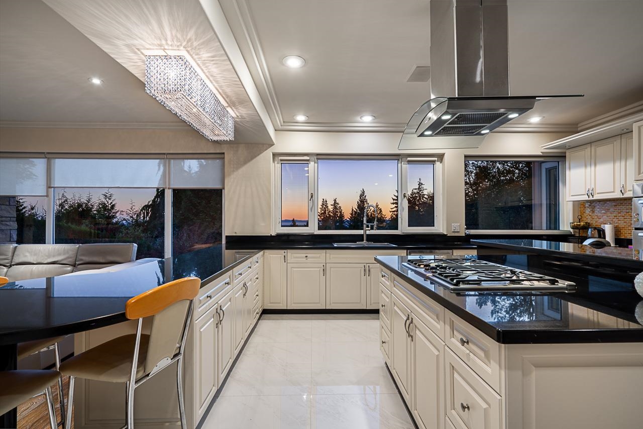 APPROXIMATELY $745,000.00 spent on meticulous renovations of this fabulous family home boasting a lovely view of DOWNTOWN/LIONSGATE/STANLEYPARK, flat driveway and oversized 3-car garage. Go to "DOCUMENTS" to see the LIST OF RENOVATIONS. MAIN FLOOR: stunning foyer and dining room with 18ft ceiling, spacious living room, fabulous gourmet kitchen, wok kitchen next to eating area and large family room overlooking the view. UPPER FLOOR: huge primary bedroom with large walk-in and en-suite with Jacuzzi tub, 3 spa...