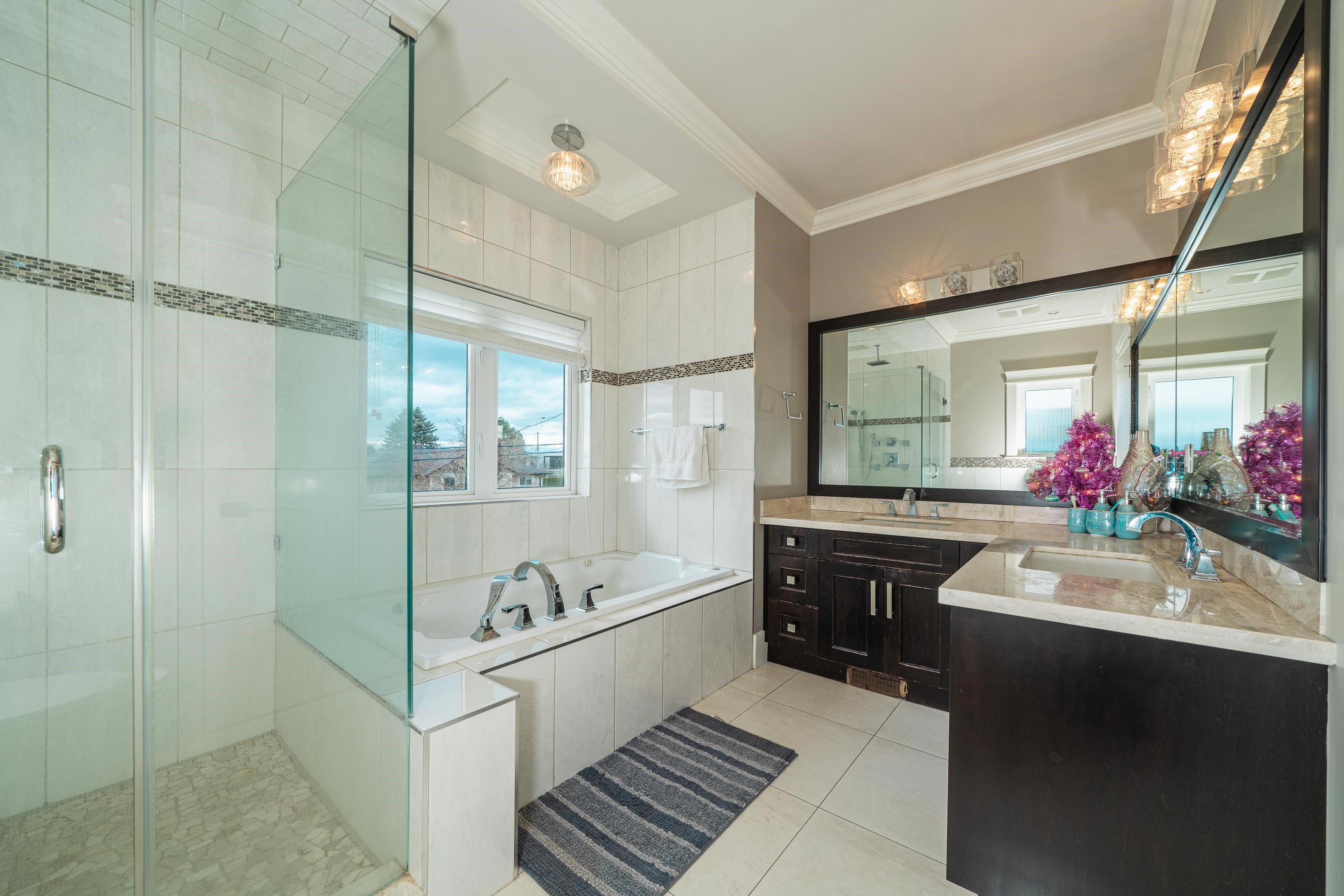Stunning OCEAN, MOUNTAIN and CITY view. Premium custom built home featuring reverse floor plan with kitchen and master bedroom on the top floor to take advantage of the ocean views. Open concept floor plan with bright kitchen with accent lighting, granite counters, grand island and stainless steel appliances.The Master bedroom retreat with spa style ensuite, walkin closet, private balcony and view of ocean & Mnt. Baker. Main floor features 2 large bedrooms both ensuited and a large sunny office. Basement bo...