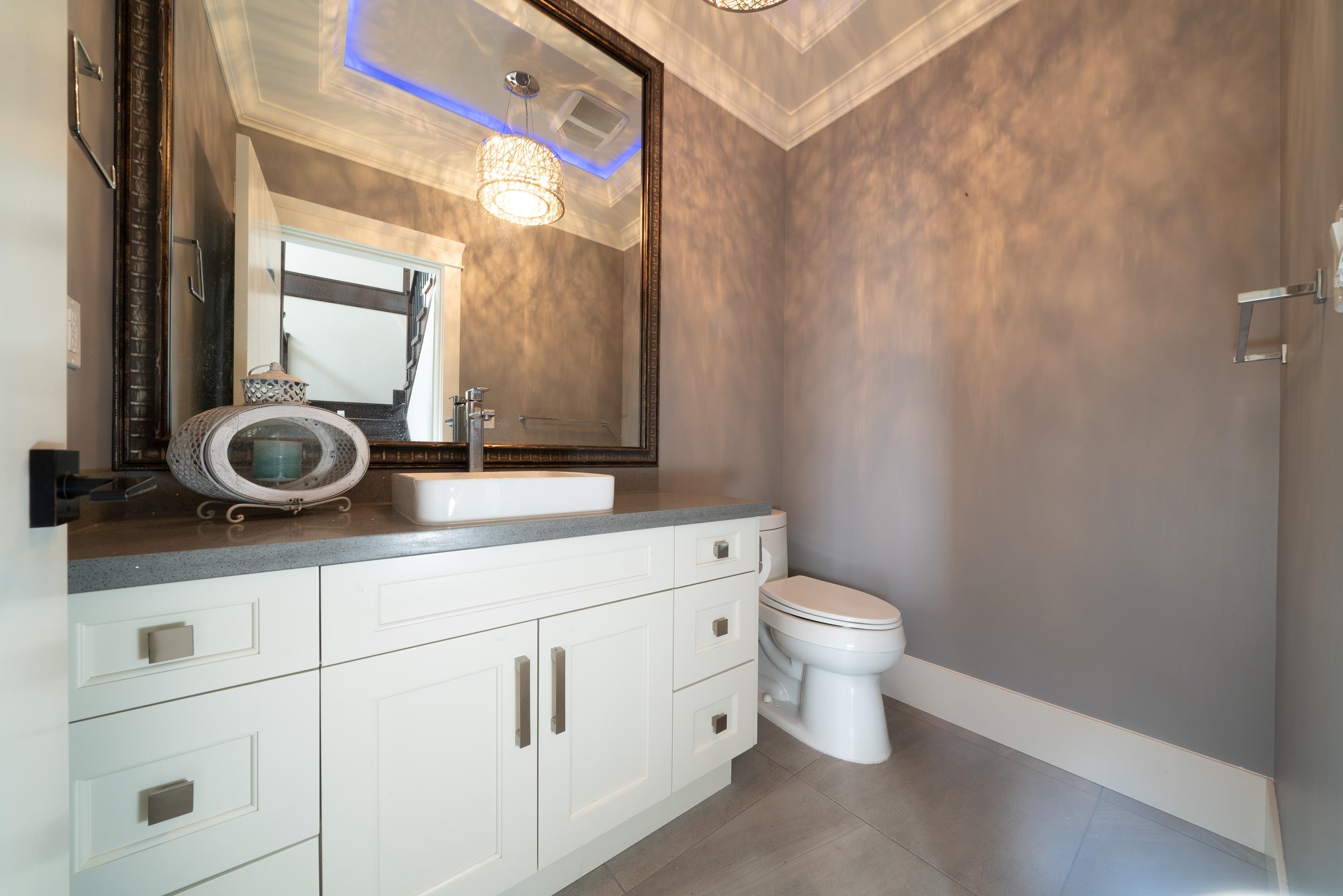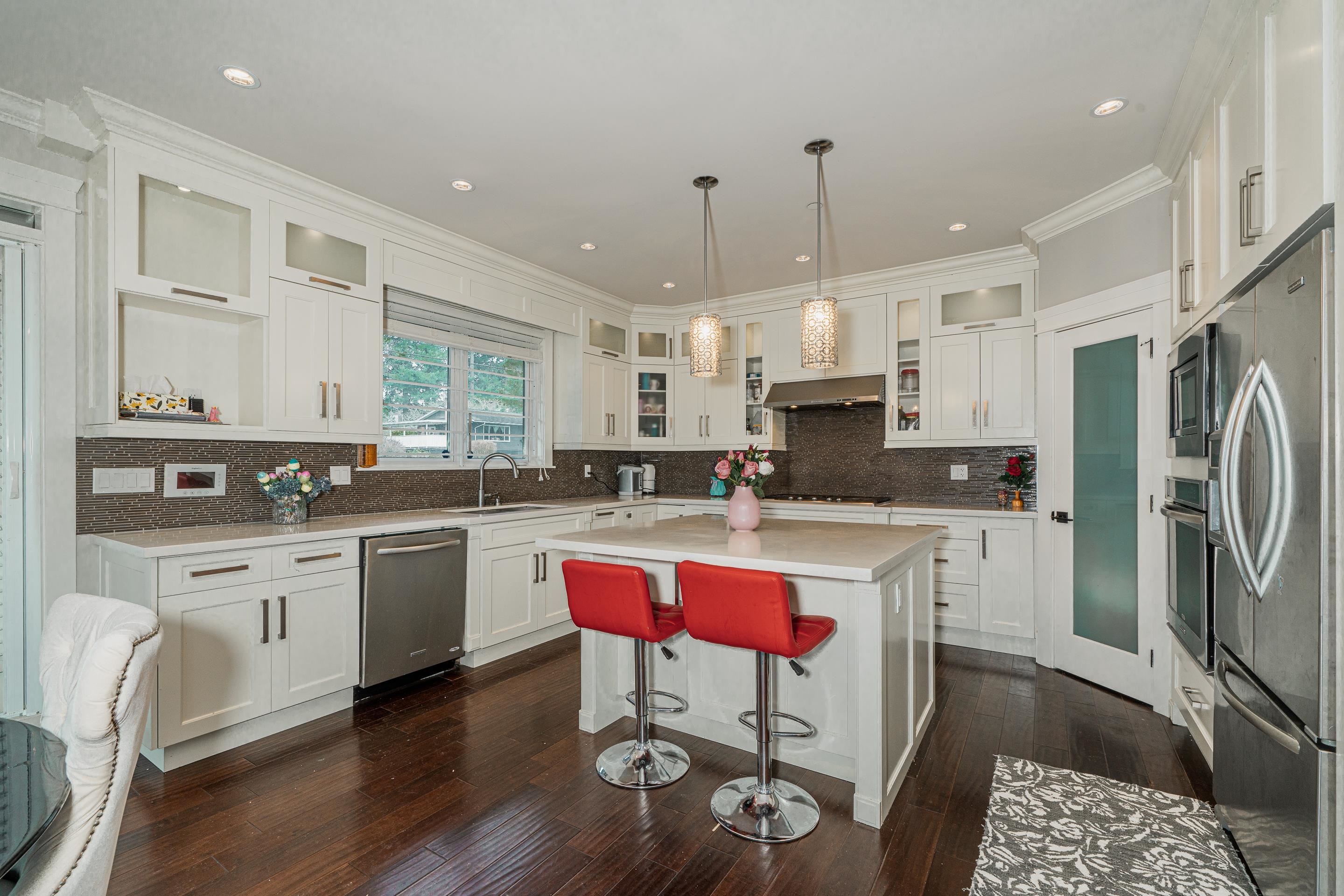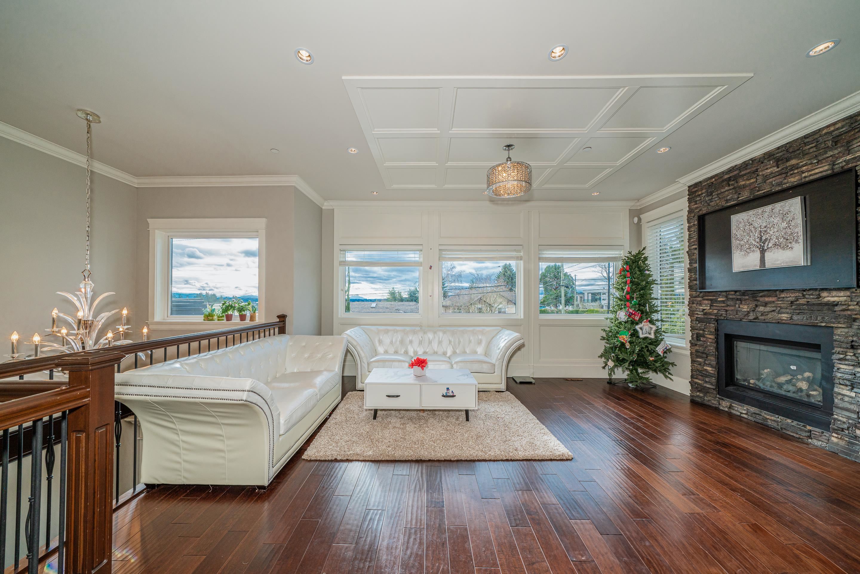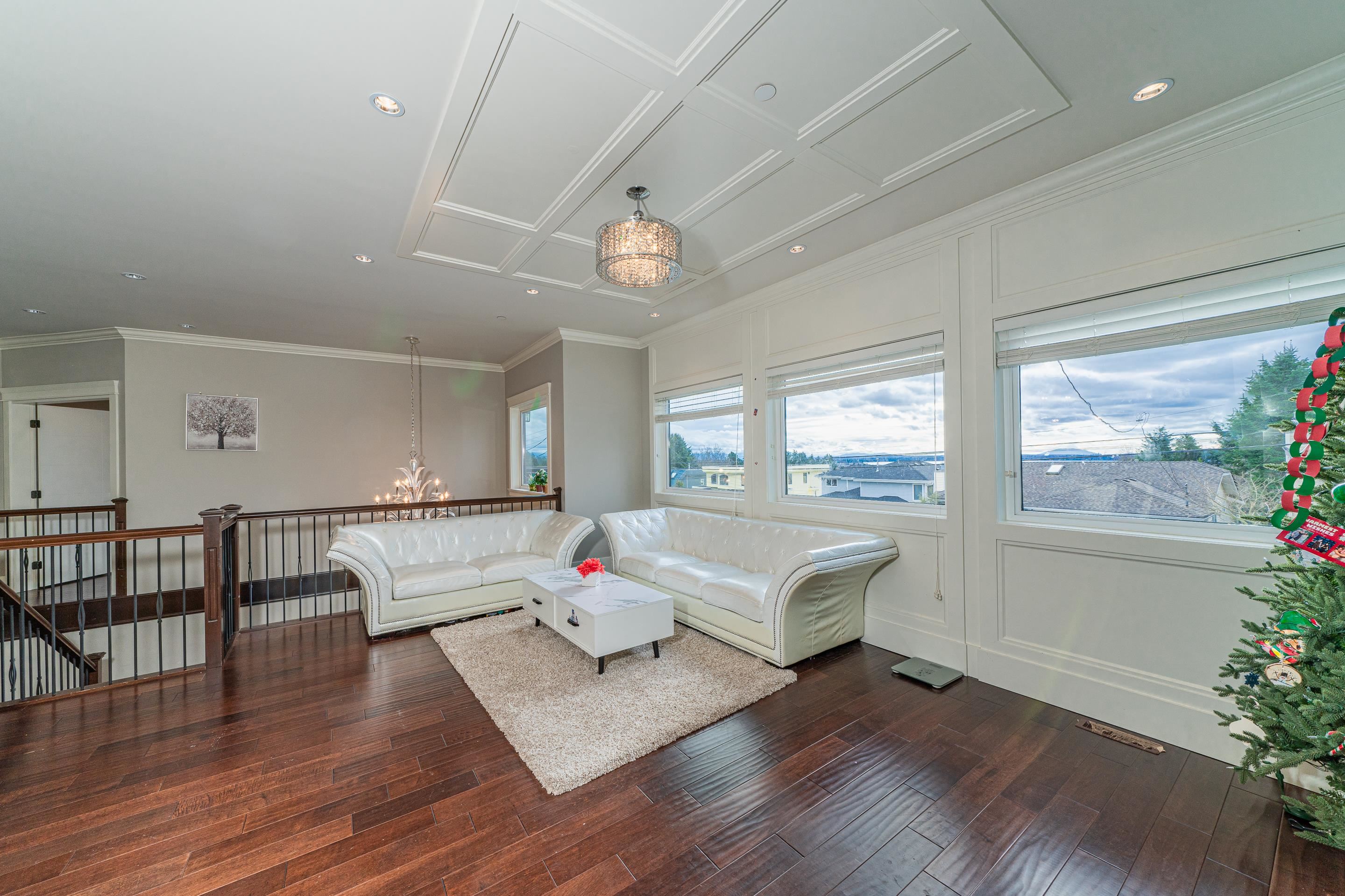 Stunning OCEAN, MOUNTAIN and CITY view. Premium custom built home featuring reverse floor plan with kitchen and master bedroom on the top floor to take advantage of the ocean views. Open concept floor plan with bright kitchen with accent lighting, granite counters, grand island and stainless steel appliances.The Master bedroom retreat with spa style ensuite, walkin closet, private balcony and view of ocean & Mnt. Baker. Main floor features 2 large bedrooms both ensuited and a large sunny office. Basement bo...