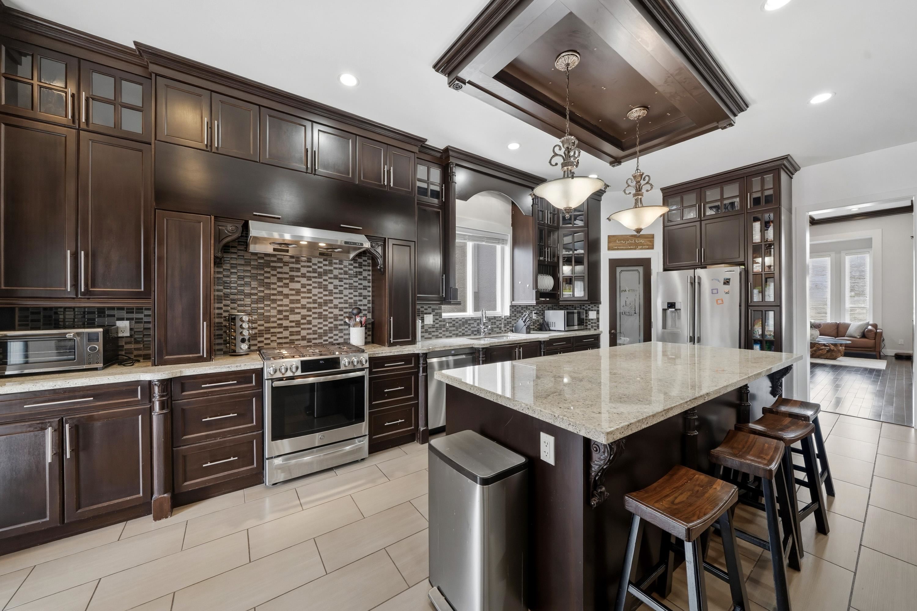 Stunning South-Facing Home on a 7,500+. Nestled on a quiet street just a one-minute walk to Fleetwood Park and Fleetwood Park Secondary School, this beautifully maintained home offers the perfect blend of comfort and convenience. Enjoy walking distance to the future SkyTrain station, community centre, library, transit, banks, and shopping. This like-new home features soaring ceilings throughout the main floor, enhanced by extensive crown mouldings and baseboards. The chef-inspired gourmet kitchen boasts a m...