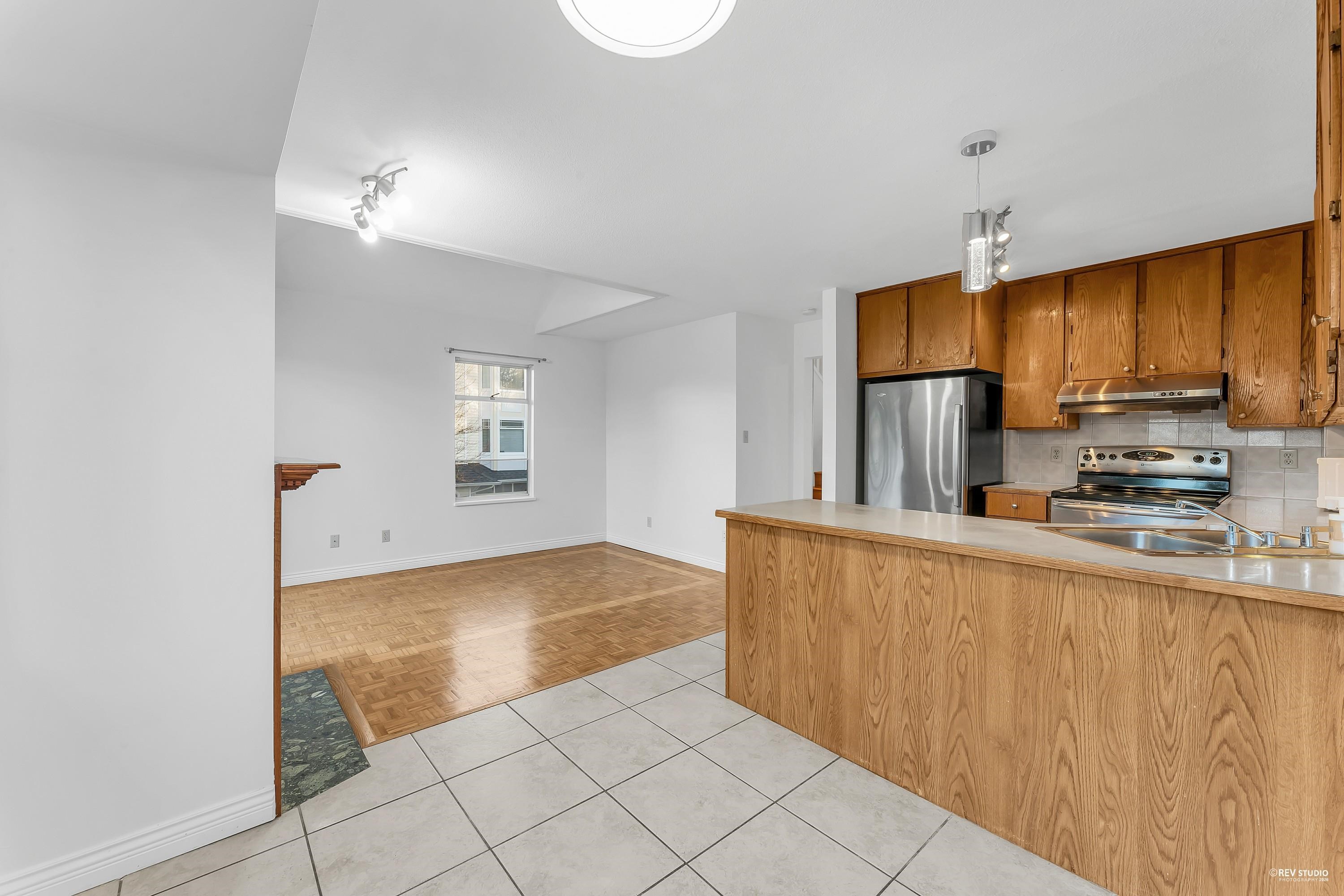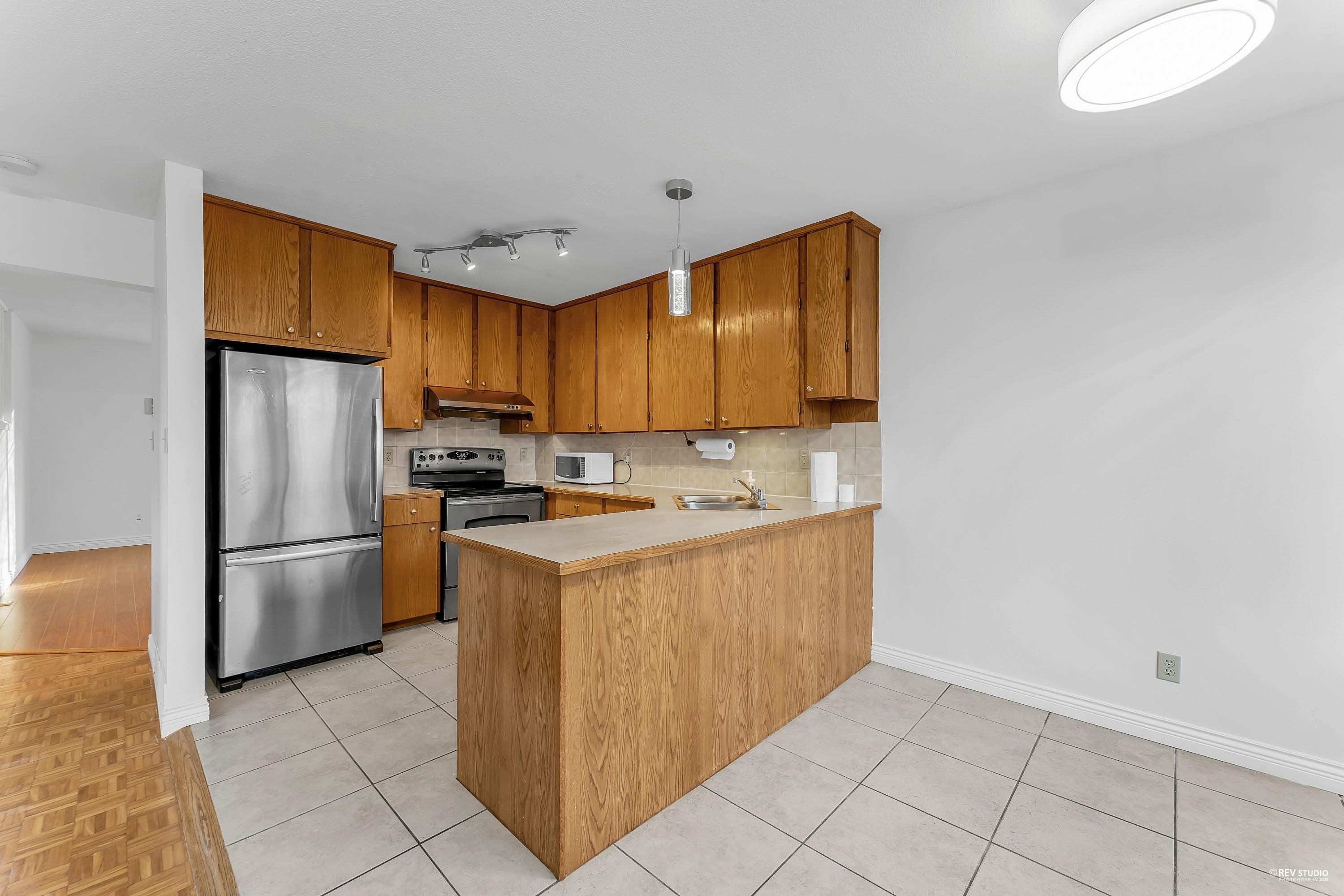 Well-maintained end-unit townhome offering generous living space and excellent functionality. The upper level features two large bedrooms and a full bathroom, while the basement includes a spacious recreation room with a full bathroom, which can be used as a third bedroom. This home offers large principal rooms, a bright and spacious kitchen with eating area, and a private backyard. Two parking spaces included for added convenience. Ideally situated steps to transit and close to excellent schools, parks, an...