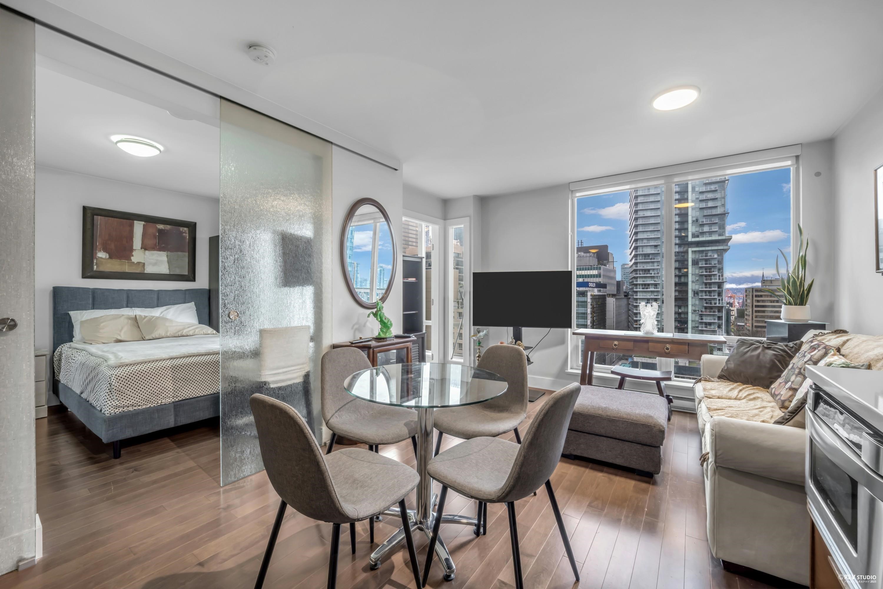 Iconic DOLCE at SYMPHONY PLACE - landmark concrete high-rise development built by renowned Solterra! Functional, bright, 1 bedroom/1 bathroom + den AND flex room layout with 537 sqft of versatile and modern living area. Notable features such as floor-to-ceiling windows, no wasted space with conventional rooms for ideal furniture placement, concierge service, secured underground parking and storage locker, and overlooking an elevated, NE views of the vibrant city skyline! Strata amenities include exercise ce...