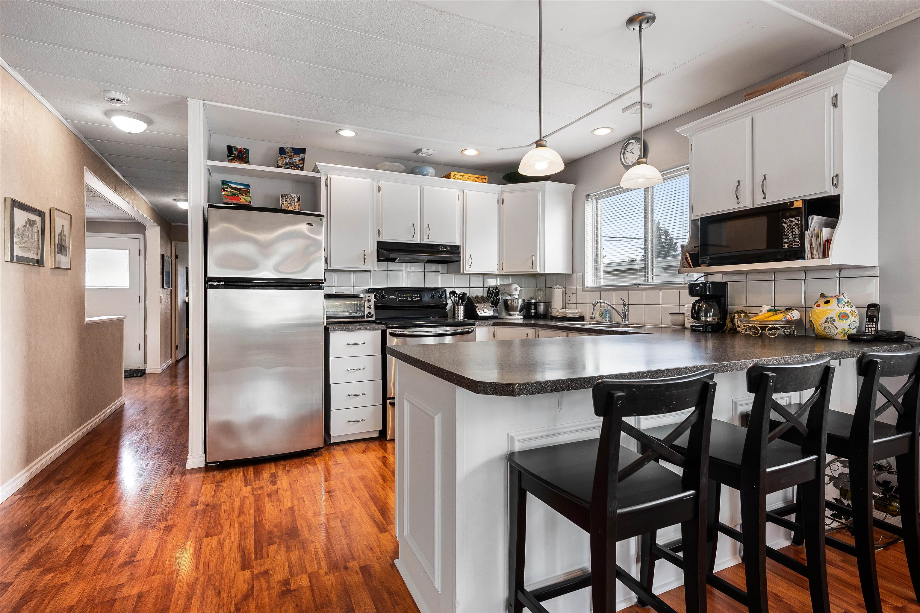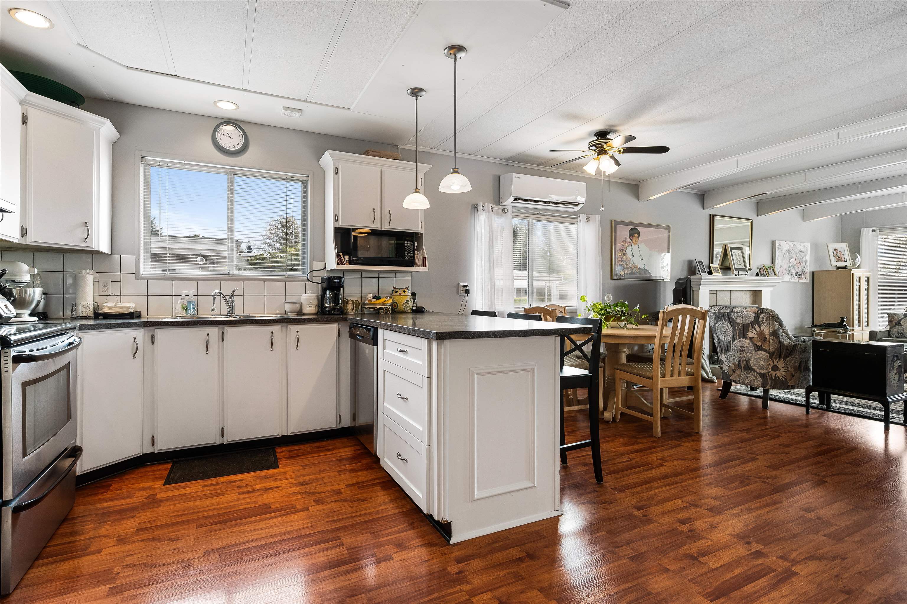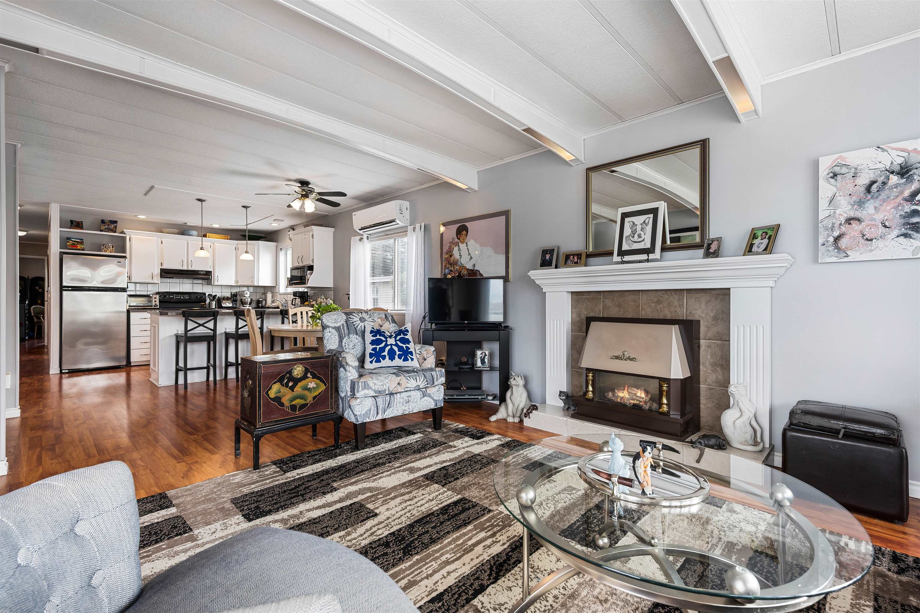 Nestled in the tranquil 55+ community of Pioneer Park in Aldergrove, #165 offers a peaceful retreat close to shopping and amenities, with serene farm surroundings near the US border. This move-in ready home, lovingly maintained by the same owner for 20 years, features 2 bedrooms, 2 bathrooms, and modern updates. Enjoy an open-concept living area with a gas fireplace and abundant natural light from south-facing windows. The updated kitchen boasts stainless steel appliances, while a heat pump ensures year-rou...