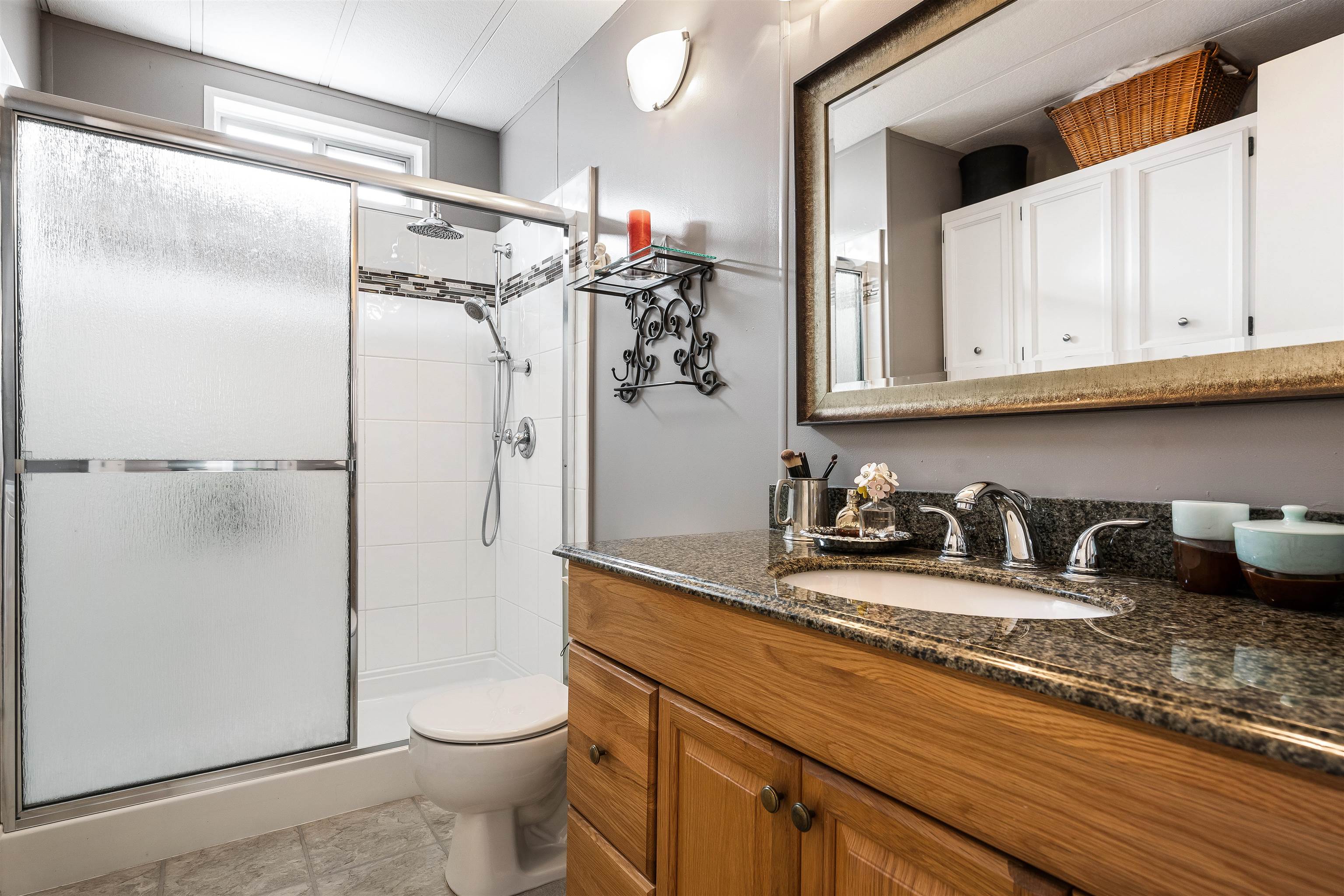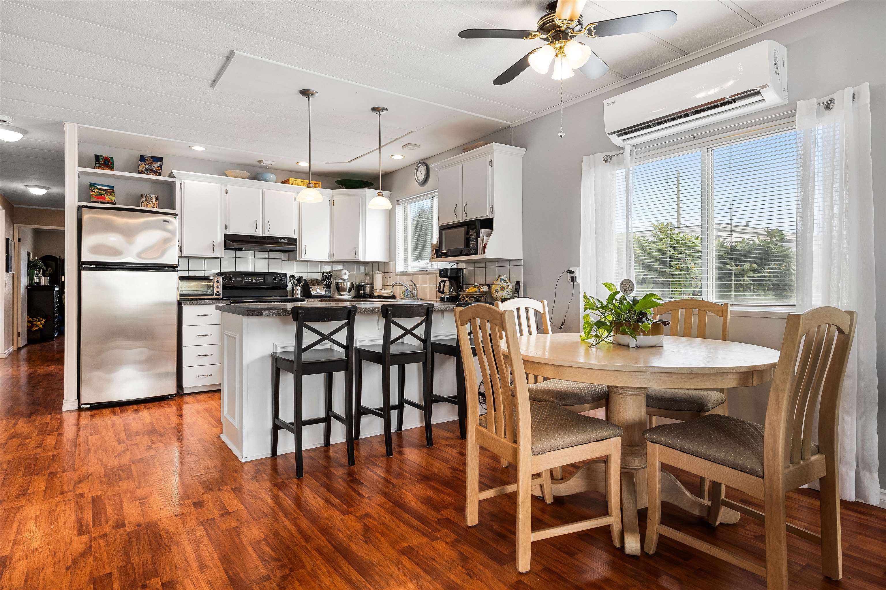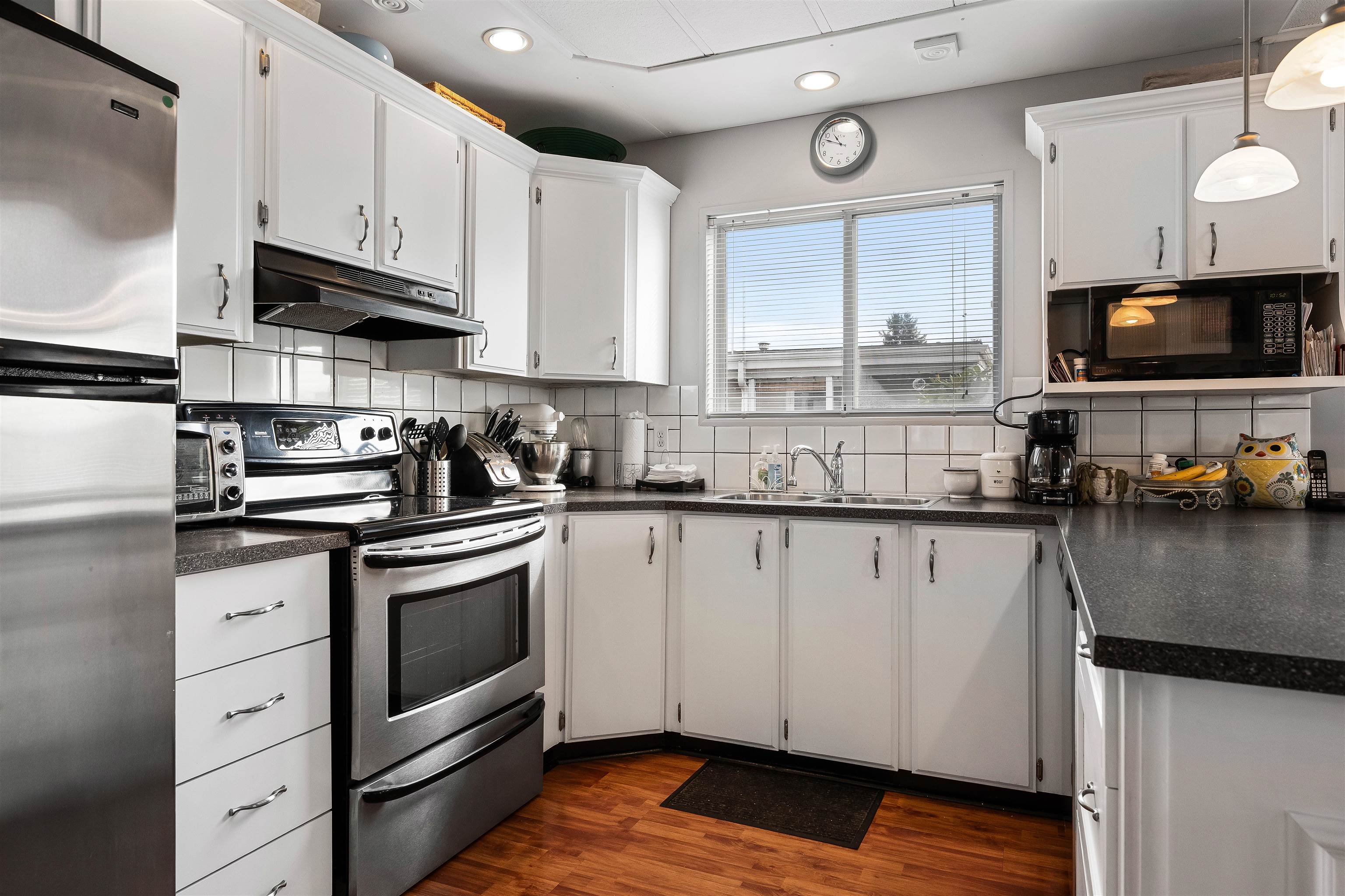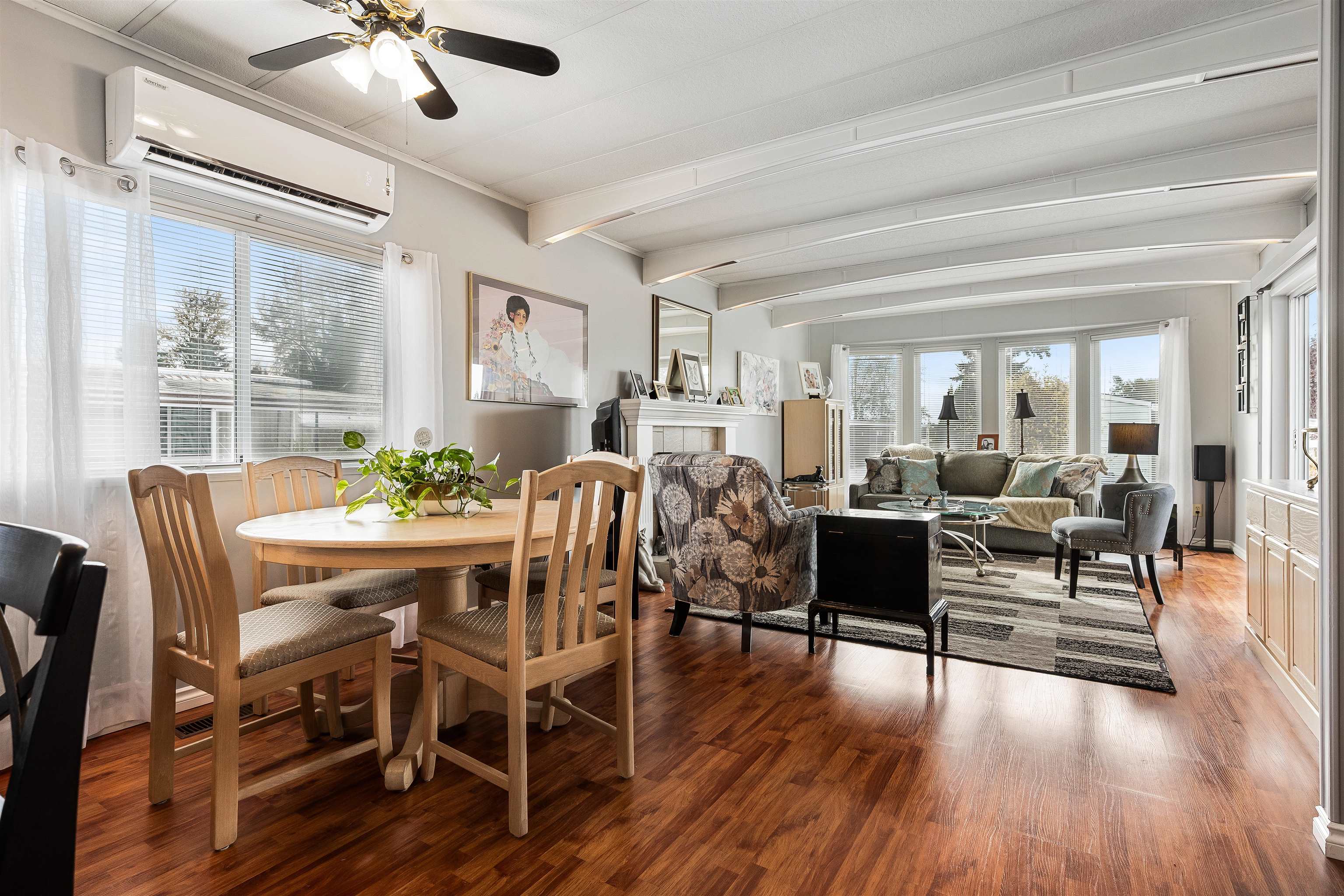 Nestled in the tranquil 55+ community of Pioneer Park in Aldergrove, #165 offers a peaceful retreat close to shopping and amenities, with serene farm surroundings near the US border. This move-in ready home, lovingly maintained by the same owner for 20 years, features 2 bedrooms, 2 bathrooms, and modern updates. Enjoy an open-concept living area with a gas fireplace and abundant natural light from south-facing windows. The updated kitchen boasts stainless steel appliances, while a heat pump ensures year-rou...