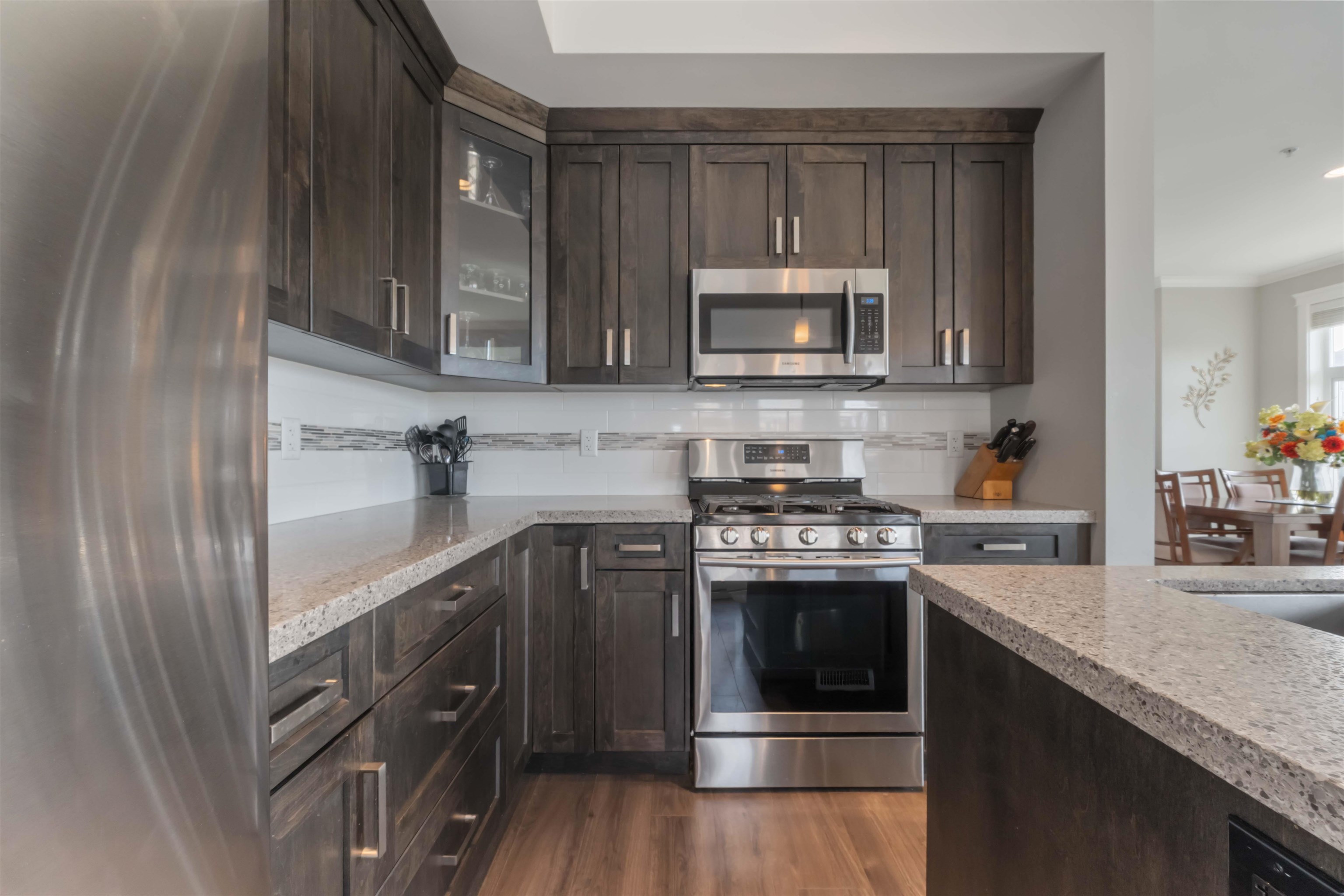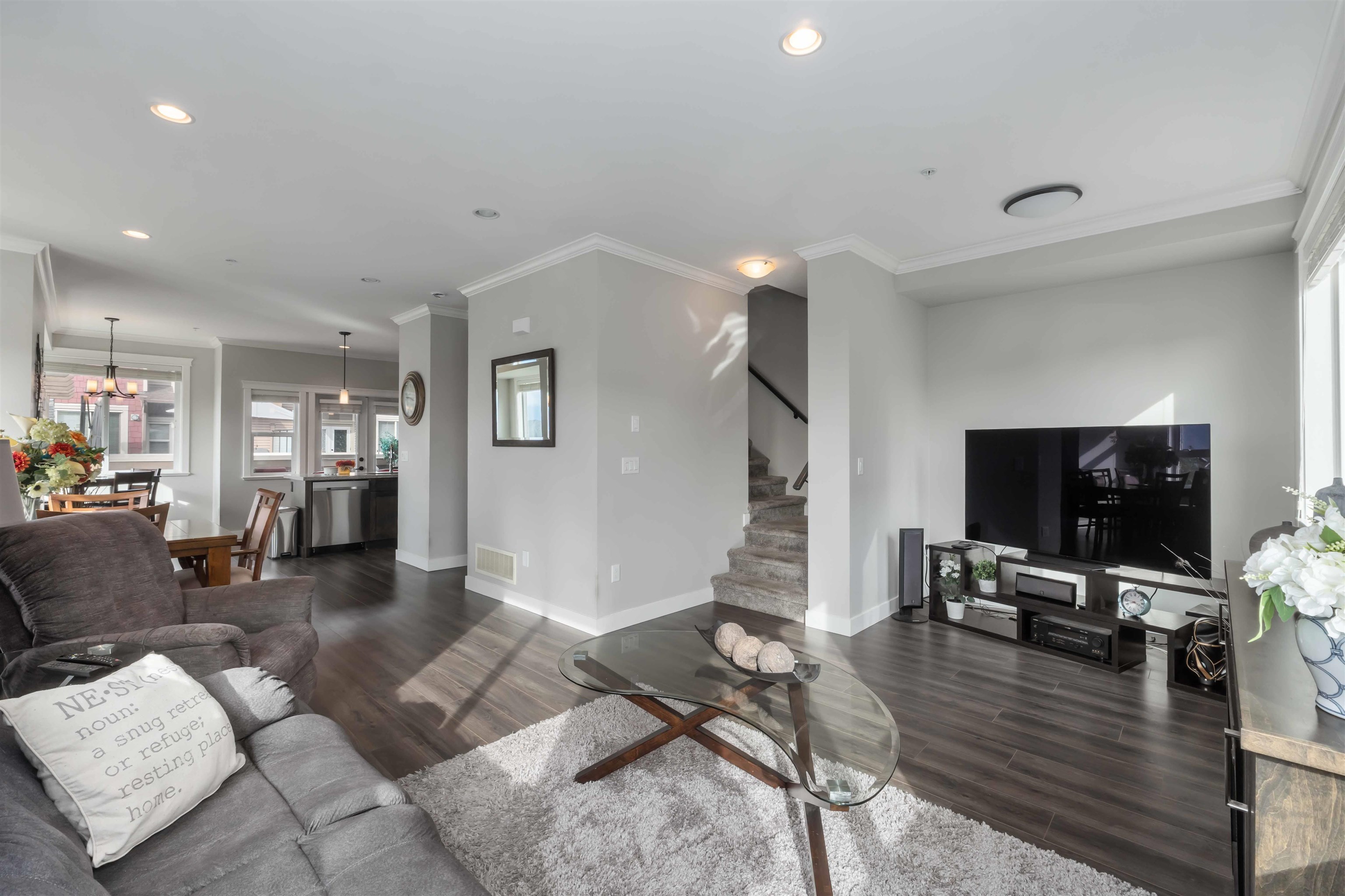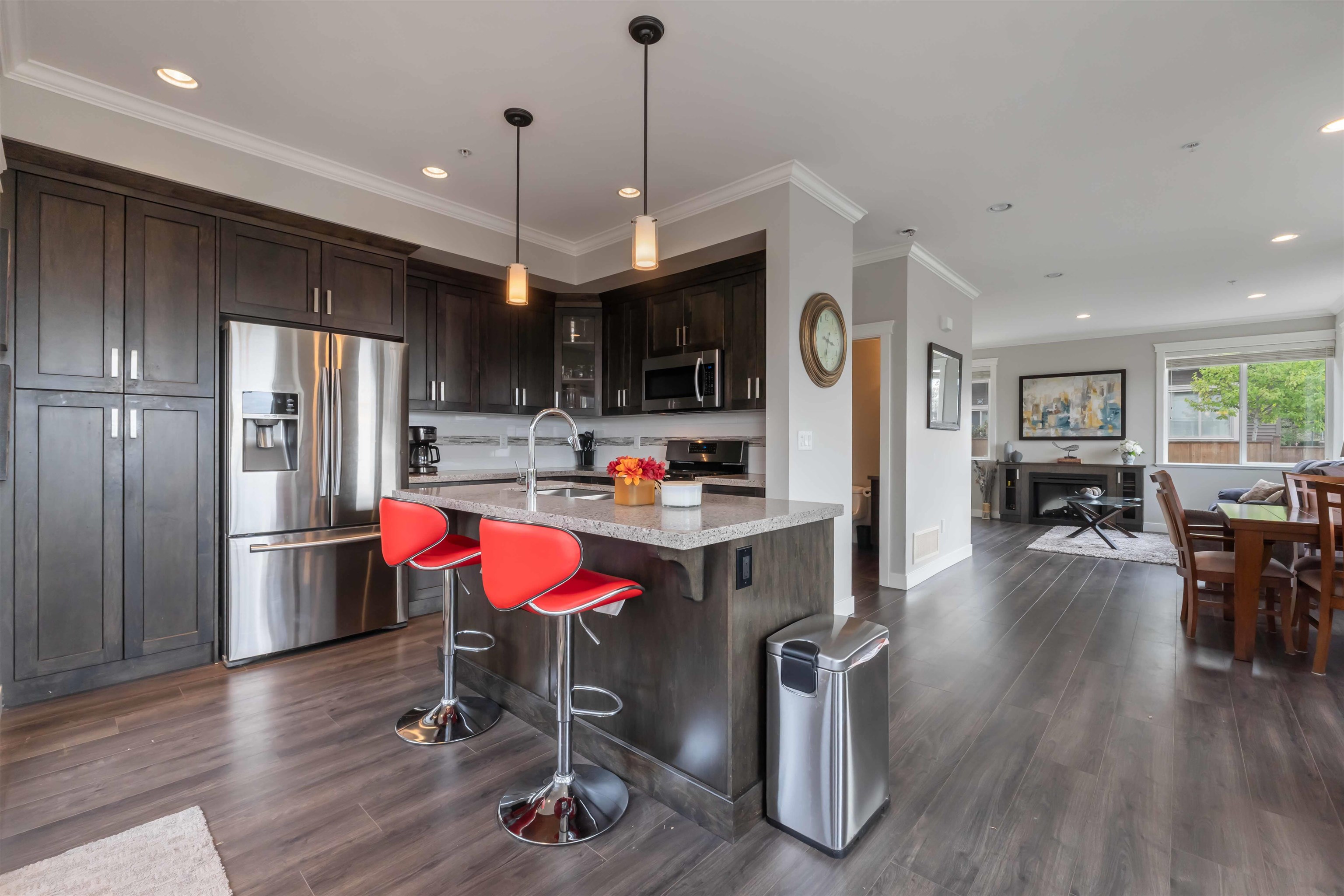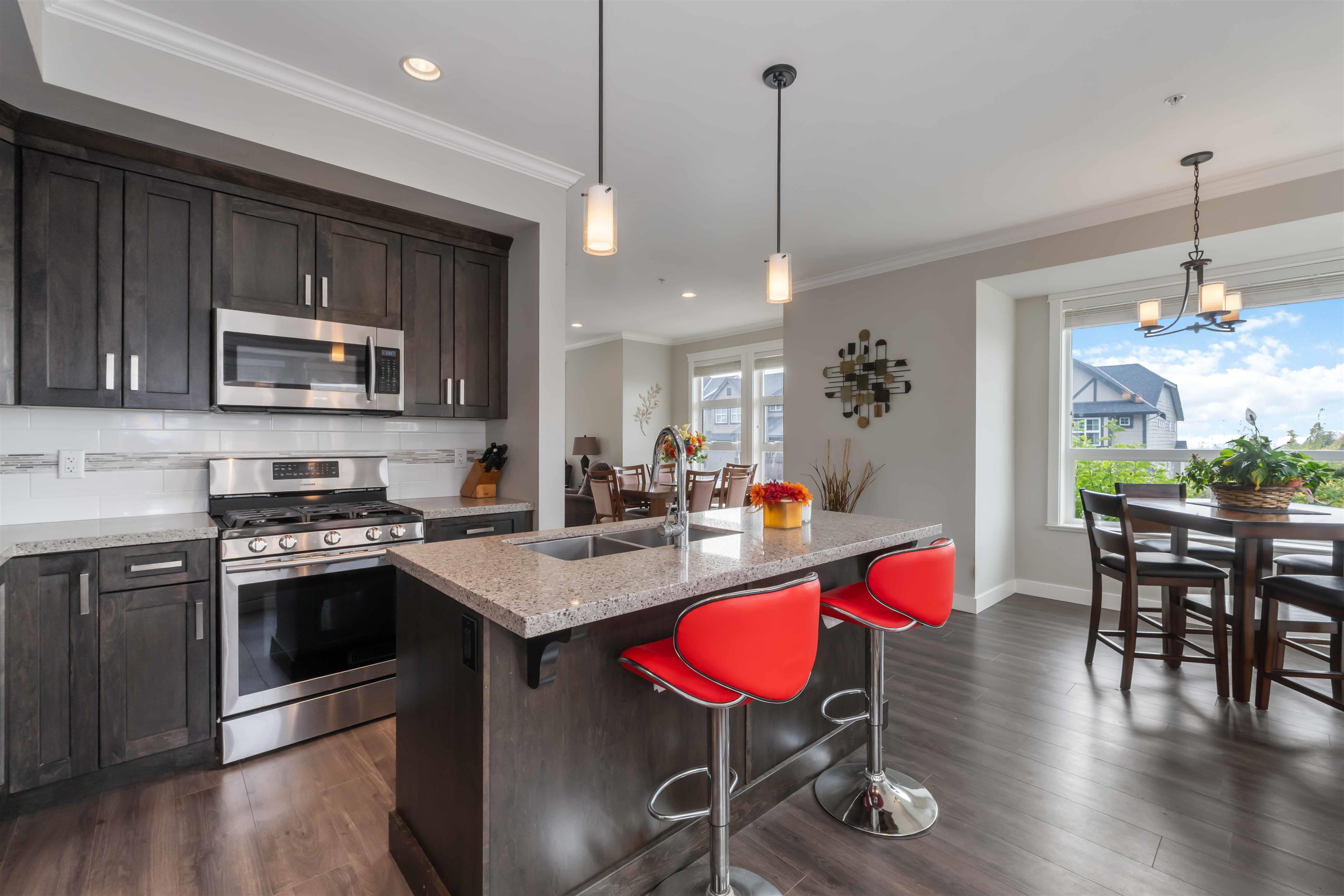 Welcome to The Terraces II! This executive 3 bed, 4 bath townhome offers stunning mountain, valley & sunset views from every window. Quality finishes include a formal living room wl crown moulding throughout, built-in cabinetry, fireplace & laminate floors. The gourmet kitchen boasts quartz counters, island, stainless appliances & gas range. French doors lead you out to an XL private deck perfect spot for entertaining & BBQ'n. Upstairs features a spacious primary w/ walk-in & spa-like ensuite plus 2 more be...