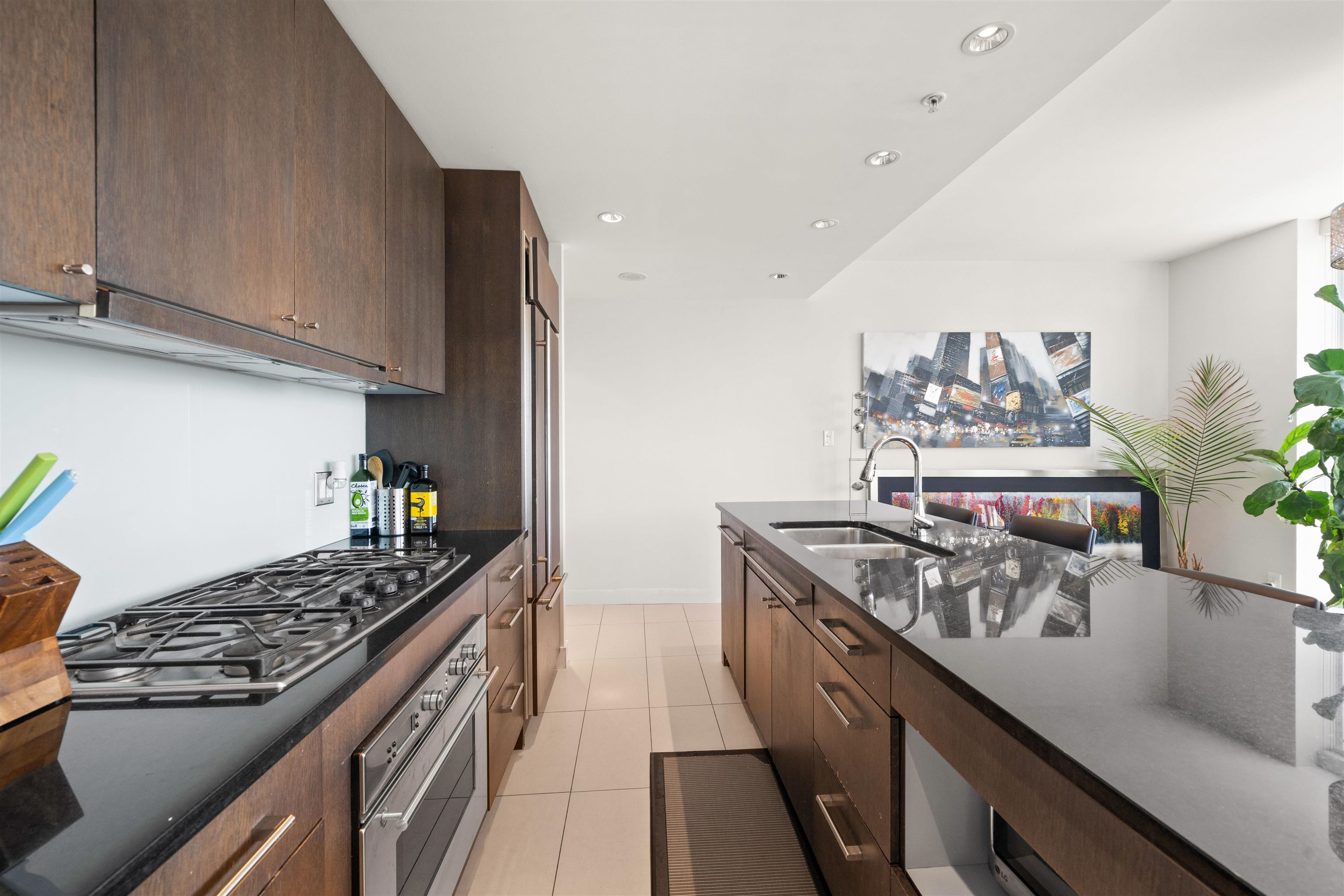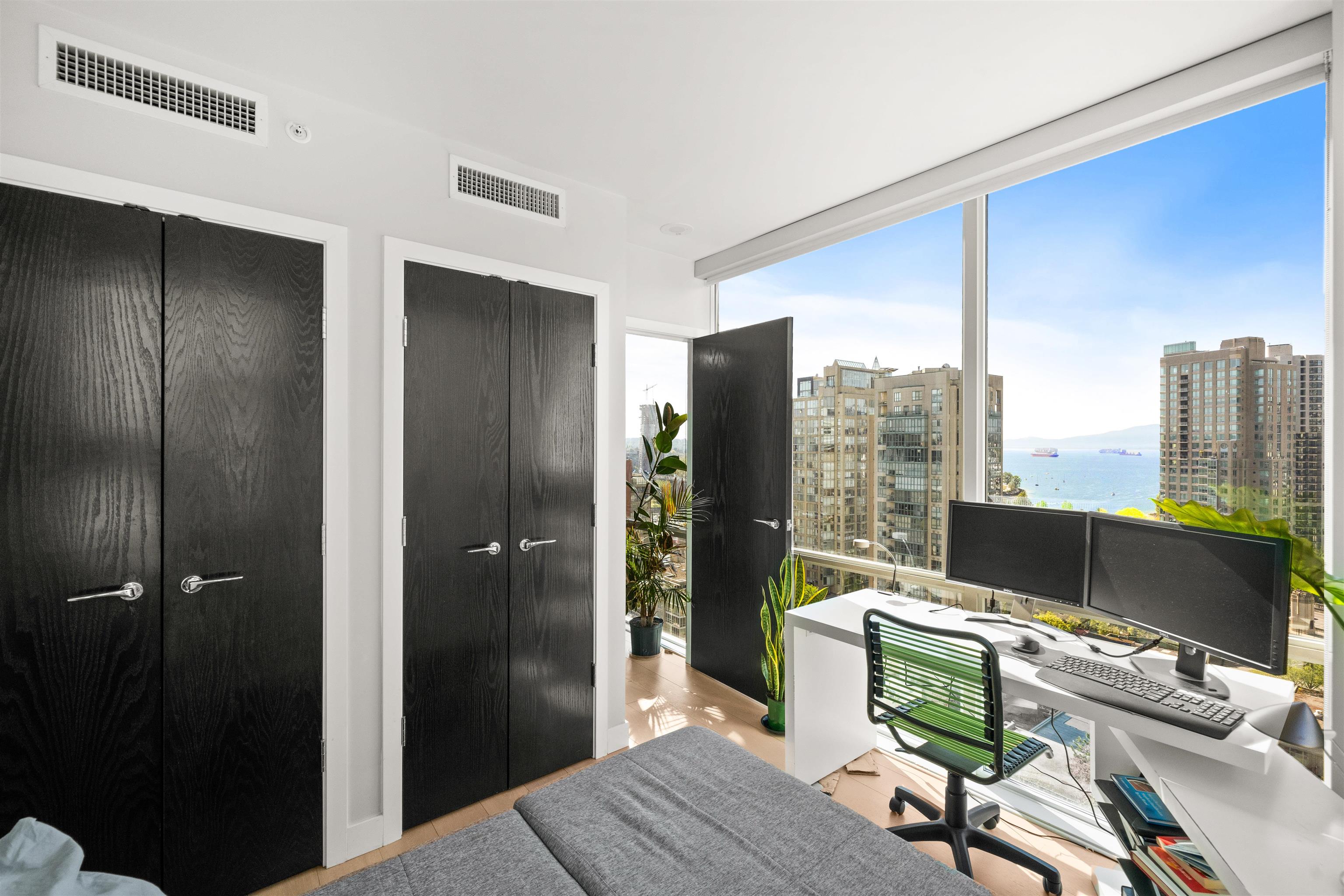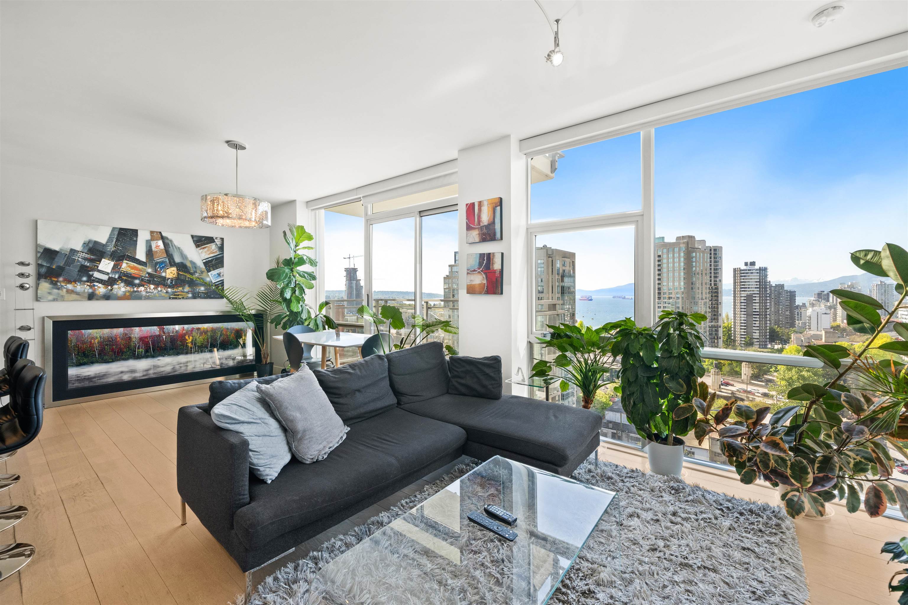 Experience luxury living in this rarely available and highly sought-after floor plan at the prestigious Pomaria. This beautifully designed furnsihed 2-bedroom, 2-bathroom home offers 895 sq ft of open-concept living with stunning west and north-facing views of English Bay and the city skyline. Enjoy floor-to-ceiling windows, a spacious view balcony, and high, smooth-finish ceilings. Geothermal heating and cooling provide year-round comfort and energy efficiency. The chef’s kitchen features a five-burner gas...