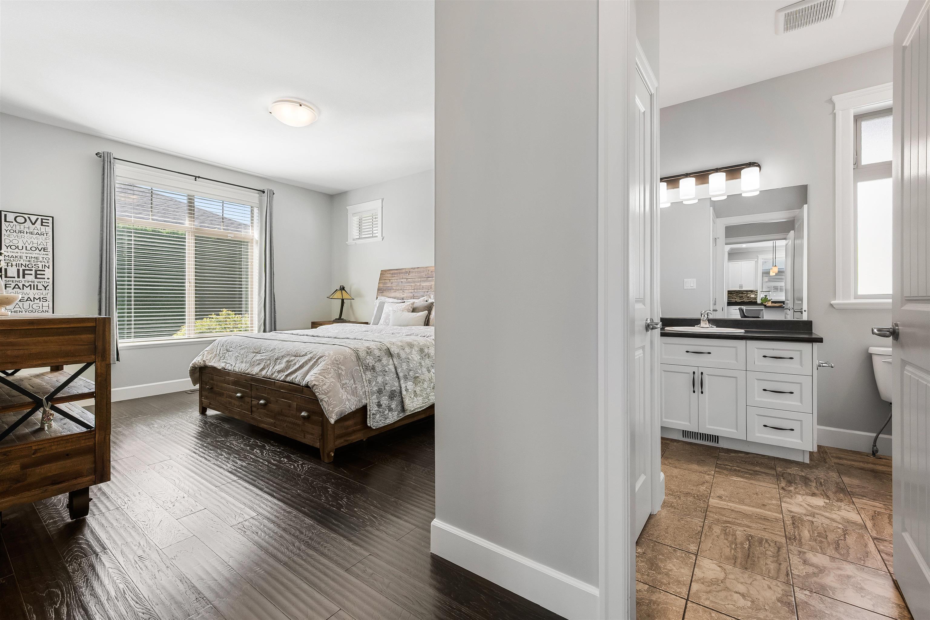 Downsize without compromise! Ensley is a coveted 45+ gated community offering comfort, space, active clubhouse & dedicated RV/boat parking. One-level living with south-facing backyard, granite counters, s/s appliances, pantry, central A/C, gas f/p, 1-car garage w/bonus area for your workshop/storage, 4' crawl space, desk nook & an open bright sun filled floorplan. Enjoy a quiet community close to shopping, Vedder River, short drive to Cultus, 2 small pets allowed plus golfing around the corner! With its cov...