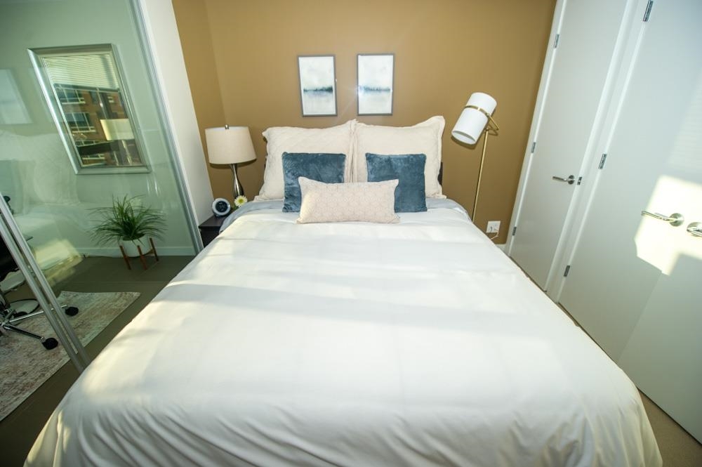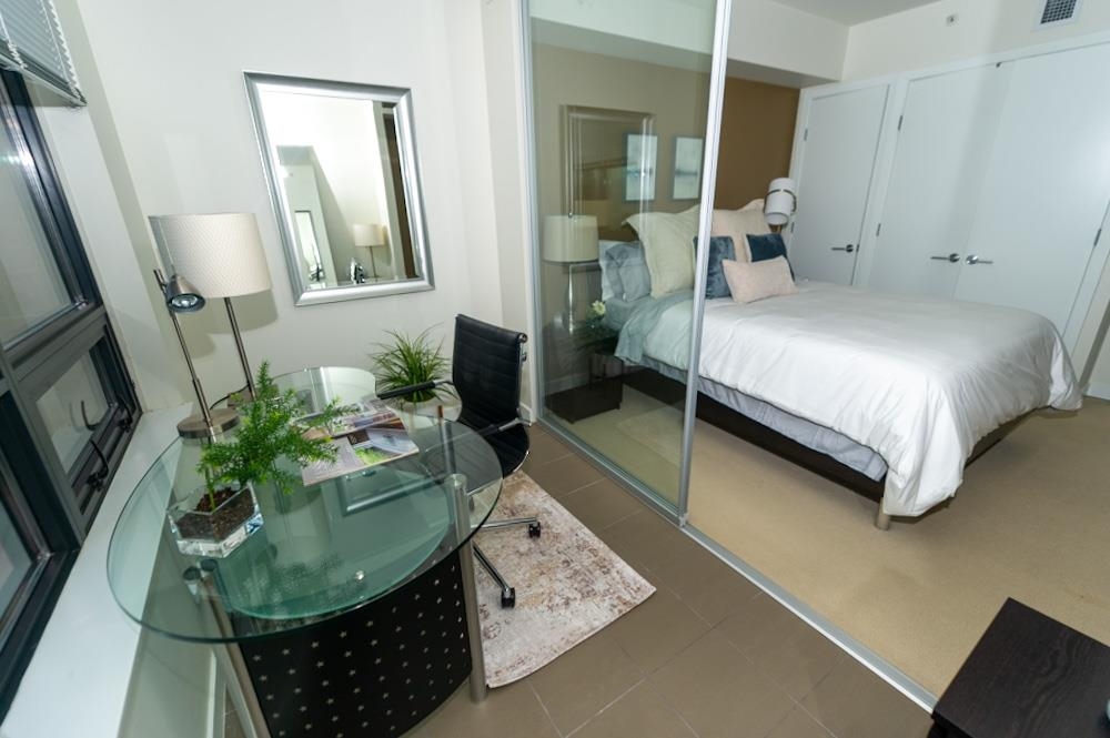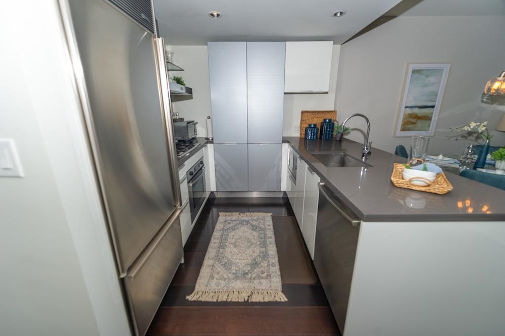 FURNISHED 1 bdrm + den, 1 bath, 685 sq ft A/C condo at L’Hermitage. Bright open layout w/ views over hotel gardens & city skyline. Kitchen features Diamastone counters, Eggersmann cabinetry, Bosch appls, Sub-Zero fridge, gas cooktop & island w/ bar seating. Wide plank floors throughout. Bdrm connects to glass-enclosed solarium, ideal office w/ city views. Bath offers separate tub & shower w/ tile surround. Step-out balcony for fresh air, in-suite laundry & large in-suite storage. Located at Richards & Robso...