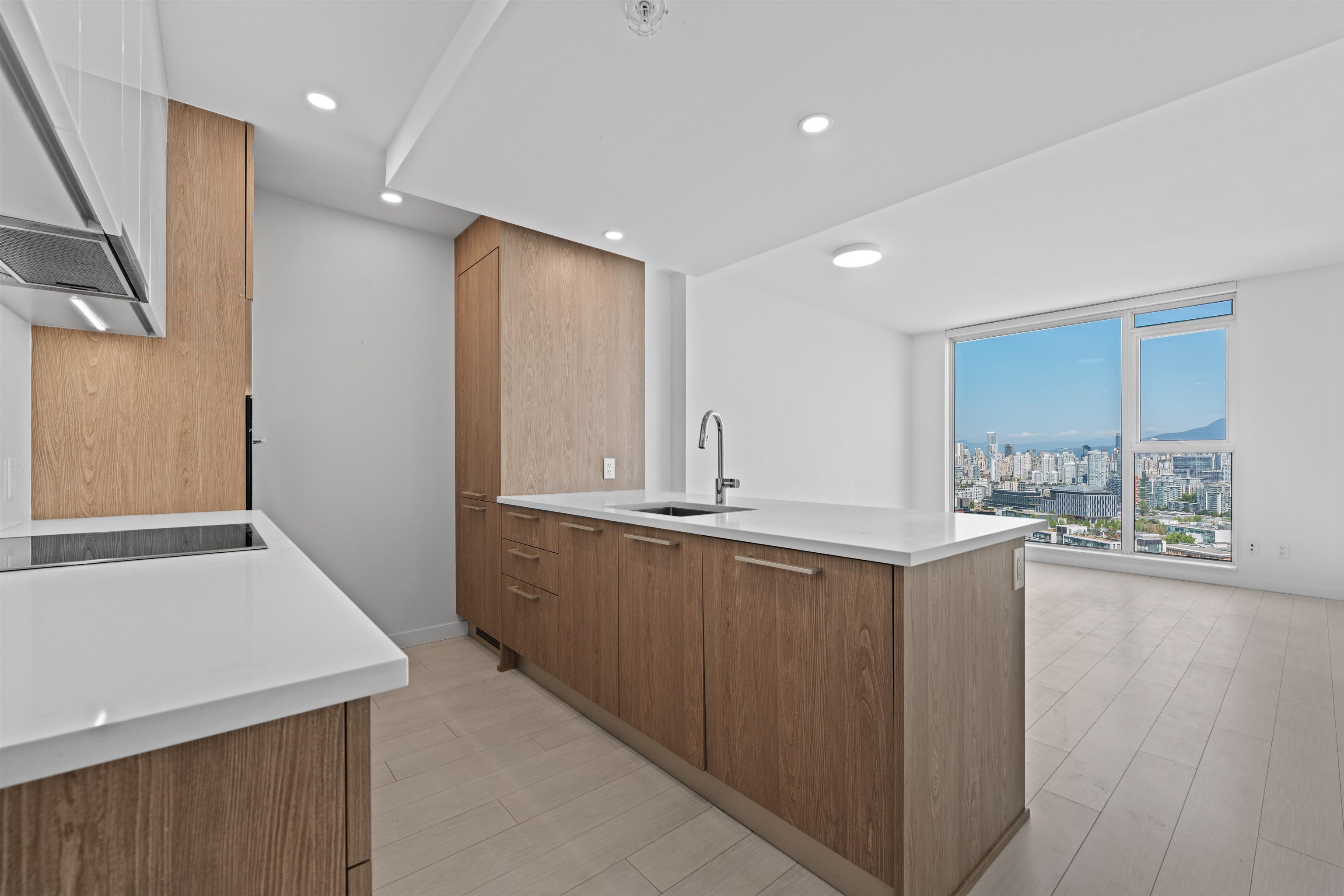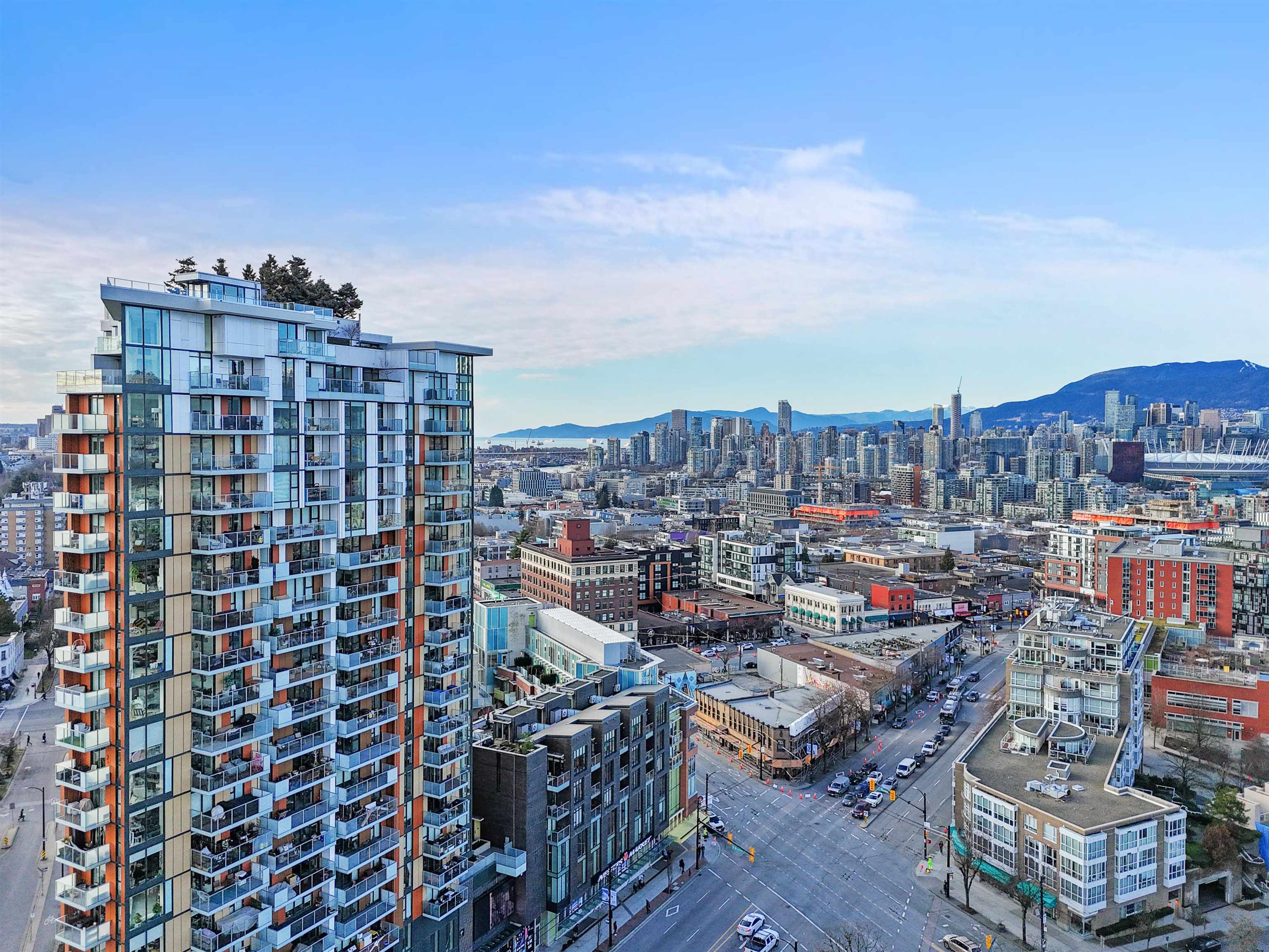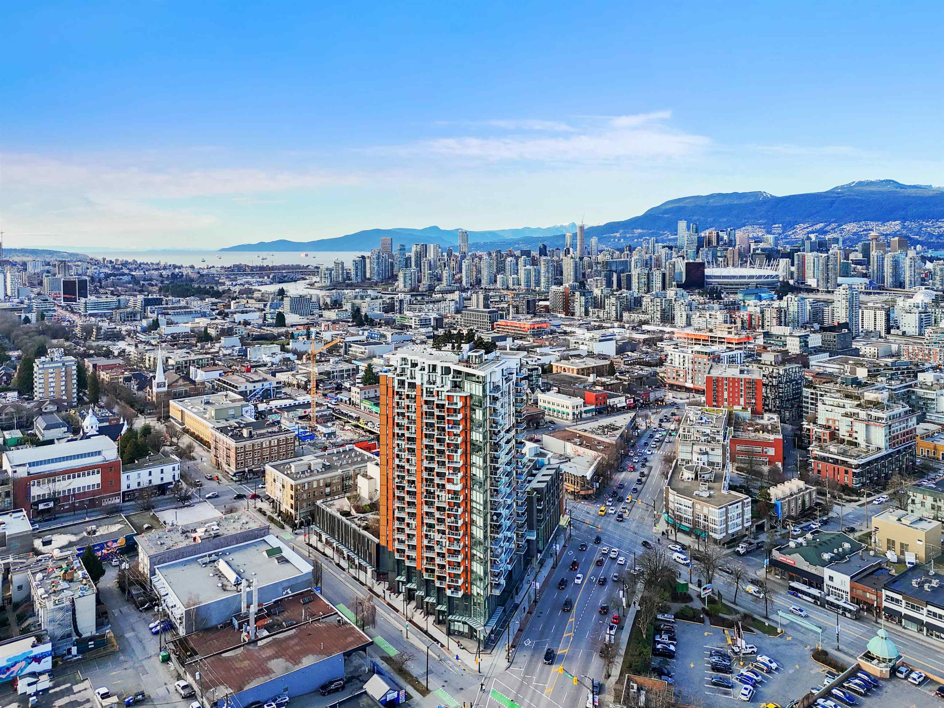 Experience breathtaking views and vibrant urban living in this beautifully designed 1-bed unit with flex and den, located in one of Vancouver’s most walkable neighbourhoods. Just steps away from shops, renowned dining options, major transit routes, and the Broadway SkyTrain station, this home seamlessly combines style and convenience. Inside, you’ll discover elegant design features, including custom millwork wardrobes in the entry and bedroom, sleek laminate flooring, and a contemporary kitchen equipped wit...