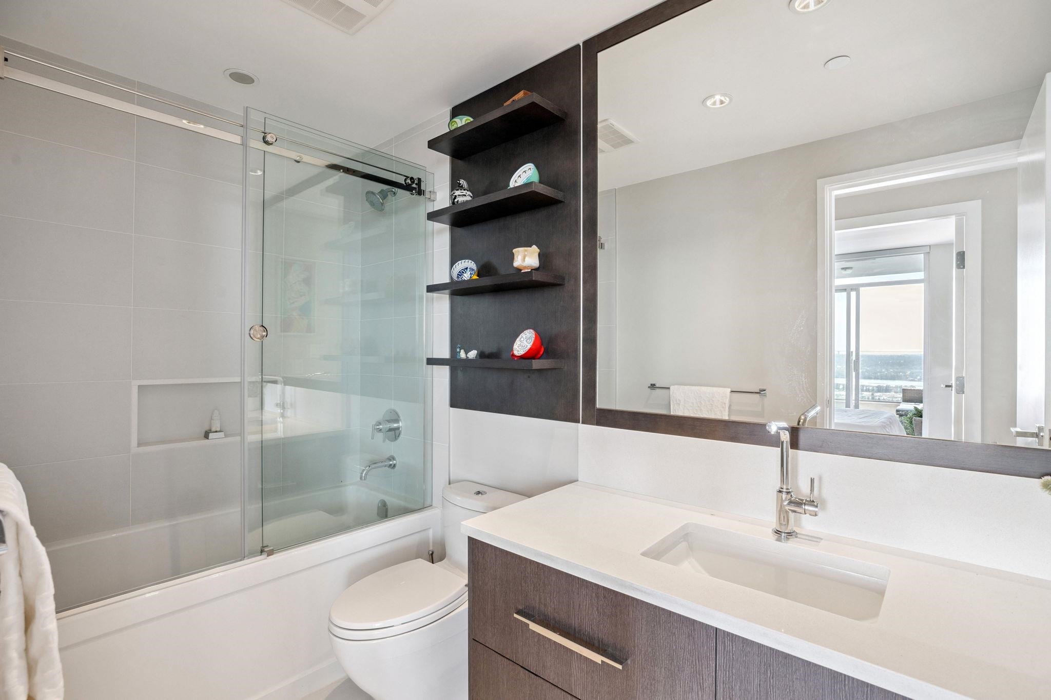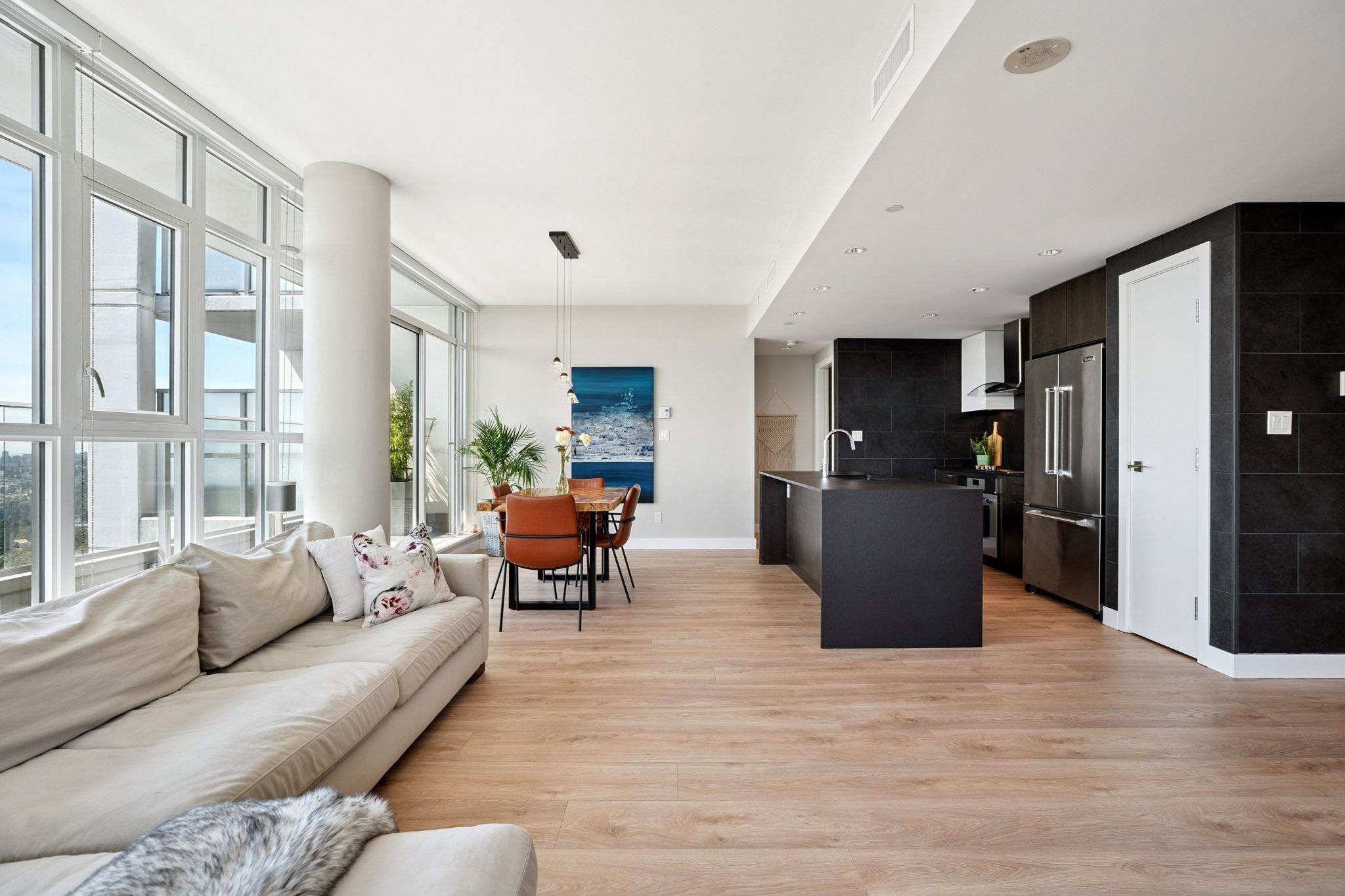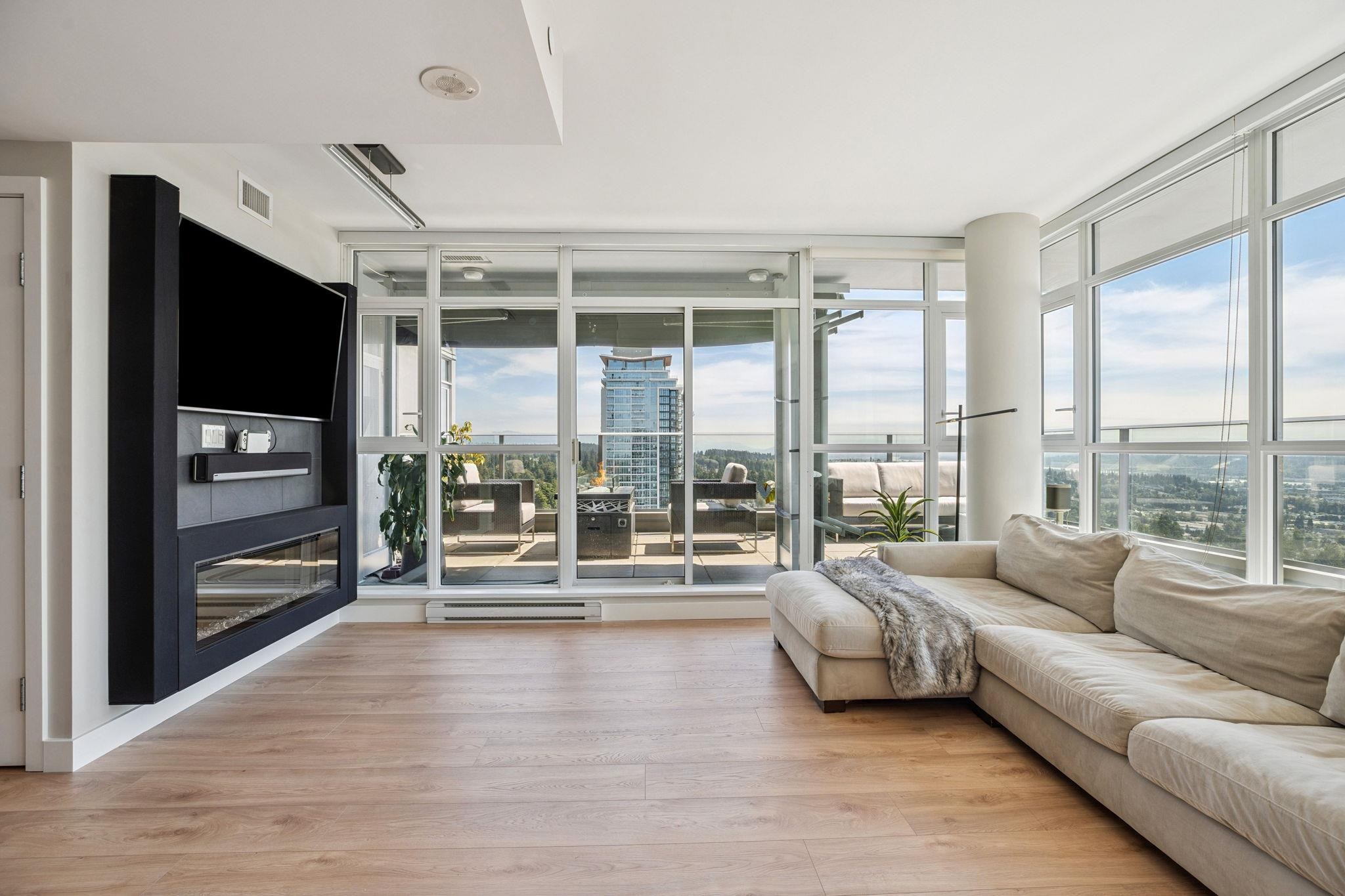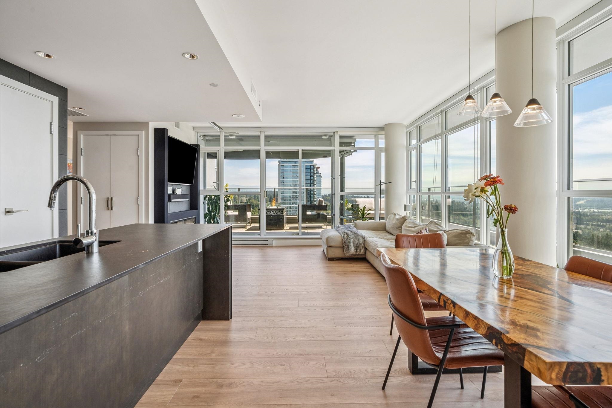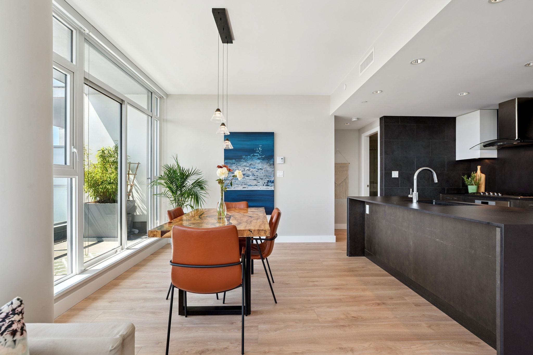 Above it all—an exceptional sub-penthouse with panoramic city, water, and mountain views, complimented by nearly 500 sq ft of private outdoor space across three terraces. Bright, open, and designed for seamless indoor-outdoor living. Thoughtful split-bedroom layout. The primary suite offers a walk-in dressing room, ensuite & private terrace. The second bedroom includes a large walk-in closet and its own terrace, set opposite for privacy with adjacent full bathroom. New Wide-plank flooring throughout. Sleek ...