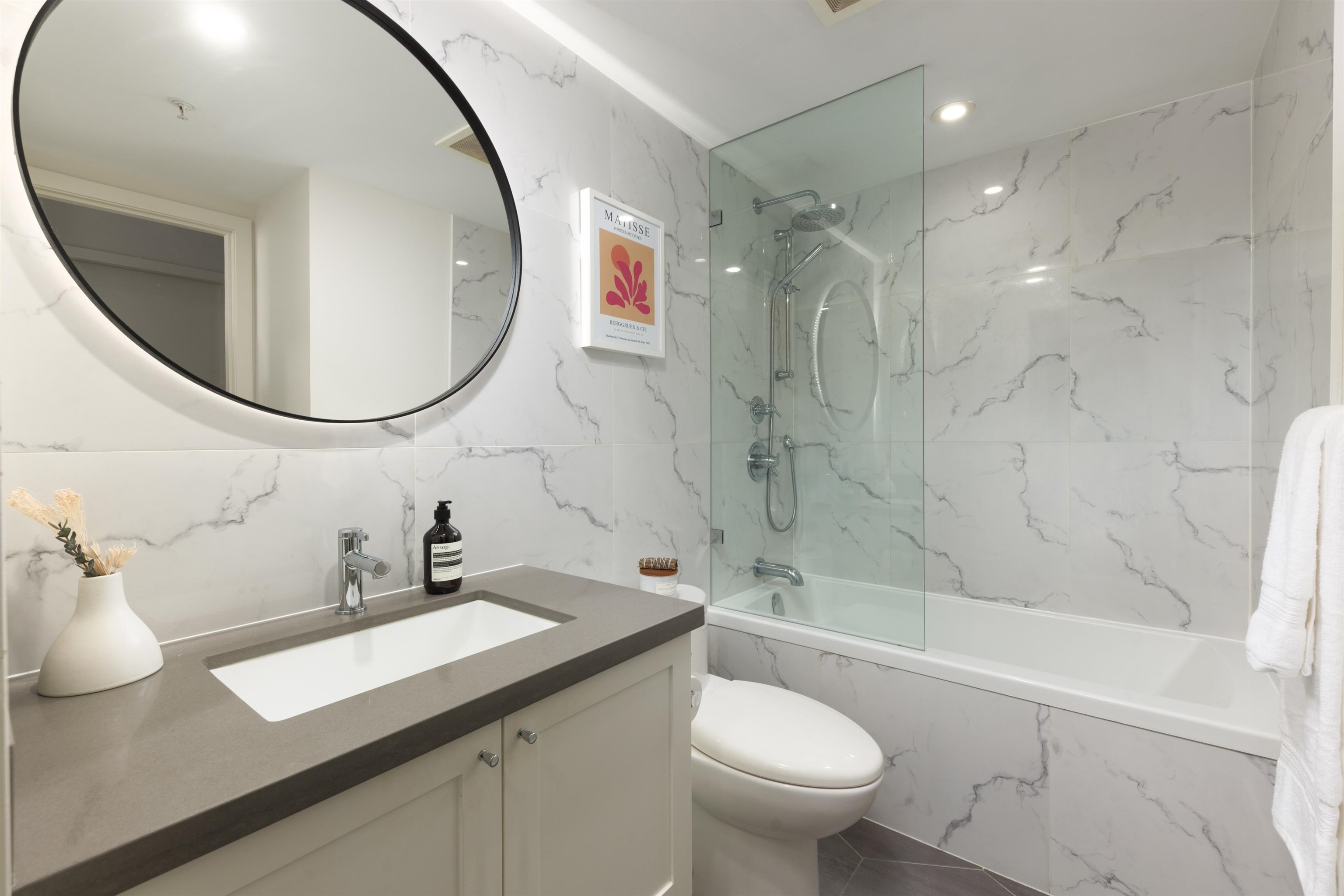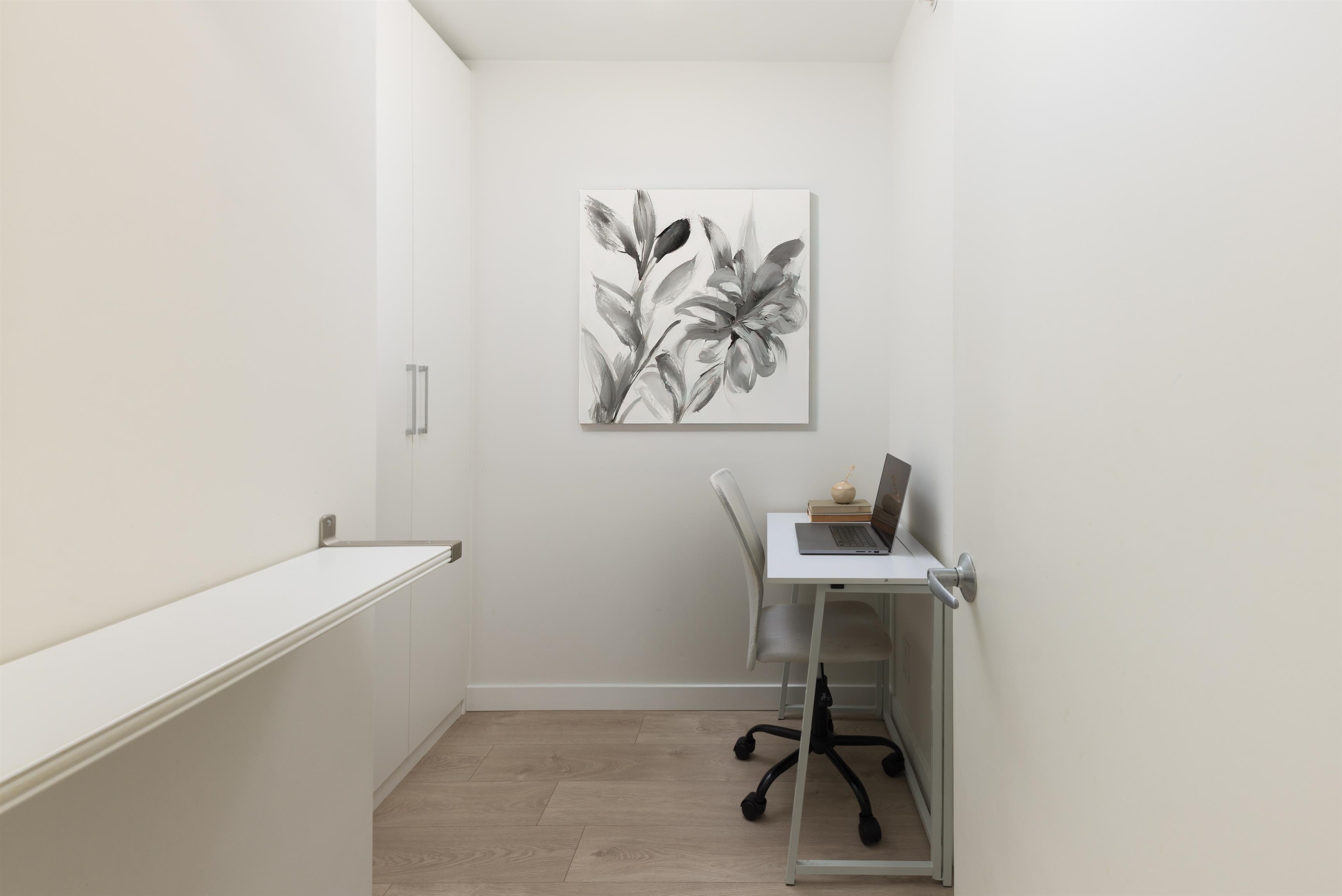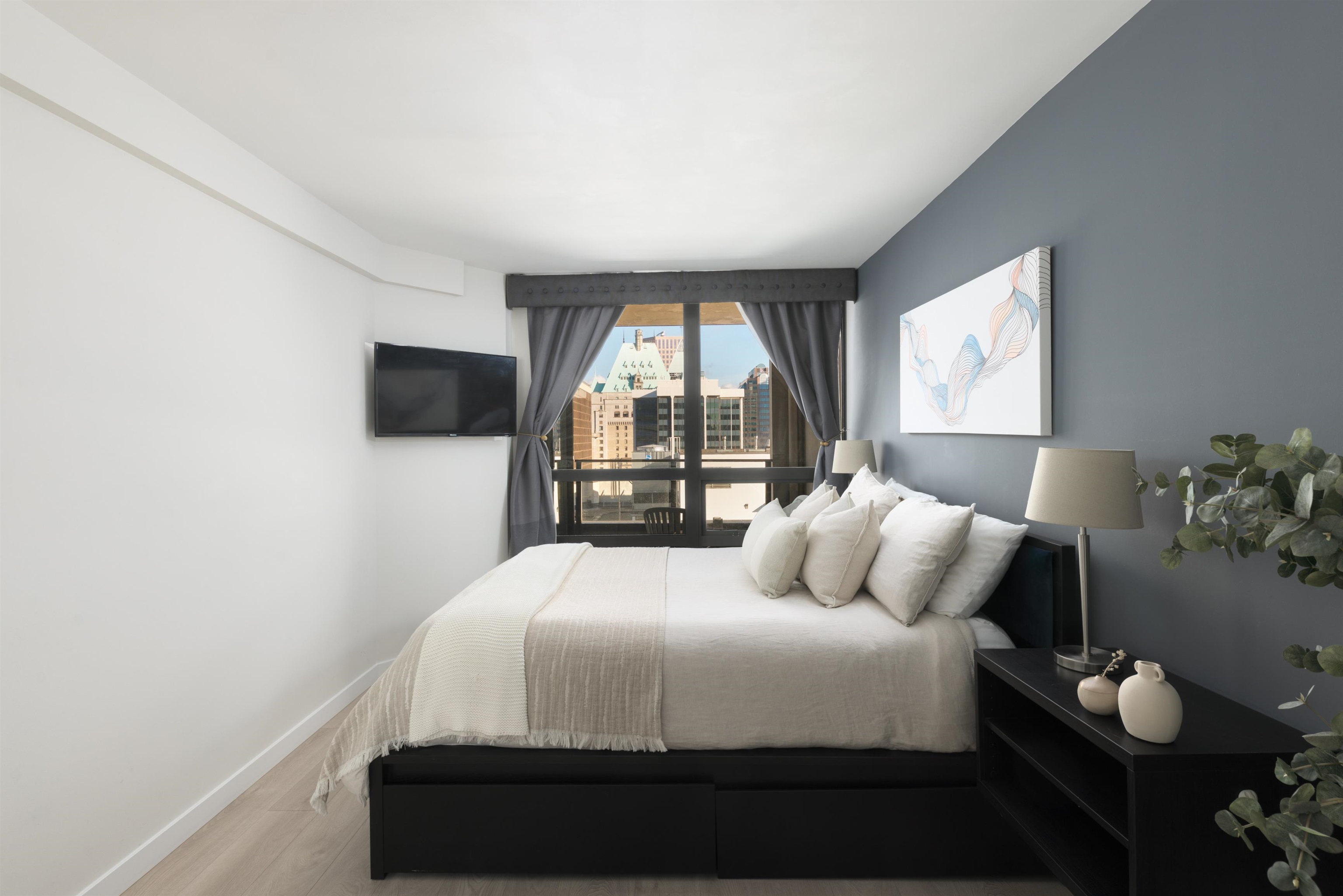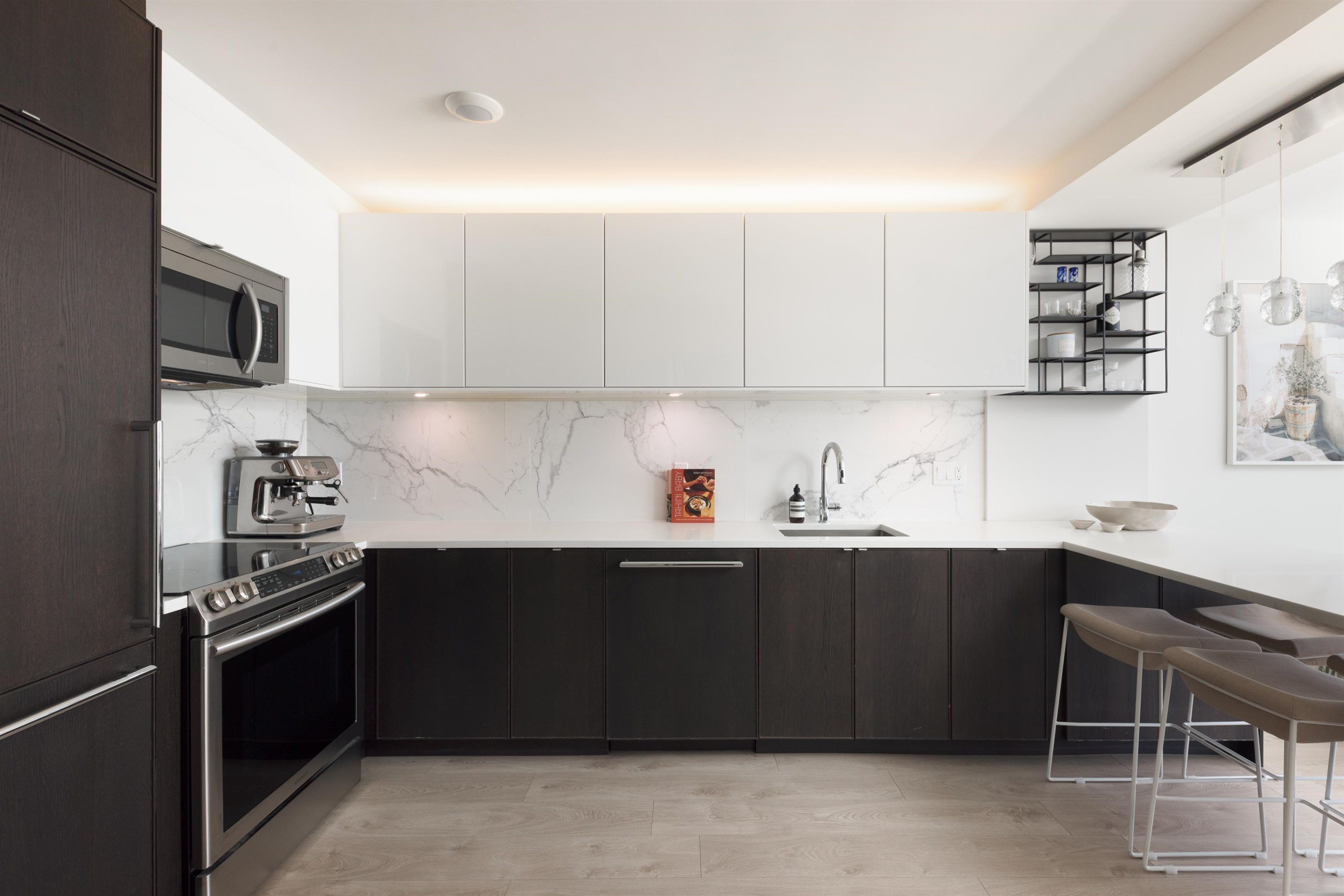 Enjoy downtown living at its finest in this move-in-ready 1 bed + den, 1 bath home, thoughtfully renovated in 2019 with $100,000 in custom upgrades. The chef-inspired kitchen features premium integrated appliances, white stone countertops, marble backsplash & a custom island with built-in dining. The spacious bedroom fits a king-size bed & offers walk-through California Closets to a renovated ensuite. A versatile den is ideal for a home office or storage, with custom built-ins throughout. Enjoy morning sun ...