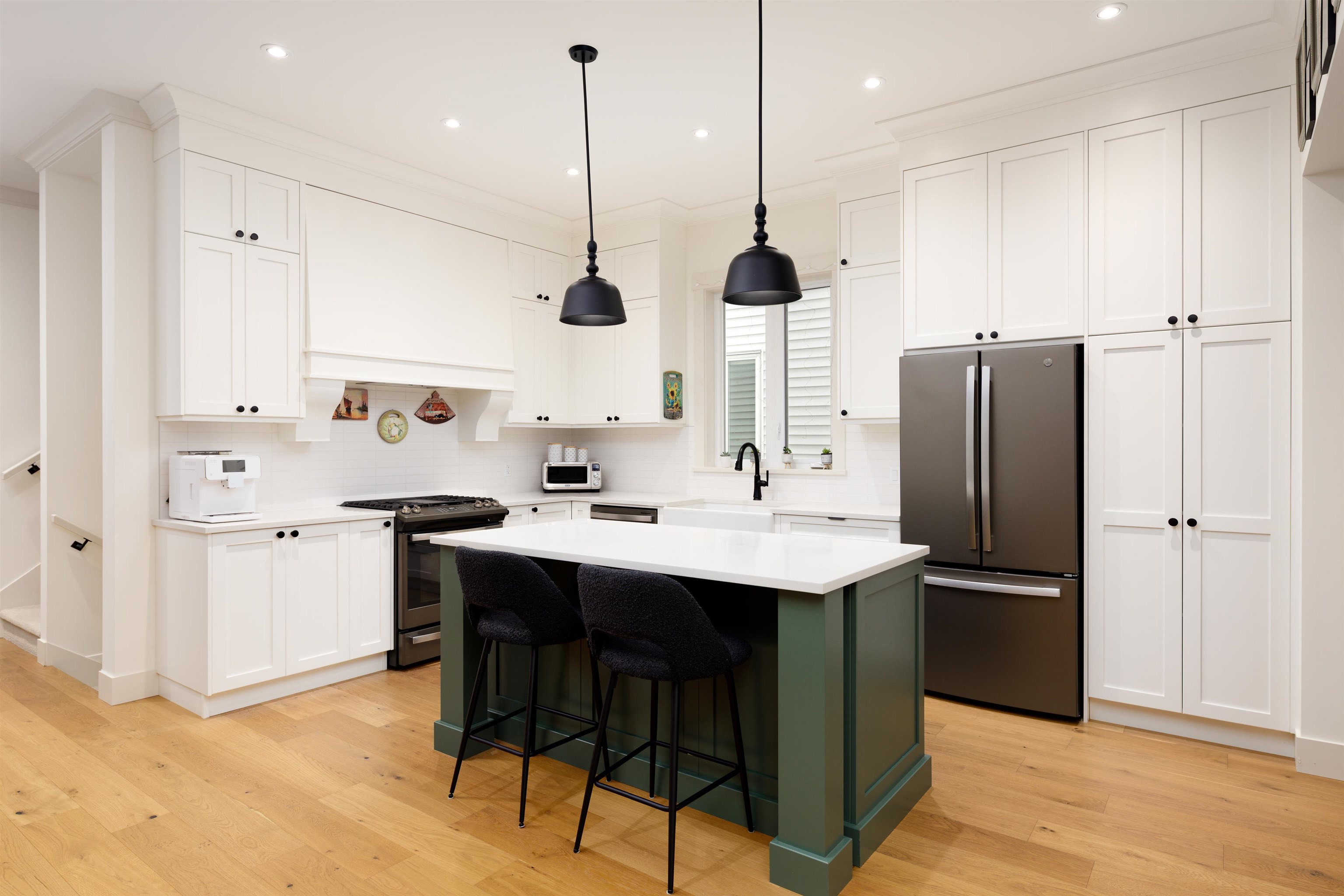 Modern and stylish, this well-built by Lanstone & Wesmont home features top-quality finishes and appliances. Air conditioned. Located on a corner lot, it offers extra space, added privacy, and extra windows. The open-concept main floor boasts 10' ceilings, oversized windows, crown moulding. Wide plank engineered hardwood throughout main and upper levels. Oversized gourmet kitchen with a large island. Cozy backayrd with grass, plants, flowers offers a concrete patio with BBQ gas outlet off the kitchen and li...