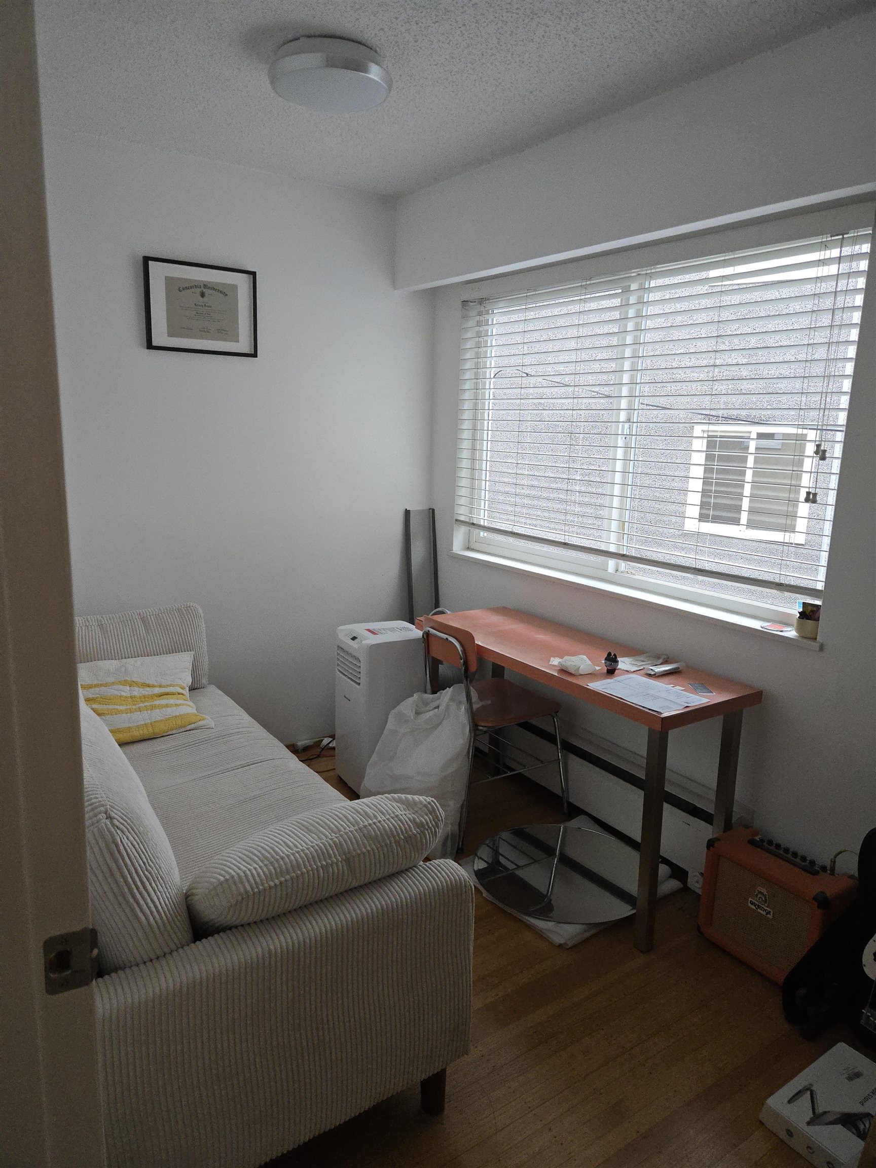 Bright corner 1 bedroom and den condo in Fairview South. Den could be a small second bedroom but no closet. Den is approximately 6'8" by 10'9". Suite was updated (kitchen, bathroom, oak floors, lighting) in 2016. Large windows give natural light. 2nd bedroom (no closet) works as office or child's room. 2 blocks from VGH, yet still quiet. Close to shops, parks, and restaurants-easy access to services and downtown transit. NO SMOKING, NO PETS. Please text messages only for questions and viewing requests.