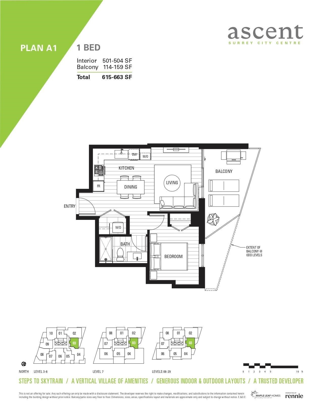 Your Chance to Own a Brand New Home in the Ascent Building at Surrey City Centre! This is your opportunity to own a stunning one-bedroom home in the highly sought-after Ascent building at Surrey City Centre! This home features a spacious 504 sq/ft interior, complemented by a large 159 sq/ft balcony offering beautiful views. Inside, you'll find modern finishes throughout, including air-conditioning for year-round comfort, stone countertops, and wide plank laminate flooring. The gourmet kitchen is equipped wi...