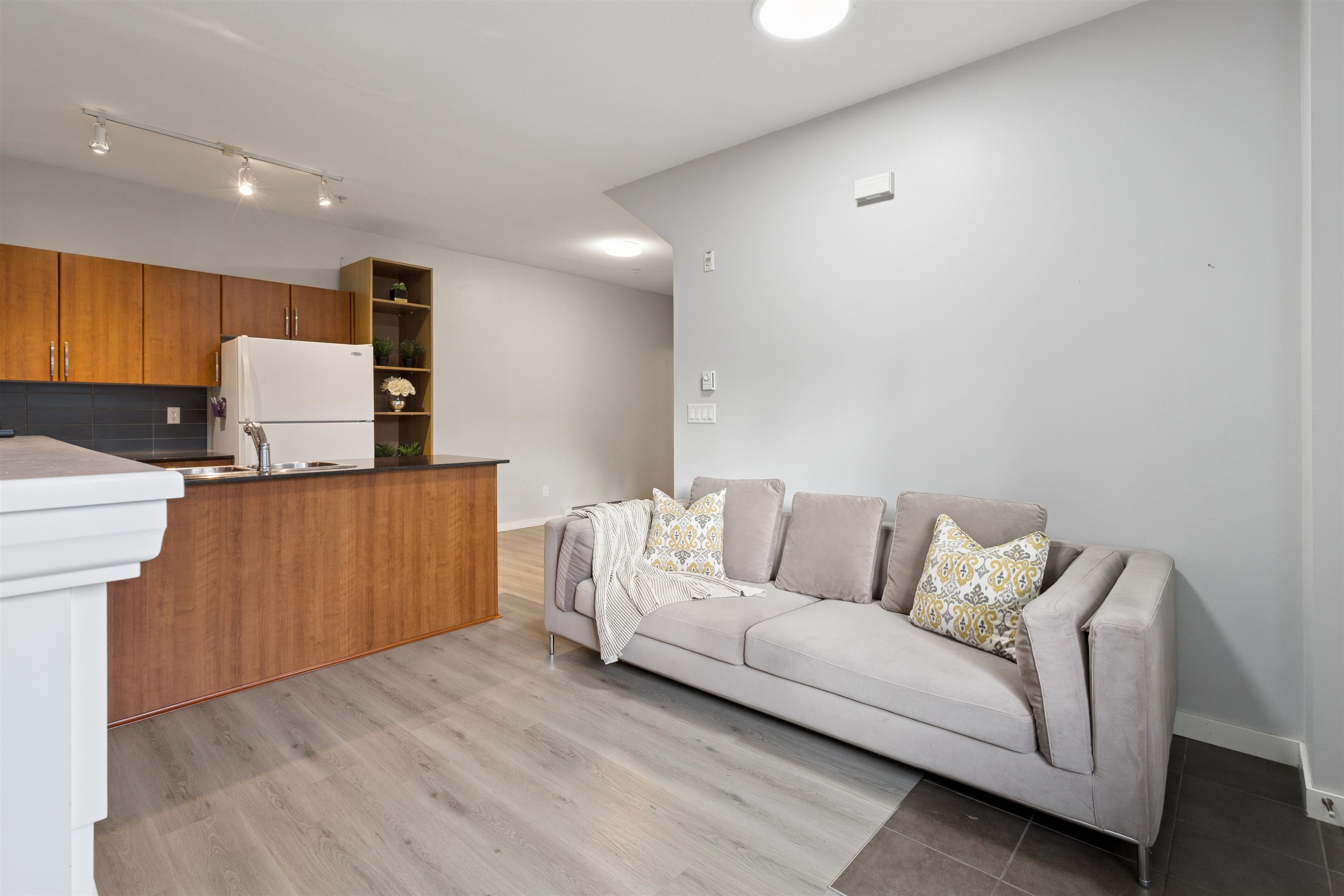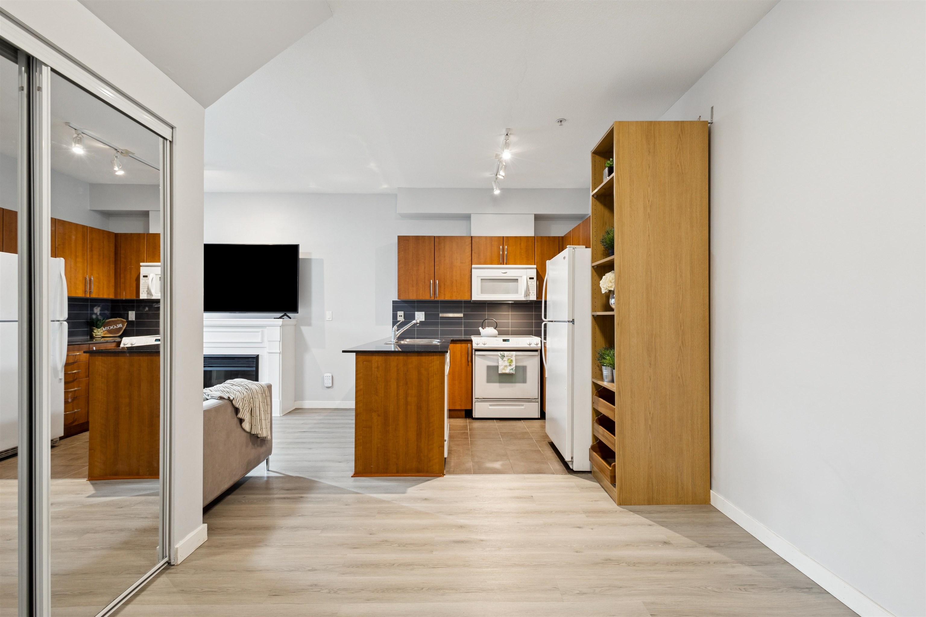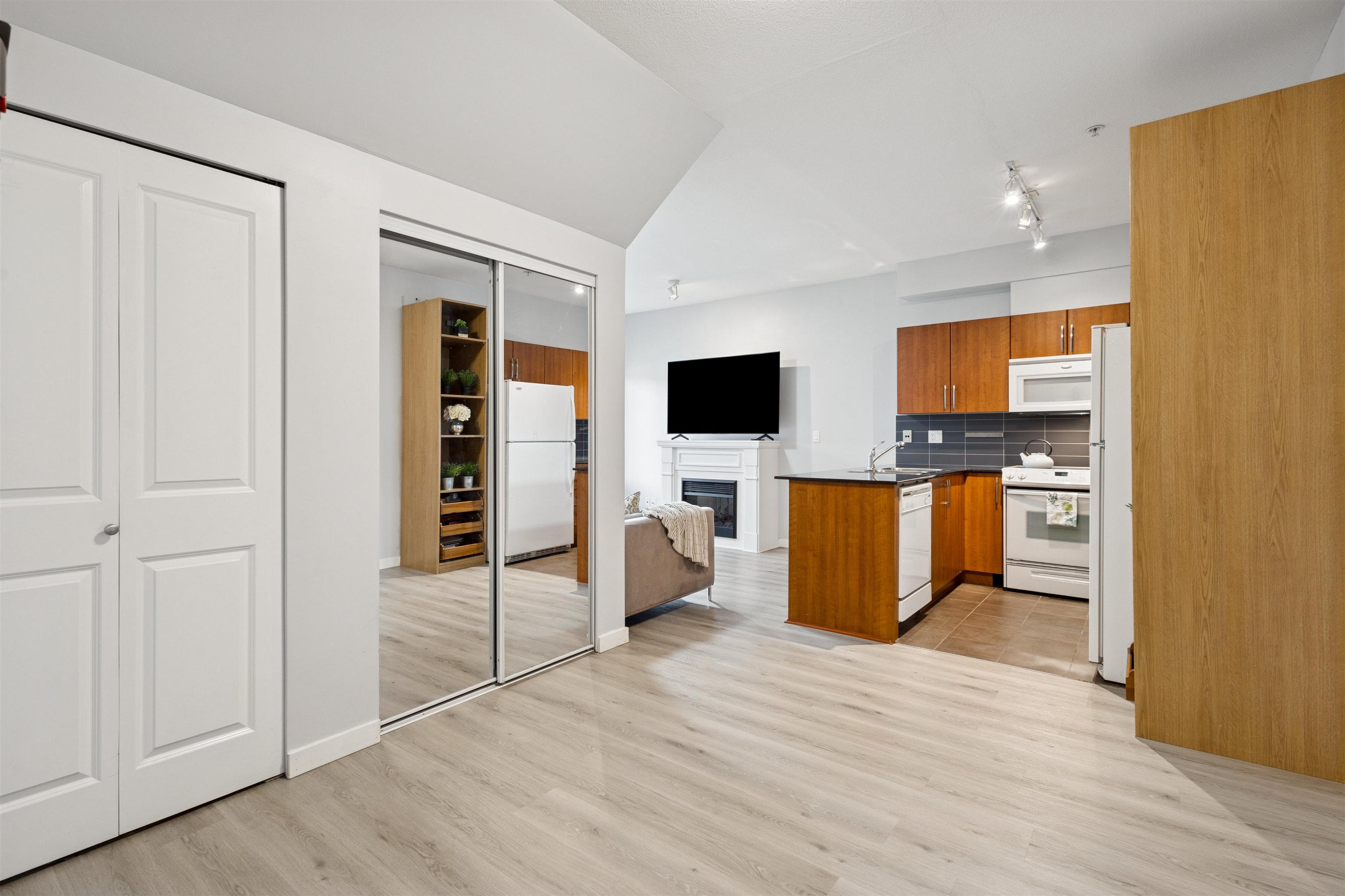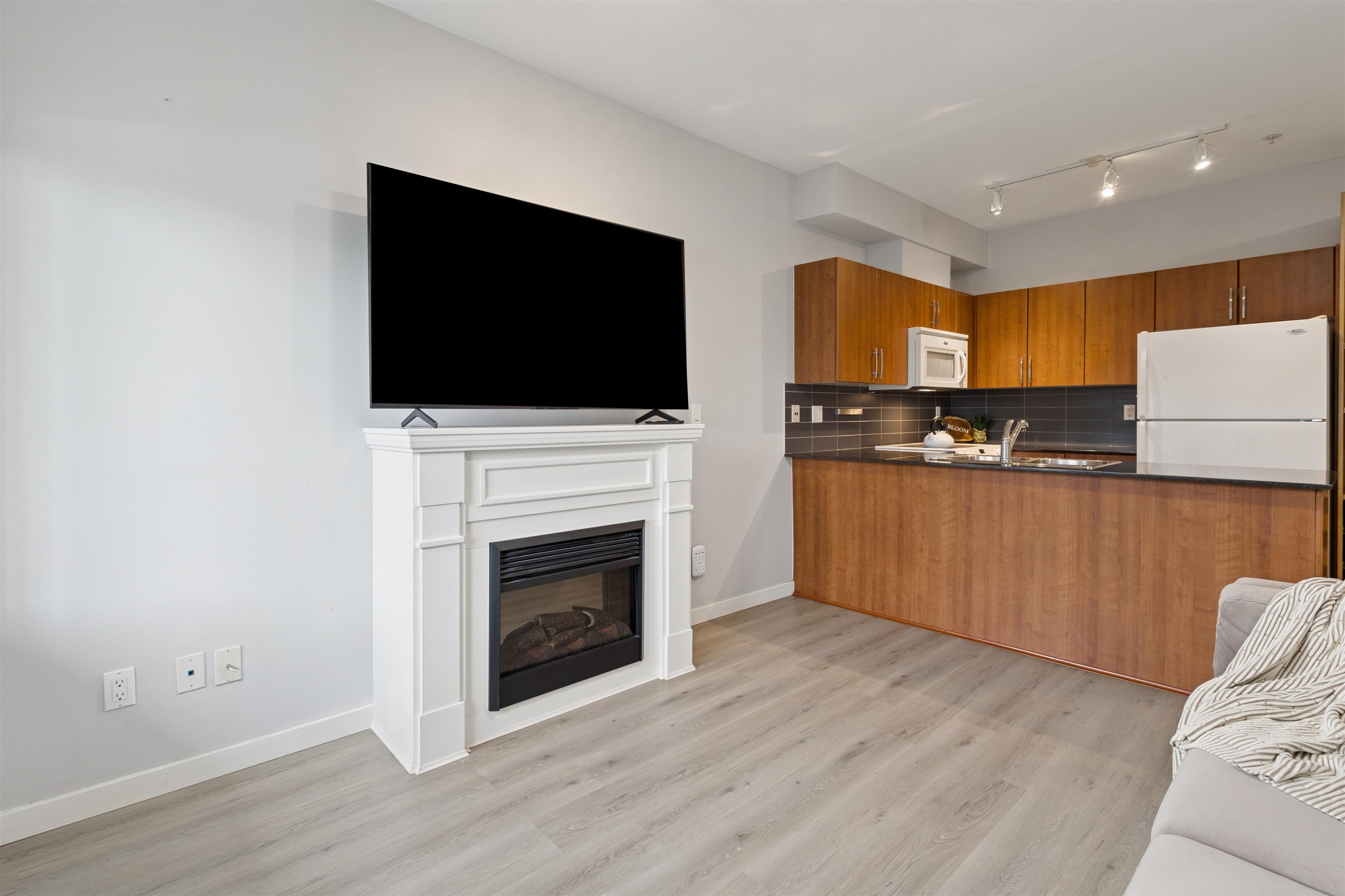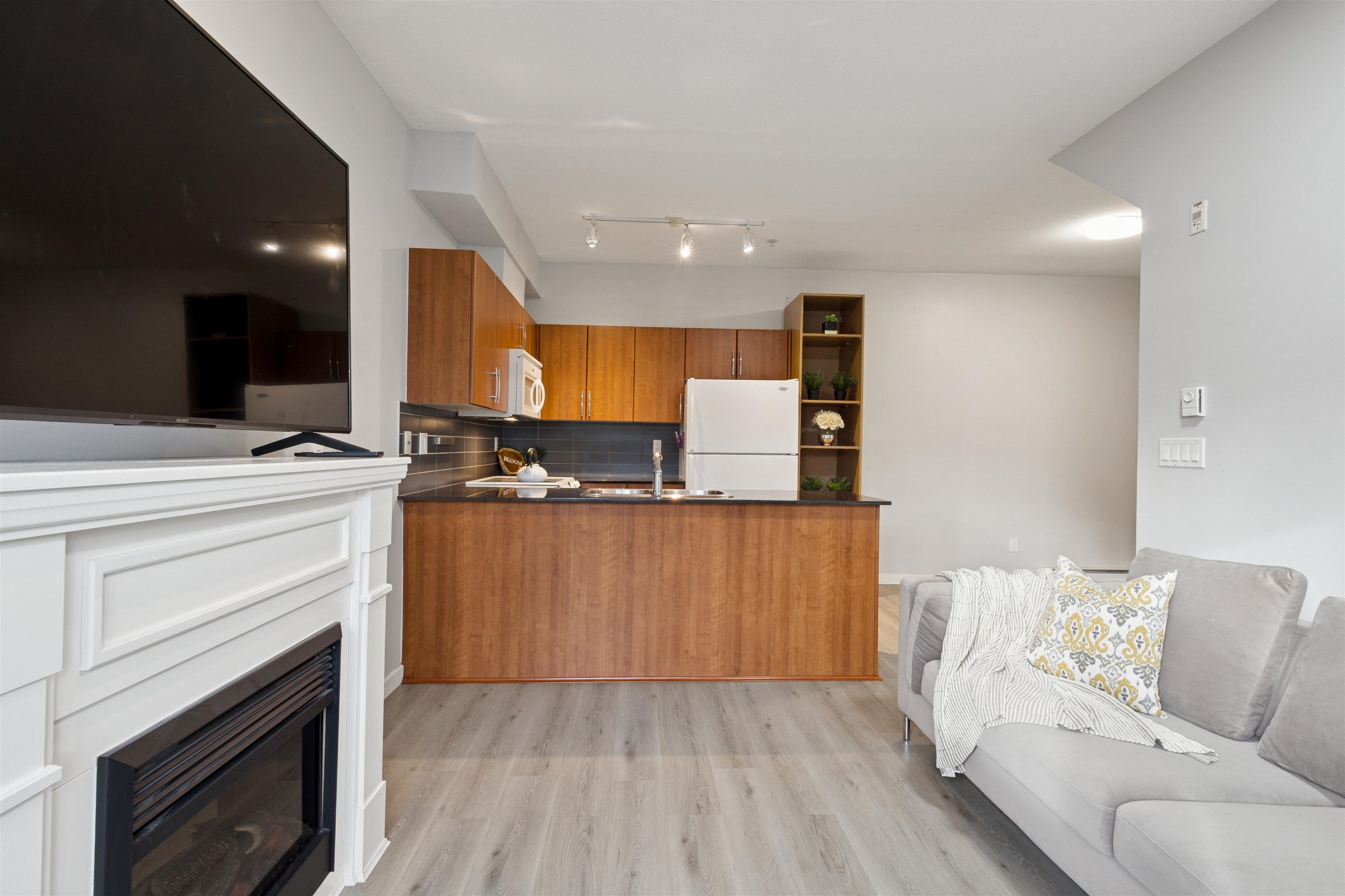 Rare opportunity! This beautiful ground-level 1 bedroom, 1 bathroom home is the only one of its kind in the complex and comes with an incredibly low maintenance fee in a well-run strata. Bright and south-facing, this cozy home features an inviting electric fireplace, a spacious kitchen with granite countertops, over-the-range microwave, and in-suite laundry. Enjoy the convenience of 2 parking stalls, 1 storage locker, and not one but 2 private patios including a sliding door from the primary bedroom leadin...
