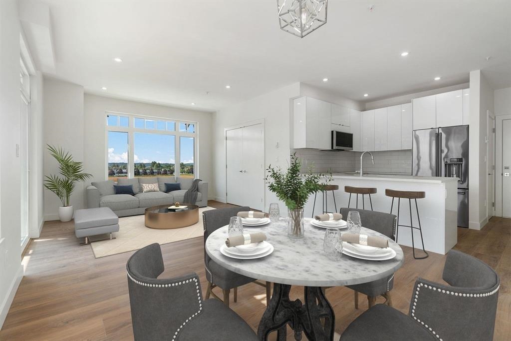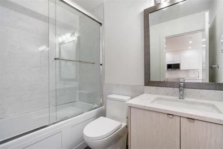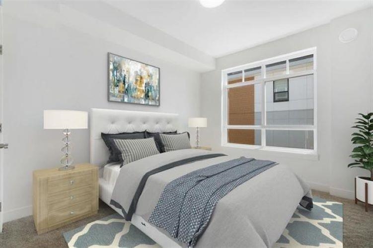 Spacious boutique homes on the greenbelt! This LARGE bright 781 sf South East corner 2 Bed/1 Bath unit offers contemporary living space with a fresh and inviting atmosphere, perfect for those seeking a stylish and convenient lifestyle. The thoughtfully designed interiors offer high-quality finishes, an open concept floor plan, 9ft ceilings, bright white kitchen with soft close cabinetry, quartz counter tops, premium S/S appliances, large island for entertaining, closet organizers, zebra privacy roller blind...