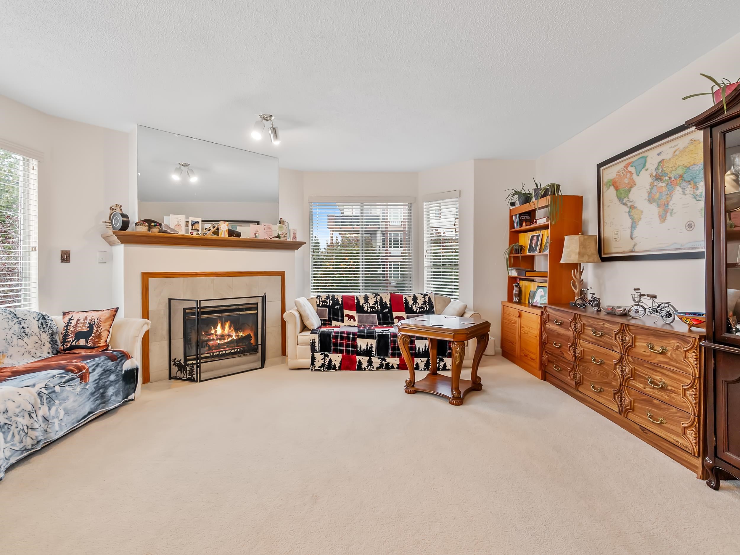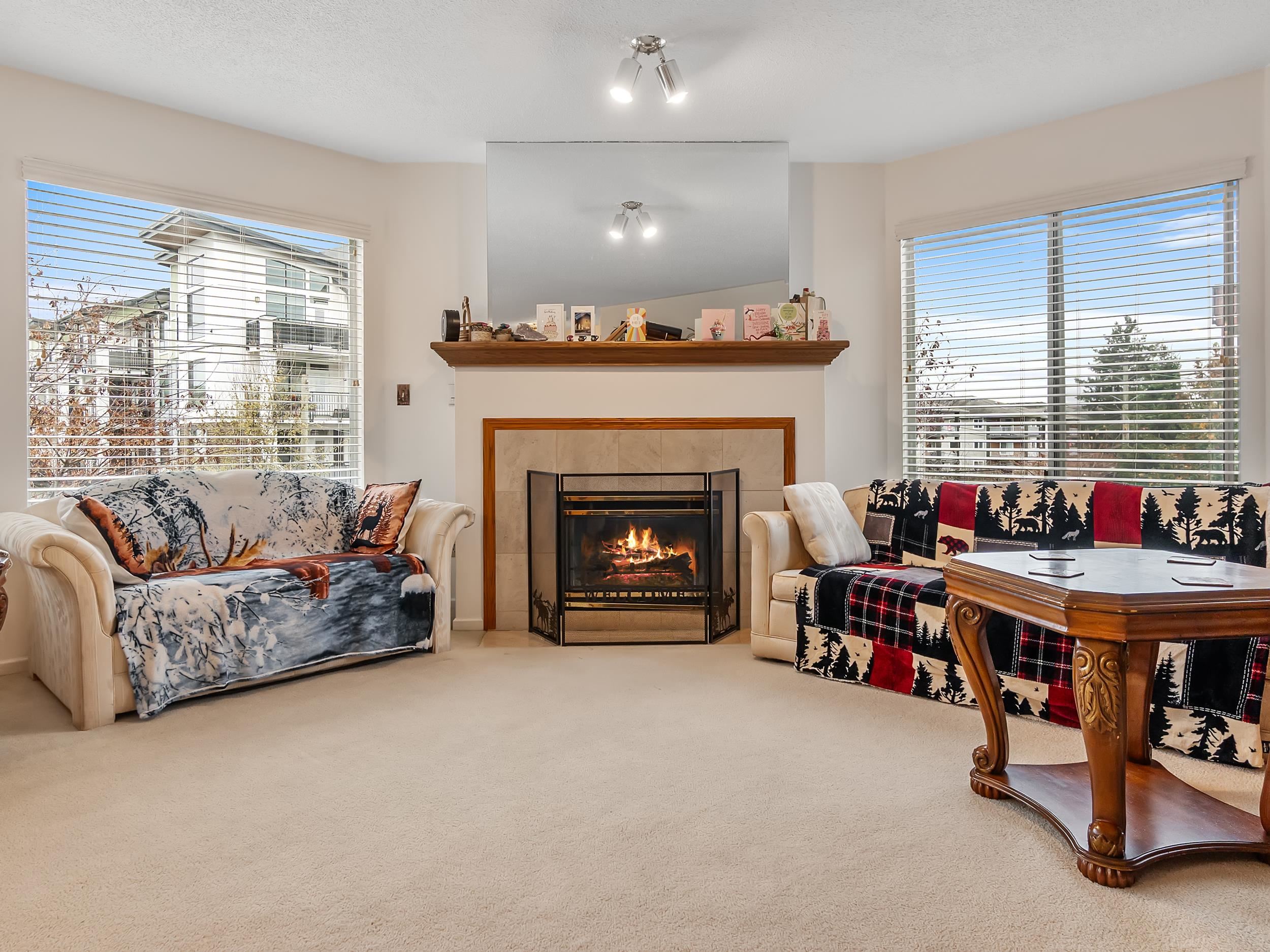 Experience elevated living in this pristine 1,244 sq ft 2 bed 2 bath CORNER HOME offering exceptional comfort and brightness throughout. The kitchen showcases solid oak cabinets, brand new STAINLESS STEEL APPLIANCES, and a sunny breakfast nook that flows into spacious living and dining areas wrapped in panoramic windows. Enjoy the warmth of a gas fireplace with GAS INCLUDED. Added value comes from a newer walk-in shower, updated H20 tank, dishwasher, and NEW WASHER & DRYER for effortless move-in readiness. ...