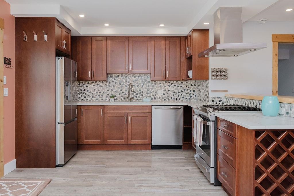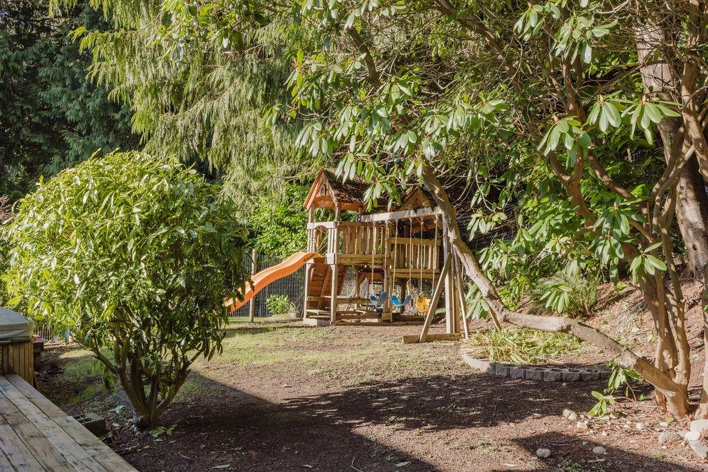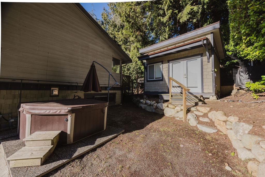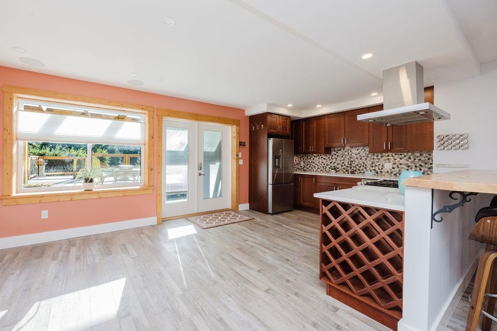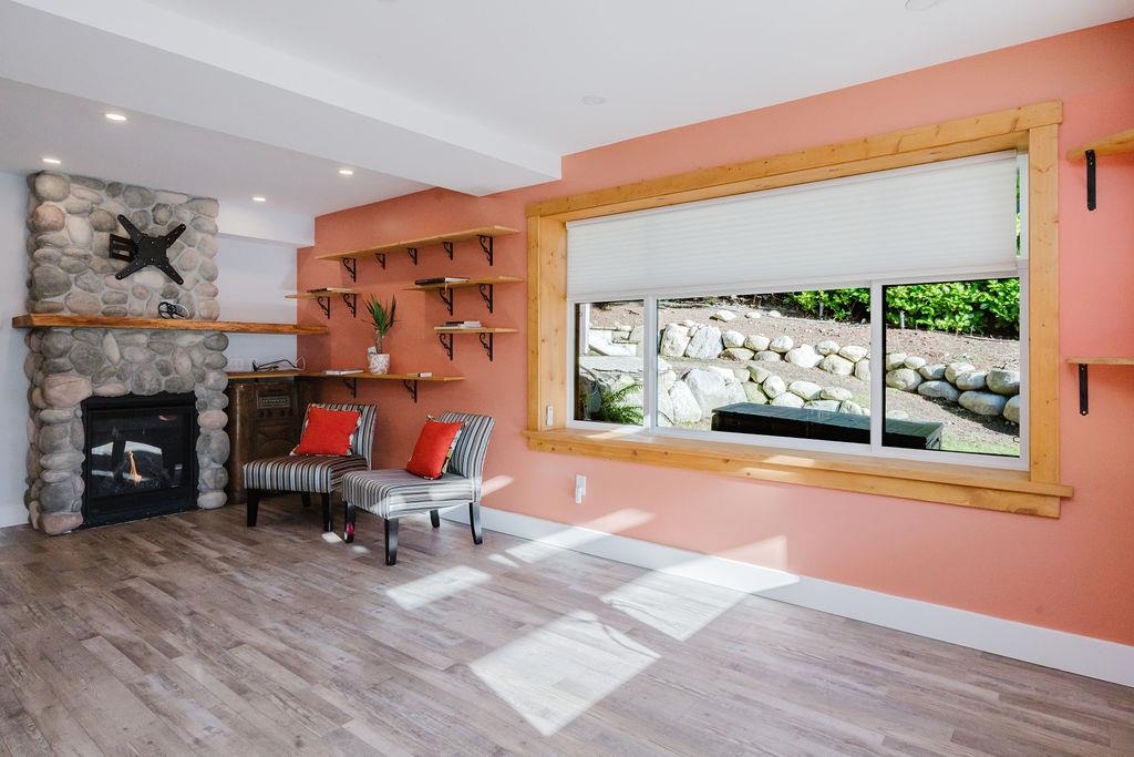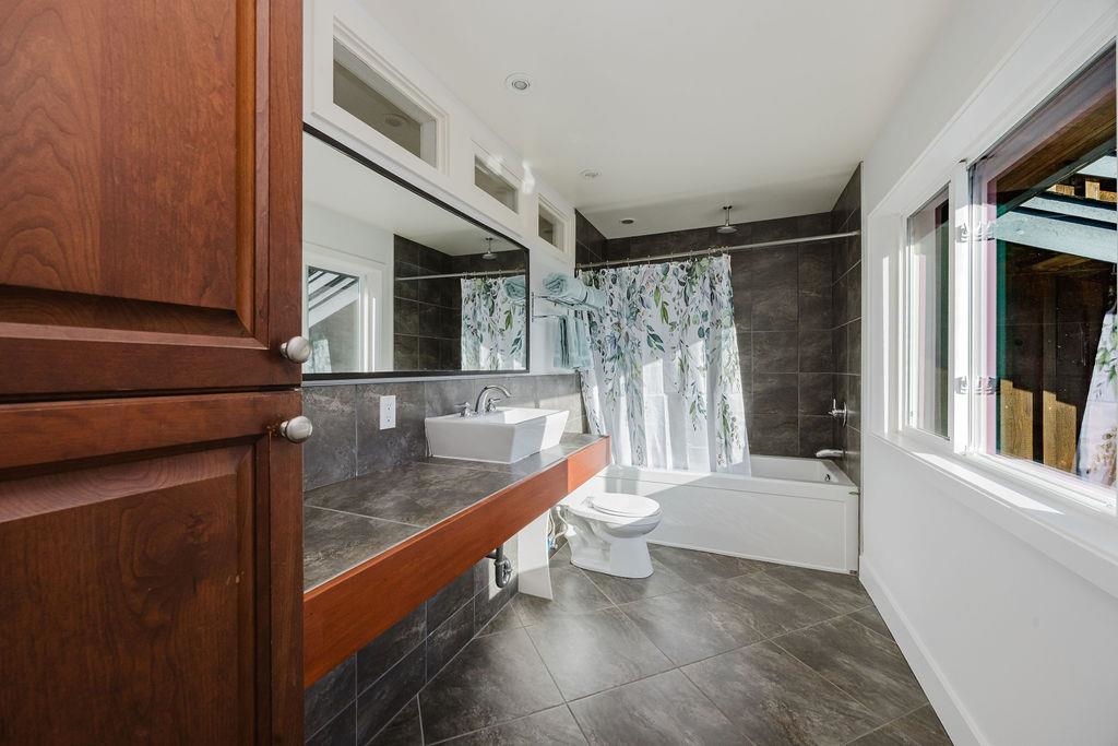 Large Roberts Creek family home with 4 bedrooms, spacious one bedroom suite and detached studio, tucked away on a quiet cul-de-sac, minutes to the beach. With over $200k in updates, this home offers 4 spacious bedrooms, 3 bathrooms, new paint throughout, beautiful refurbished hardwood floors, gas fireplace, hot tub and a primary suite with large, completely private sundeck. The lower level includes a secondary family room plus bonus room with separate exterior access, plumbed and wired for a commercial kitc...