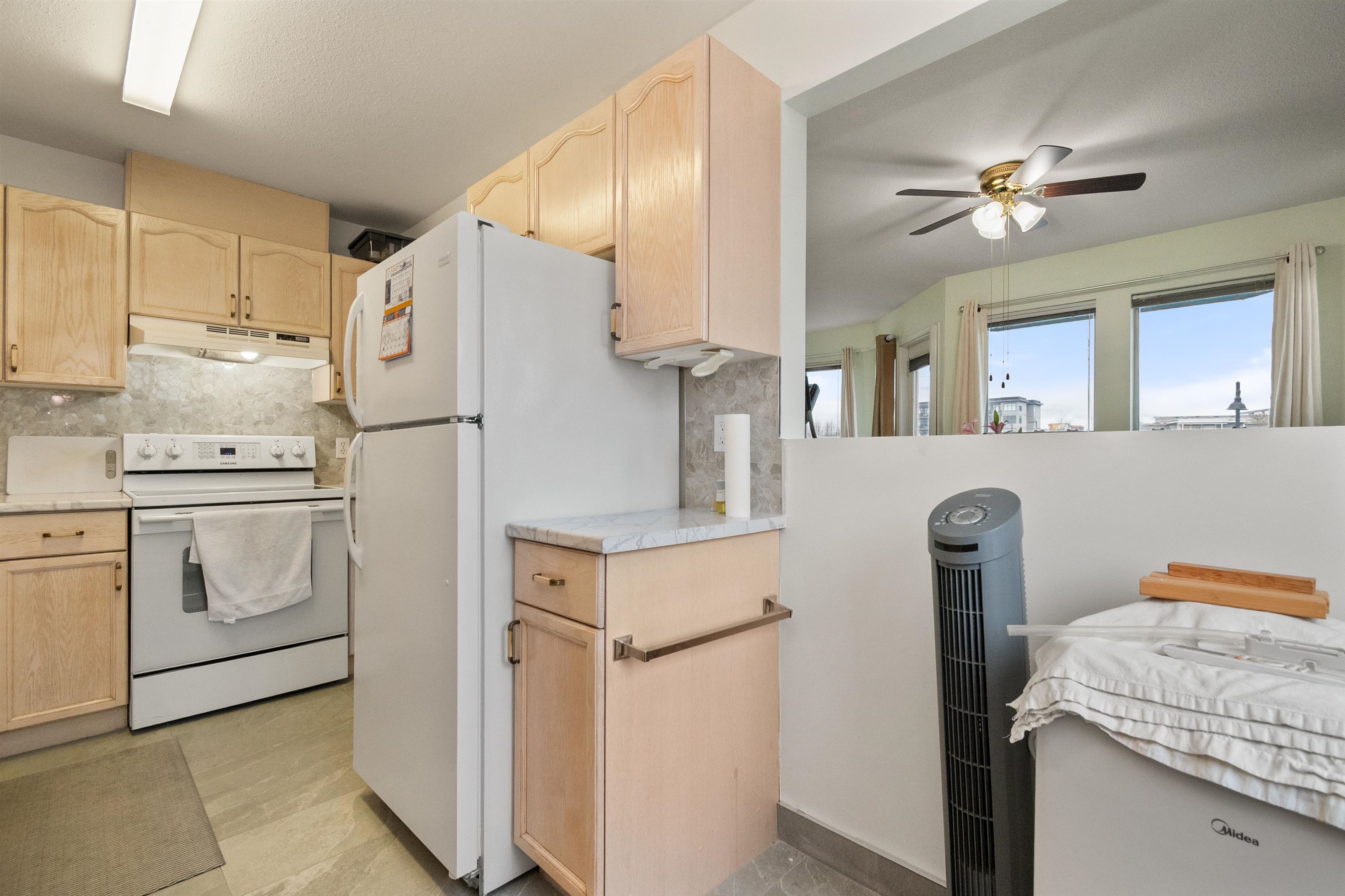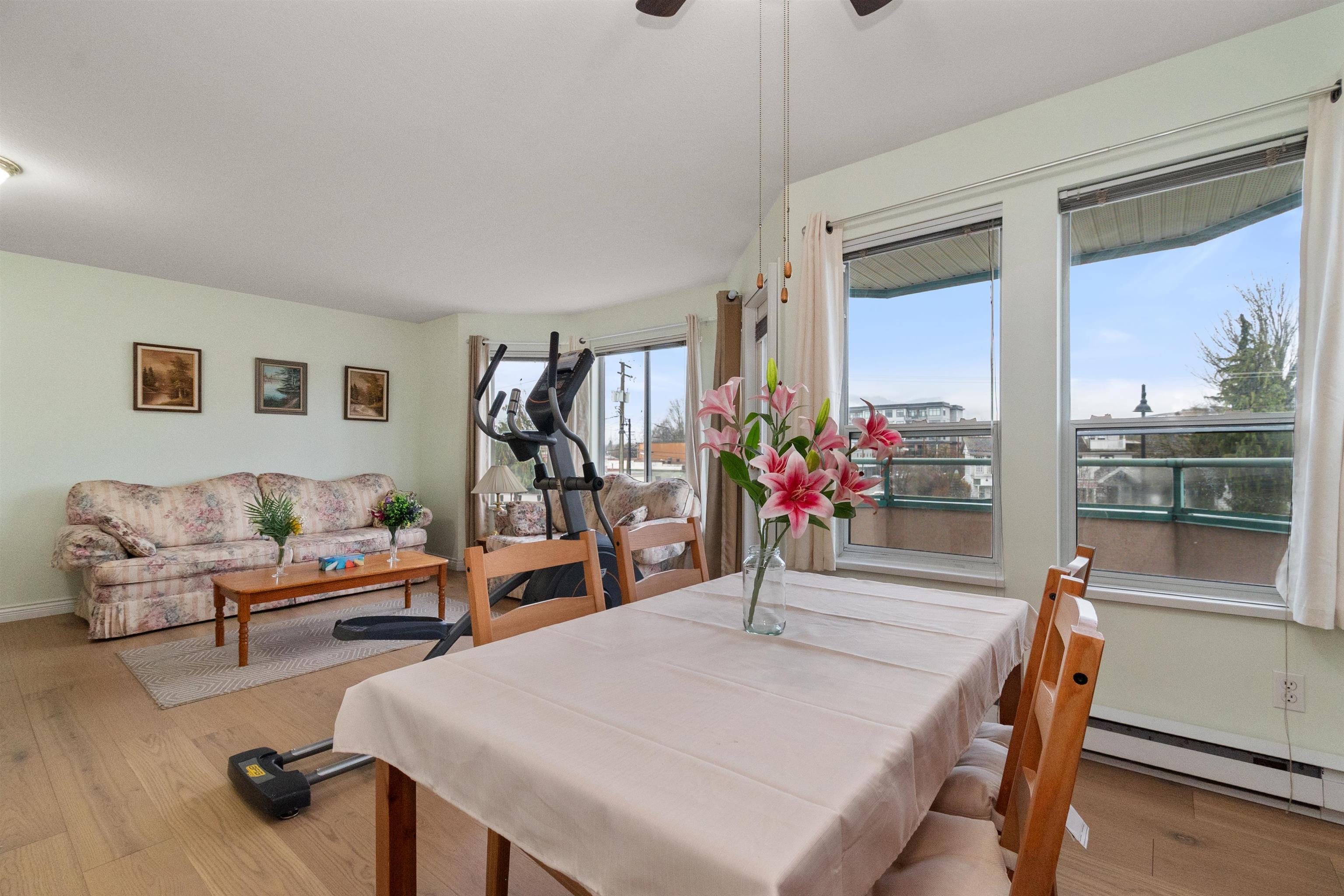 Bright, modern, and centrally located, this NE corner unit offers over 1,000 sq ft of well designed living space with 2 bedrooms and 2 full bathrooms. Enjoy beautiful mountain views from every room and kitchen with plenty of natural light. Covered balcony provides a cozy spot for coffee with Mount Cheam in the background. Recent updates include new engineered hardwood floors/porcelain tile floors throughout, kitchen counter with backsplash, fresh paint and a custom ensuite shower. A pet friendly building, t...