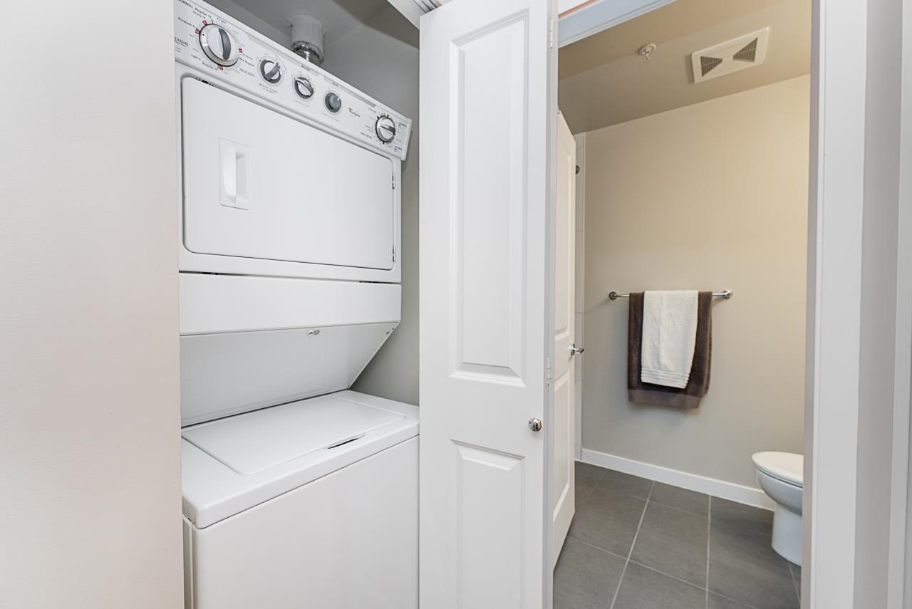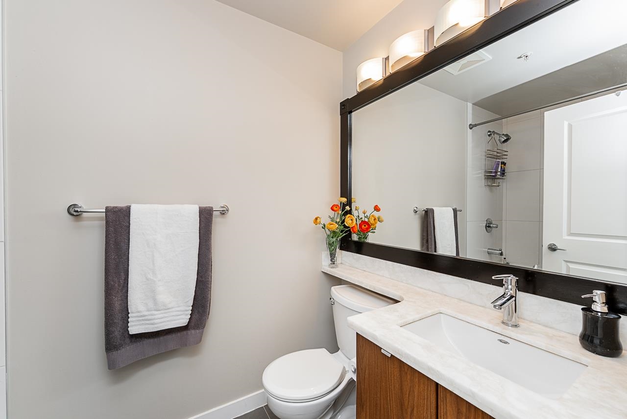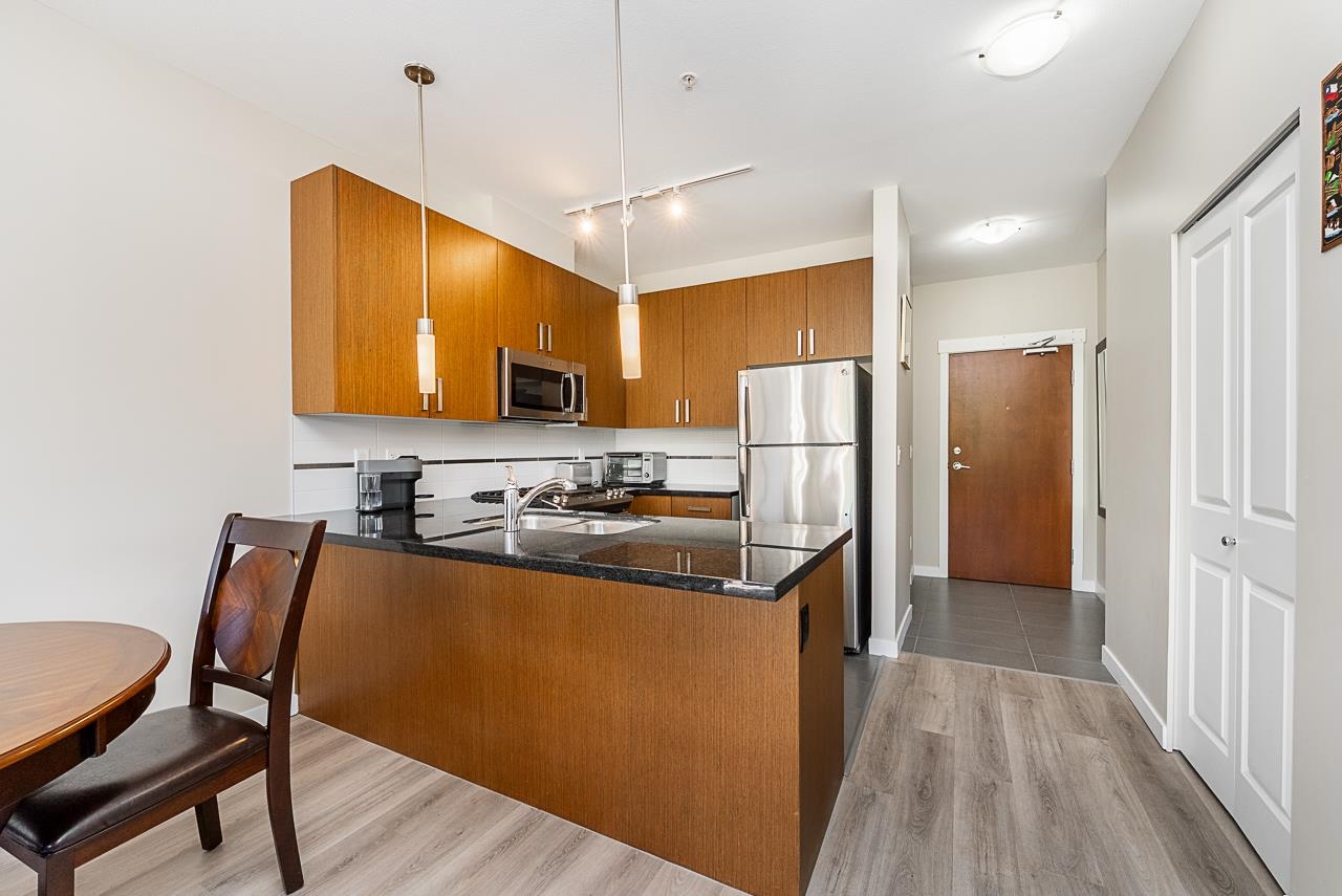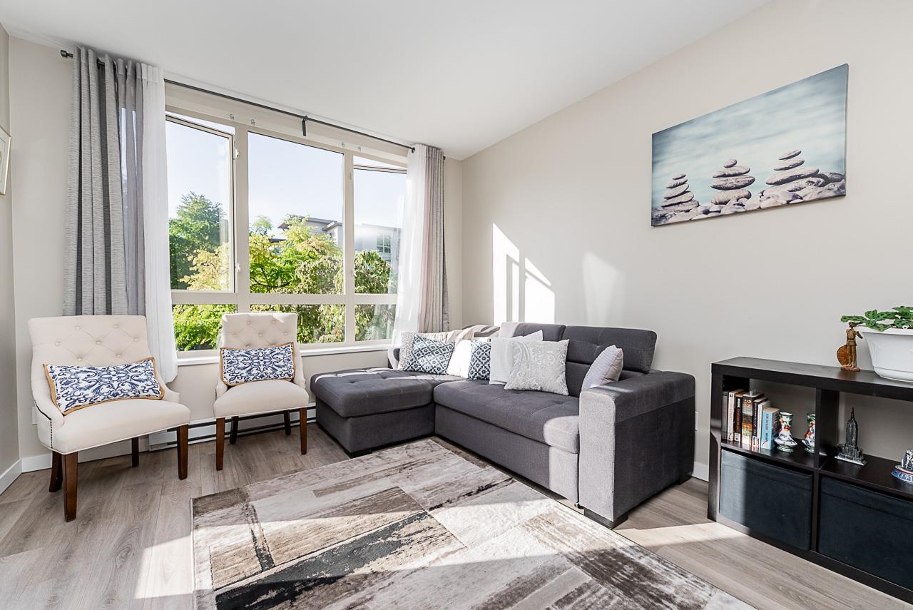 You will love living at THE MORGAN! Enjoy this light filled south facing apartment with spacious and open floorplan, 9' ceilings and wonderful view of the quiet courtyard with trees and flowerbeds. Well laid out kitchen shows off with granite countertops, gas stove, stainless steel appliances, shaker style cabinets with plenty of storage and full sized in-suite laundry. Large and bright bedroom is facing the courtyard for additional privacy. Den can be used as additional office space or even converted into ...