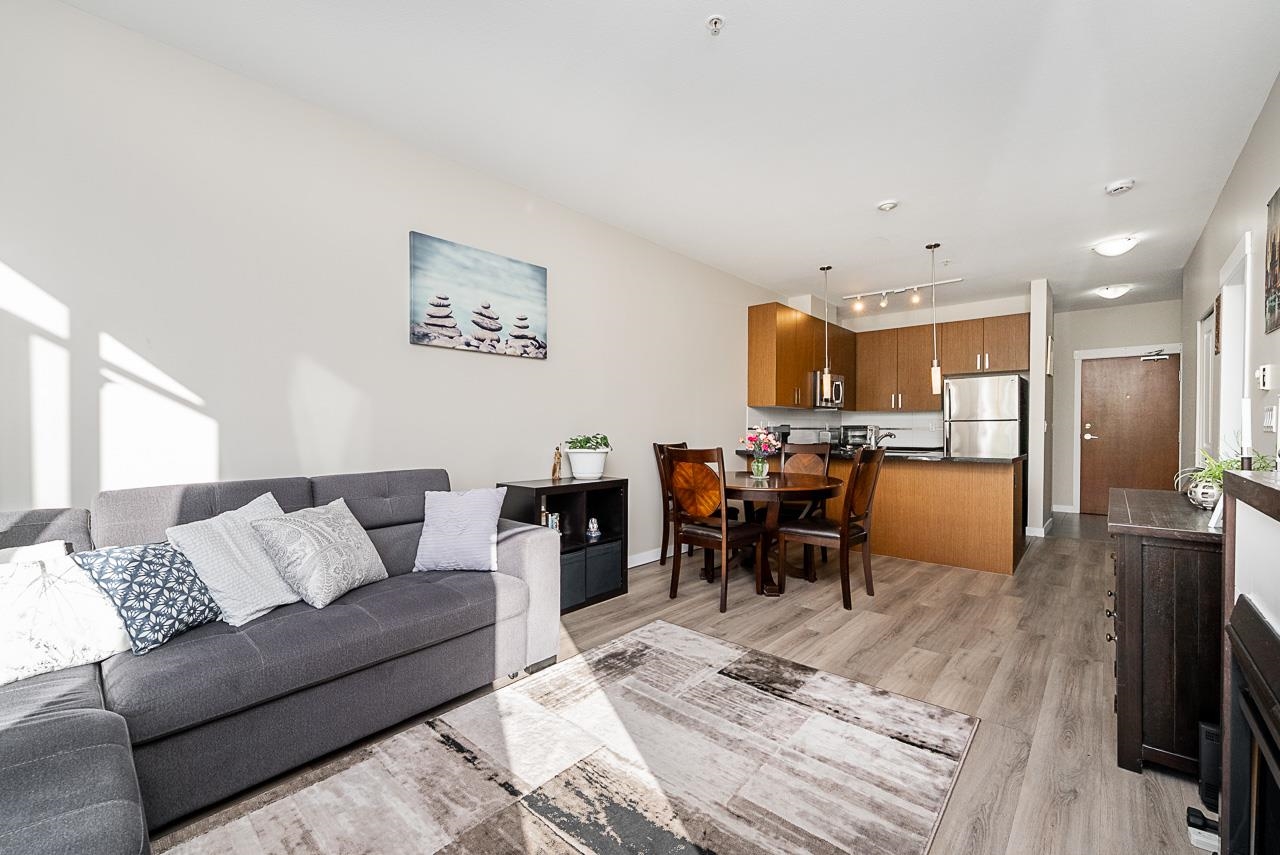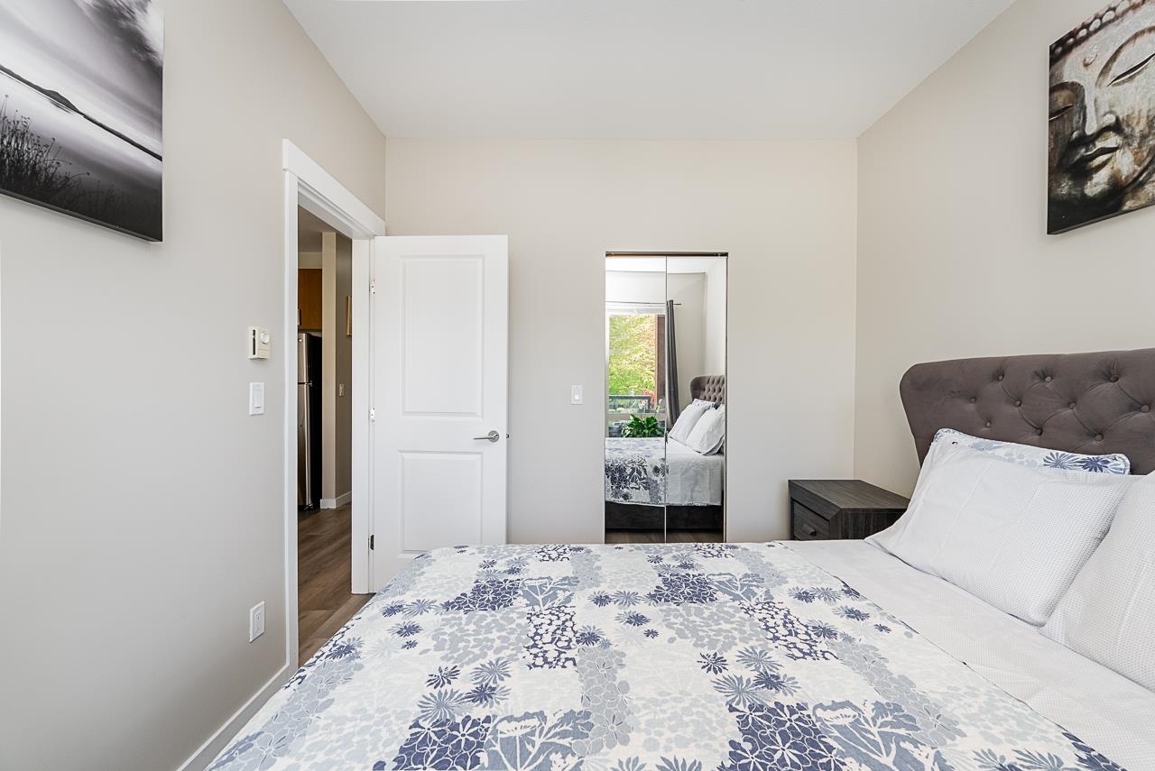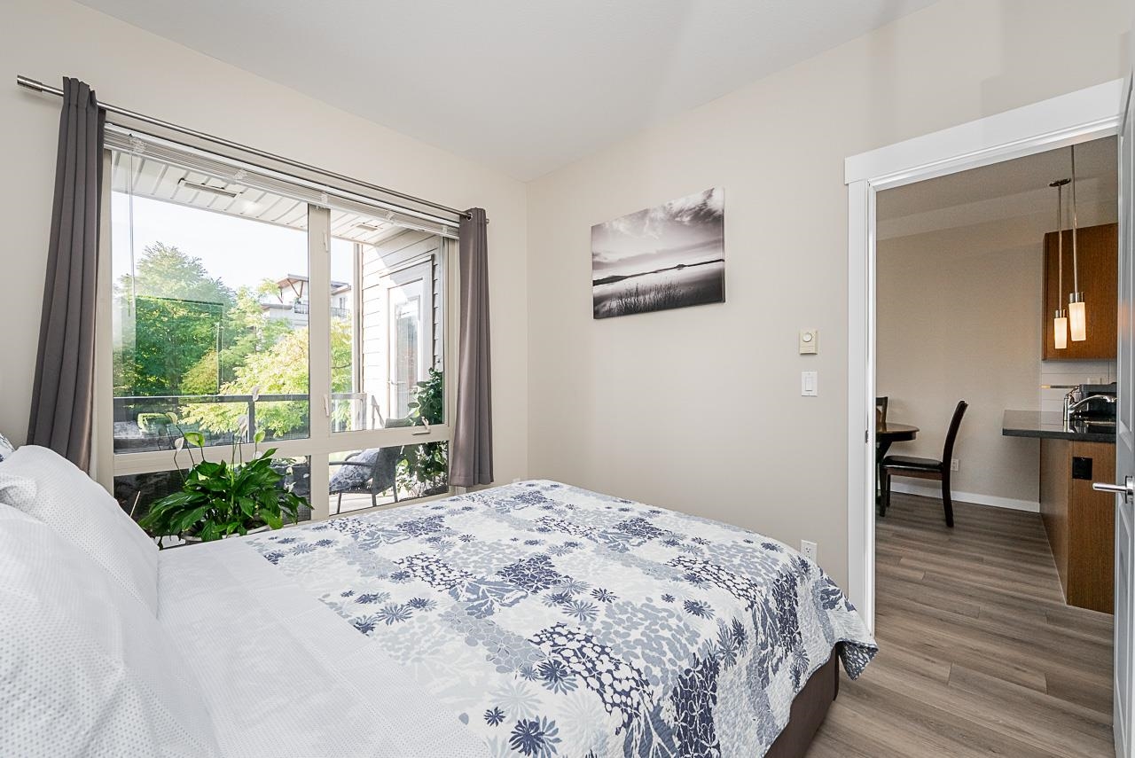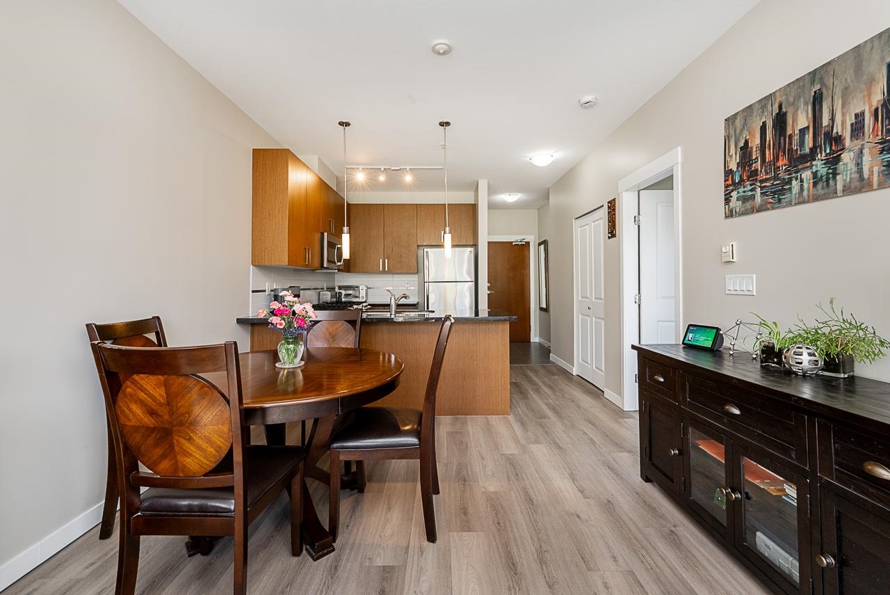 You will love living at THE MORGAN! Enjoy this light filled south facing apartment with spacious and open floorplan, 9' ceilings and wonderful view of the quiet courtyard with trees and flowerbeds. Well laid out kitchen shows off with granite countertops, gas stove, stainless steel appliances, shaker style cabinets with plenty of storage and full sized in-suite laundry. Large and bright bedroom is facing the courtyard for additional privacy. Den can be used as additional office space or even converted into ...