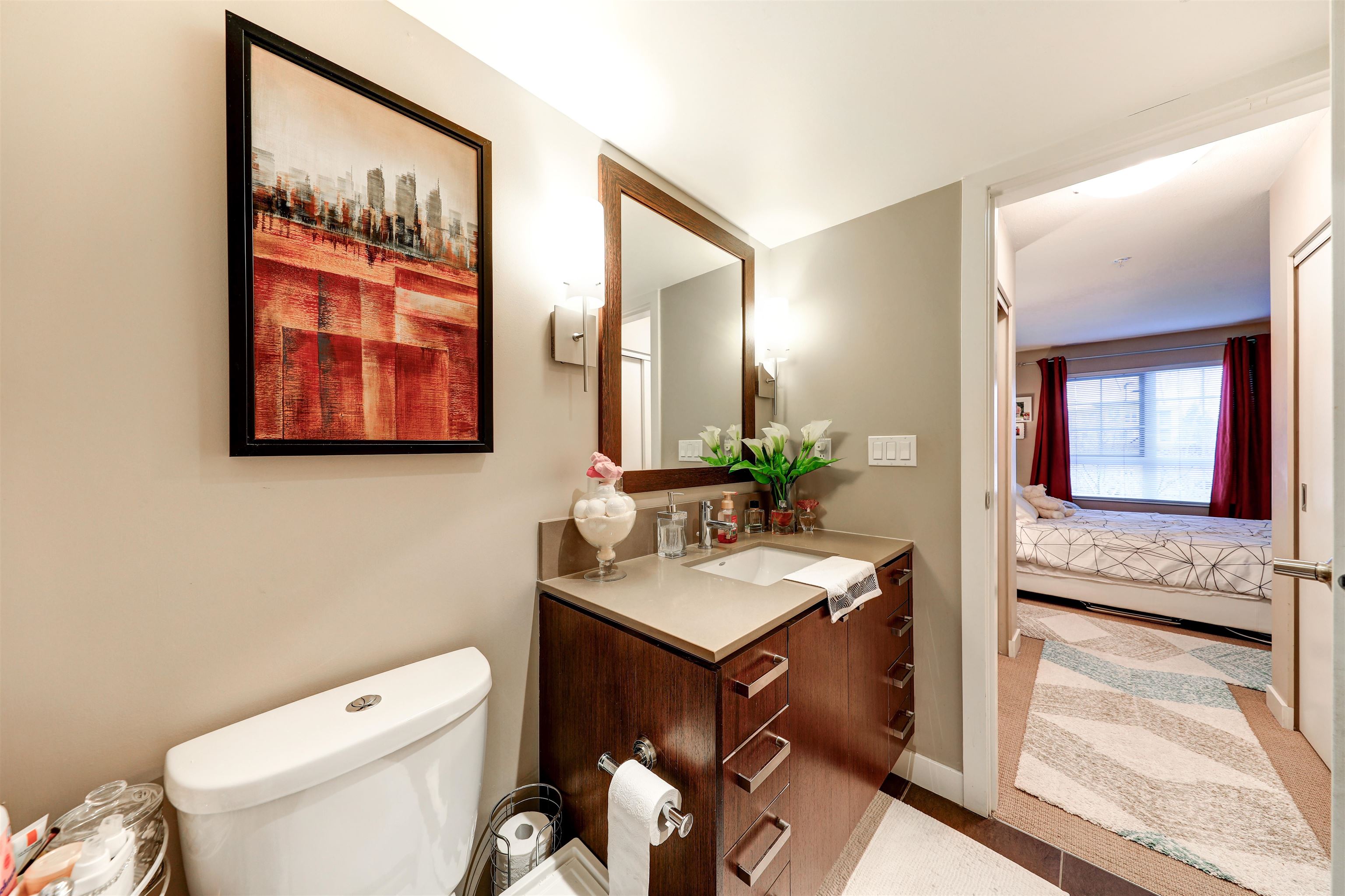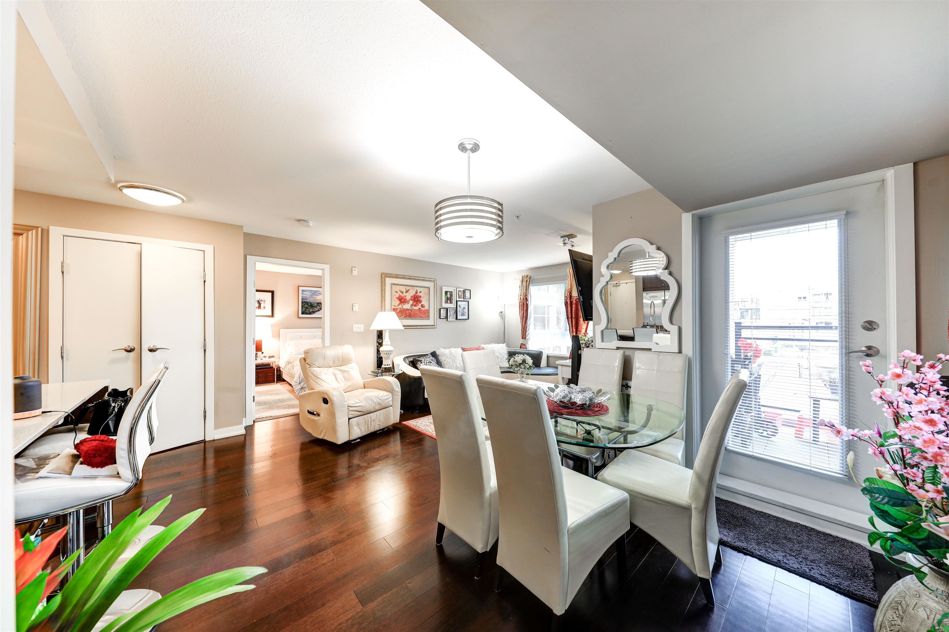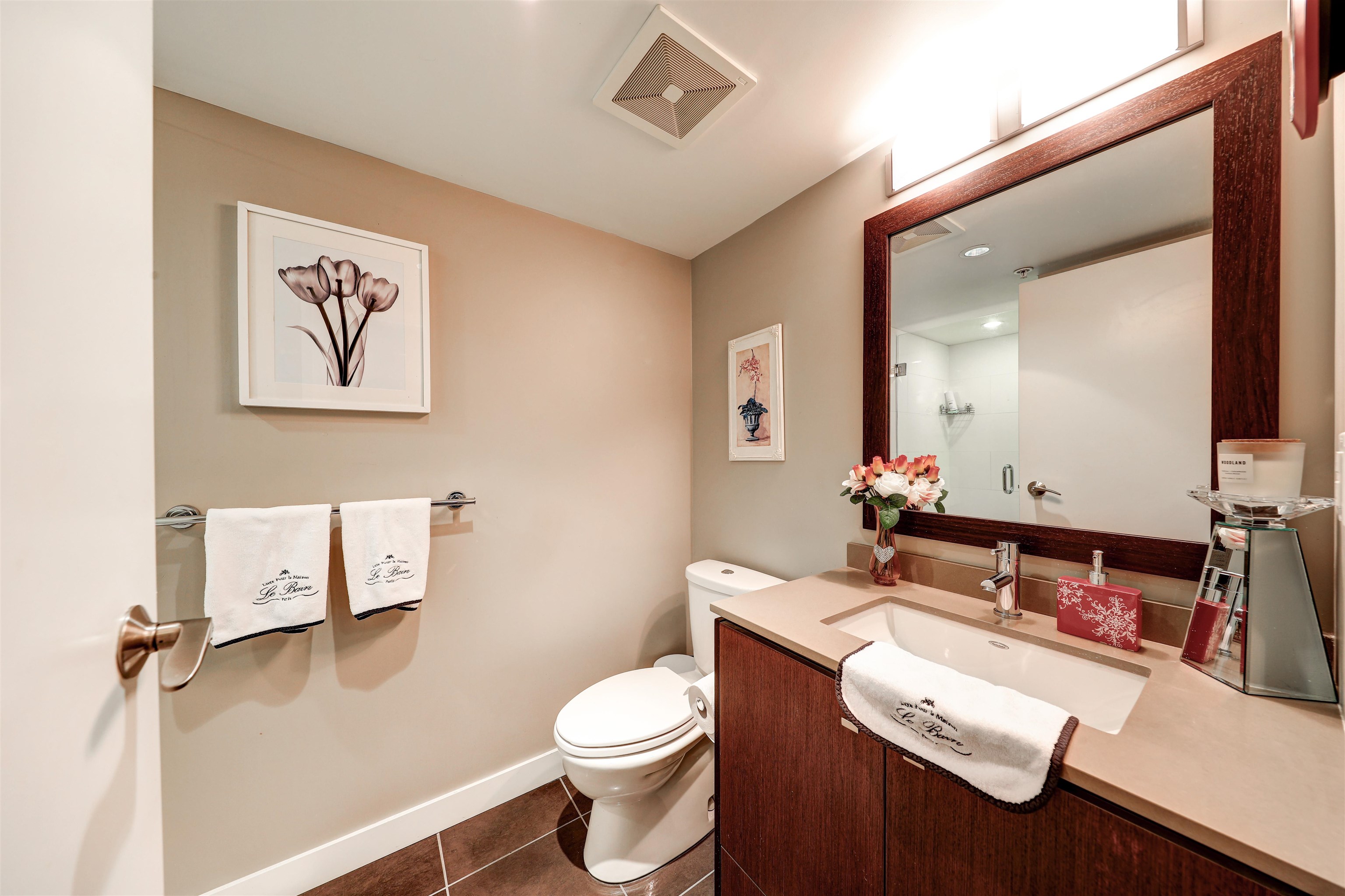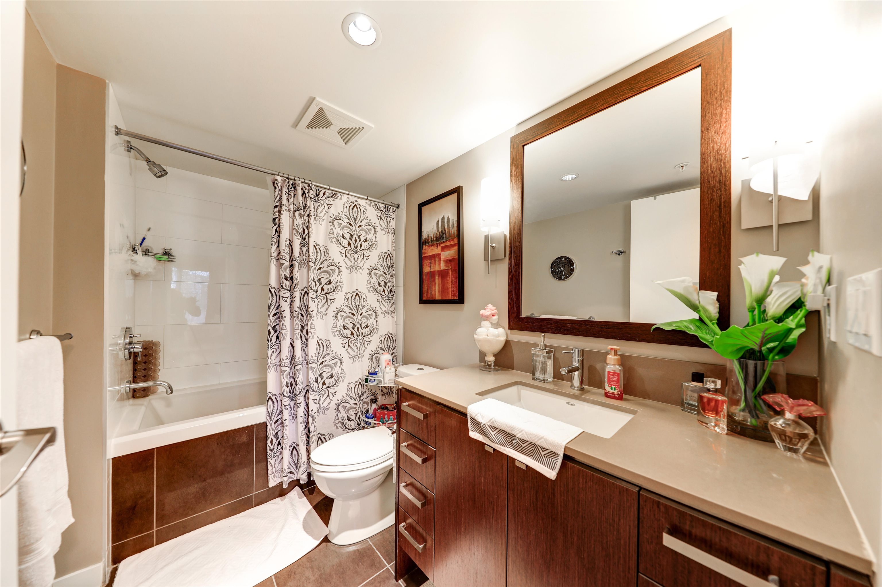 Private corner unit! Facing South east and North east. This unit boasts a functional layout, gourmet kitchen with high end s/s appliances, Caesar stone countertops, walnut kitchen cabinetry, spa inspired bathrooms with luxurious soaker tub, shower, natural gas cooktop, hardwood floor, porcelain tiles, spacious covered wrap-around balcony where you can enjoy your gatherings for BBQ, overlooking the courtyard garden. Live directly above High Street's vibrant shops, cafés, spas, and major retailers like Save-O...