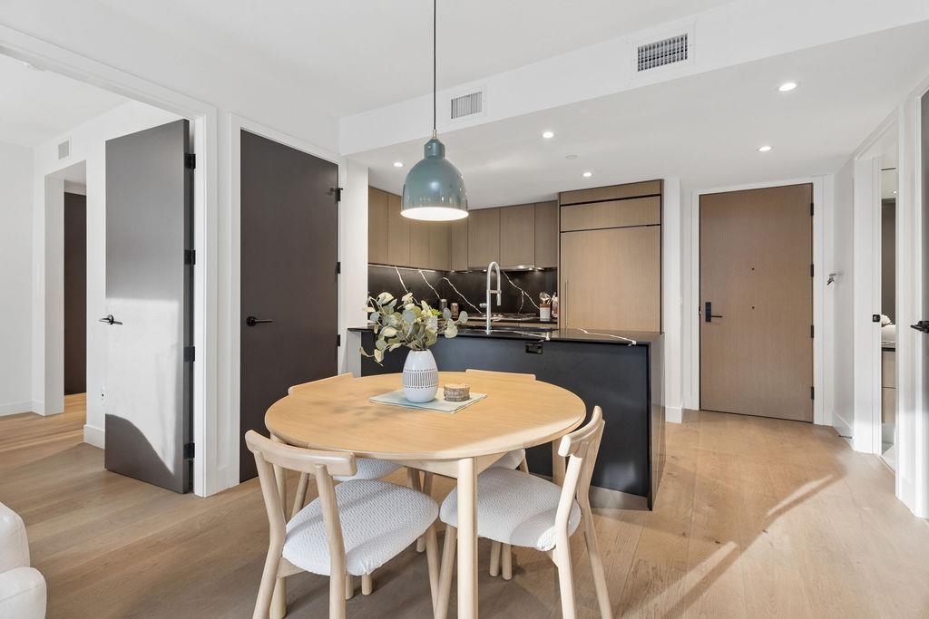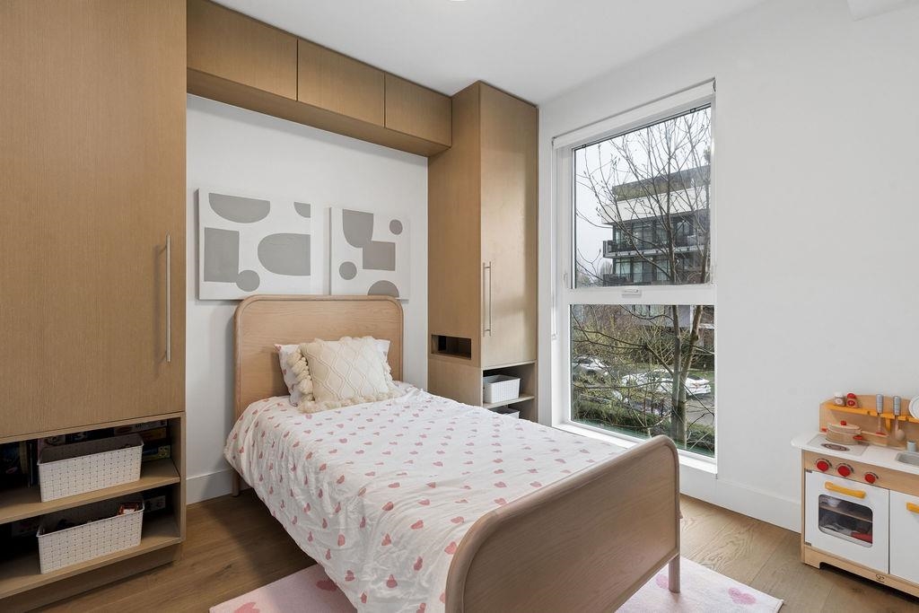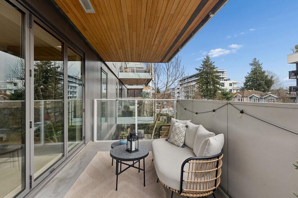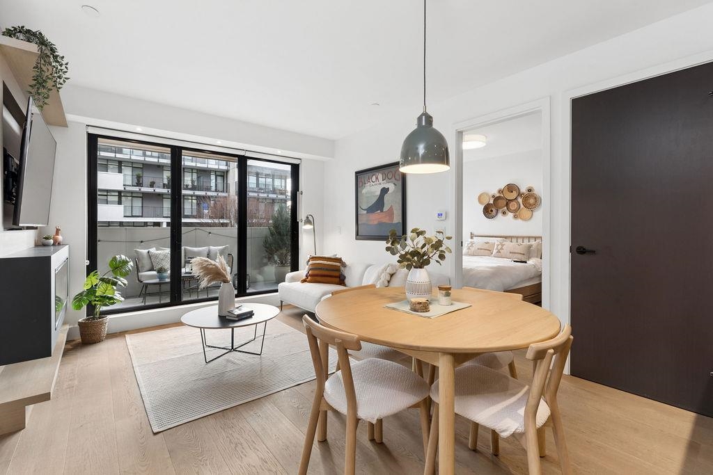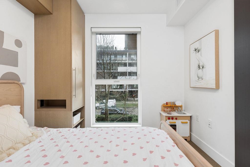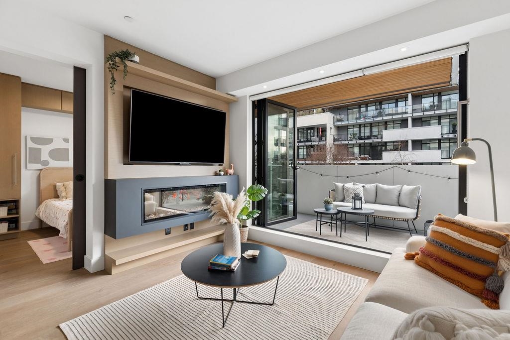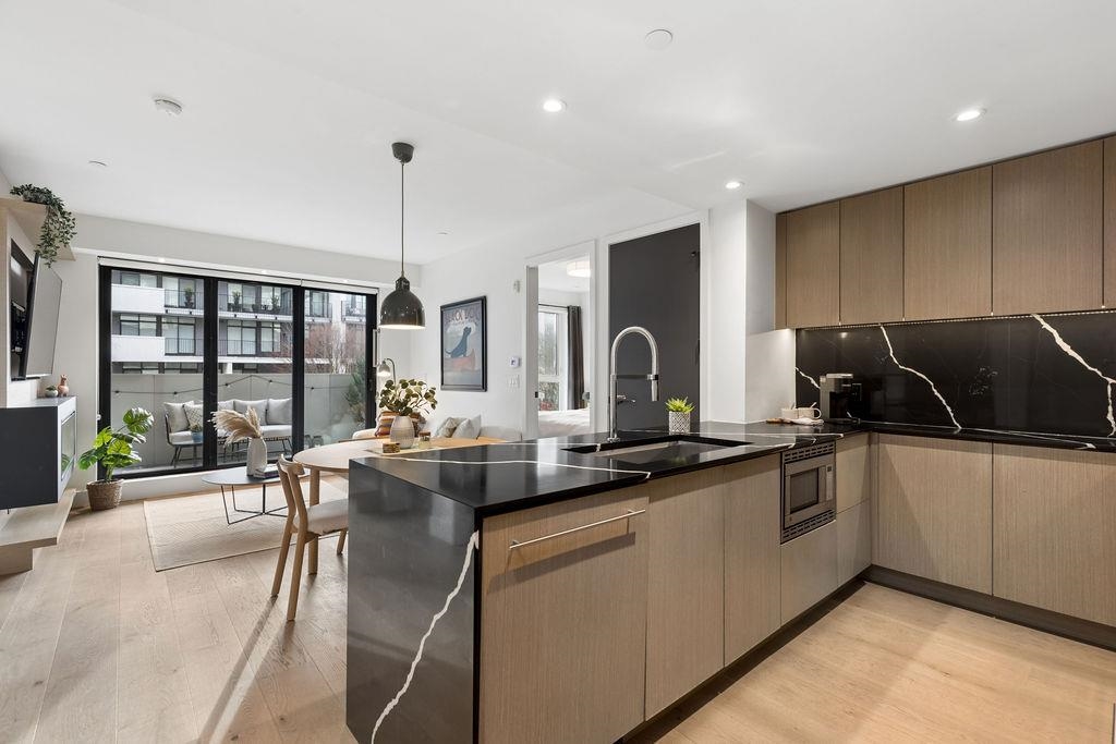 Welcome to this BRIGHT & REFINED 2-BED + DEN, 2-bath home near Riley Park in SHIFT by Aragon. Light-filled open concept layout w/ premium finishes, expansive windows & OVERSIZE BALCONY & AIR CONDITIONING. Chef-inspired kitchen w/ MONOGRAM APPLIANCES, sleek cabinetry, quartz counters, oversized island & counter seating. High quality engineered wood floors & CUSTOM MILLWORK throughout w/ ample storage. Seamlessly extend your living space w/ ACCORDION GLASS PATIO DOORS, opening to your PRIVATE COVERED BALCONY....