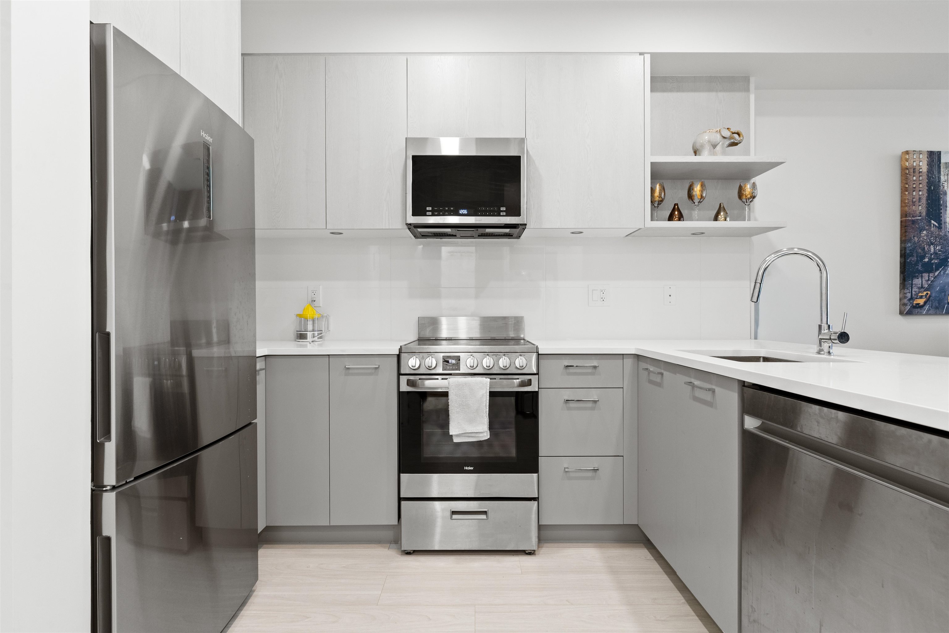 Welcome to Q5 at Whalley District! This bright, modern & over 600 sq ft 1-bedroom, 1-bath condo offers contemporary living in the heart of Surrey. Featuring an open-concept layout, sleek kitchen with quartz countertops, stainless steel appliances, and stylish finishes throughout. Enjoy your private balcony and large windows bringing in plenty of natural light. Perfect for first-time buyers or investors, this new building offers amenities including a fitness centre, lounge, and outdoor courtyard. Convenientl...