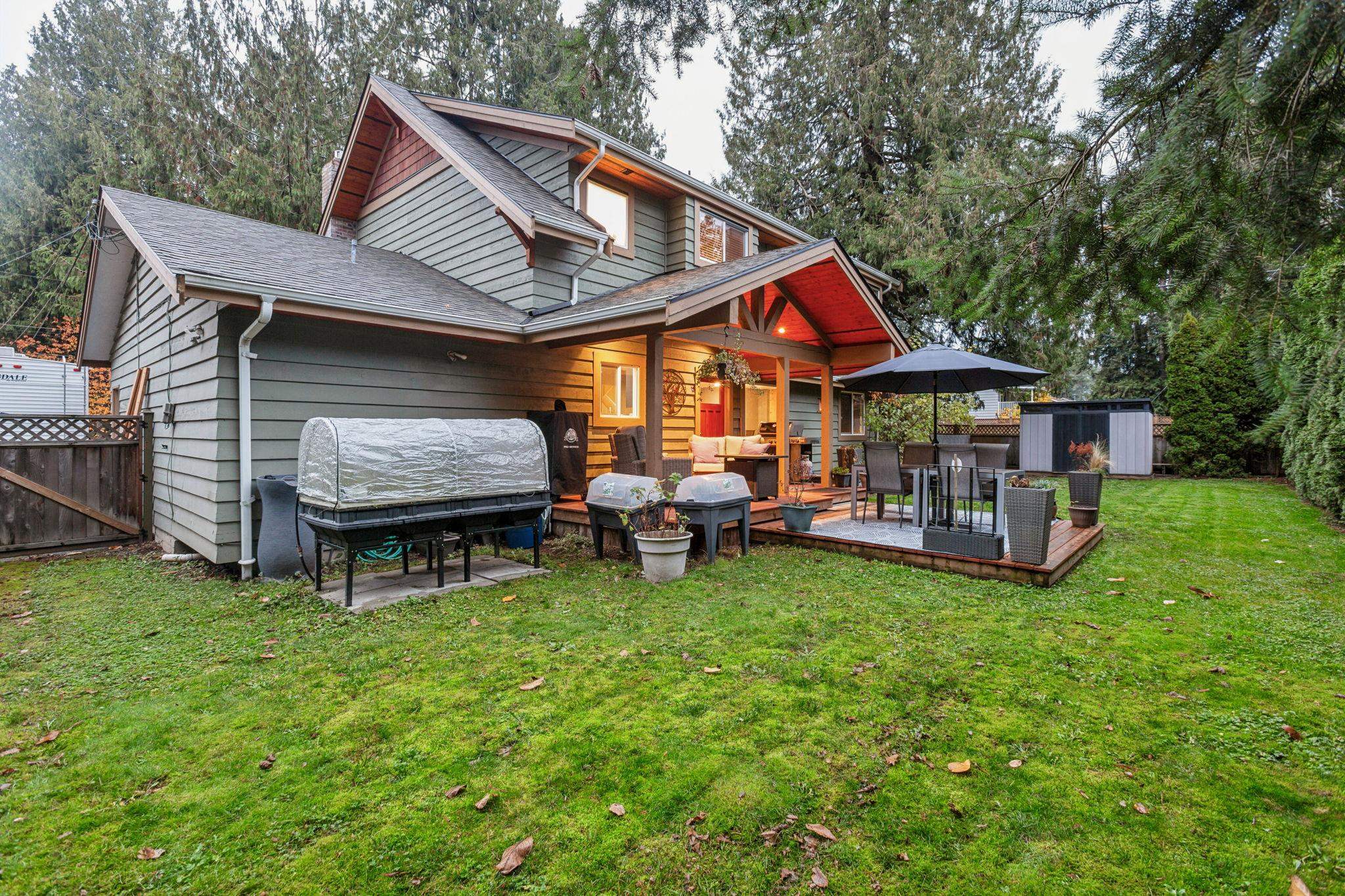 One-of-a-kind, beautifully updated Whistler-inspired home on a large prime corner lot in the heart of Brookswood. Welcoming front veranda leads into a warm, character-filled home with refinished hardwood floors, crown moldings, and spacious living room with cozy gas fireplace. The 2024-renovated kitchen features natural wood cabinetry, quartz counters, dual-drawer DW and new gas range, flowing to the family room and out to a sunny south-facing yard with covered deck—perfect for year-round entertaining. Main...
