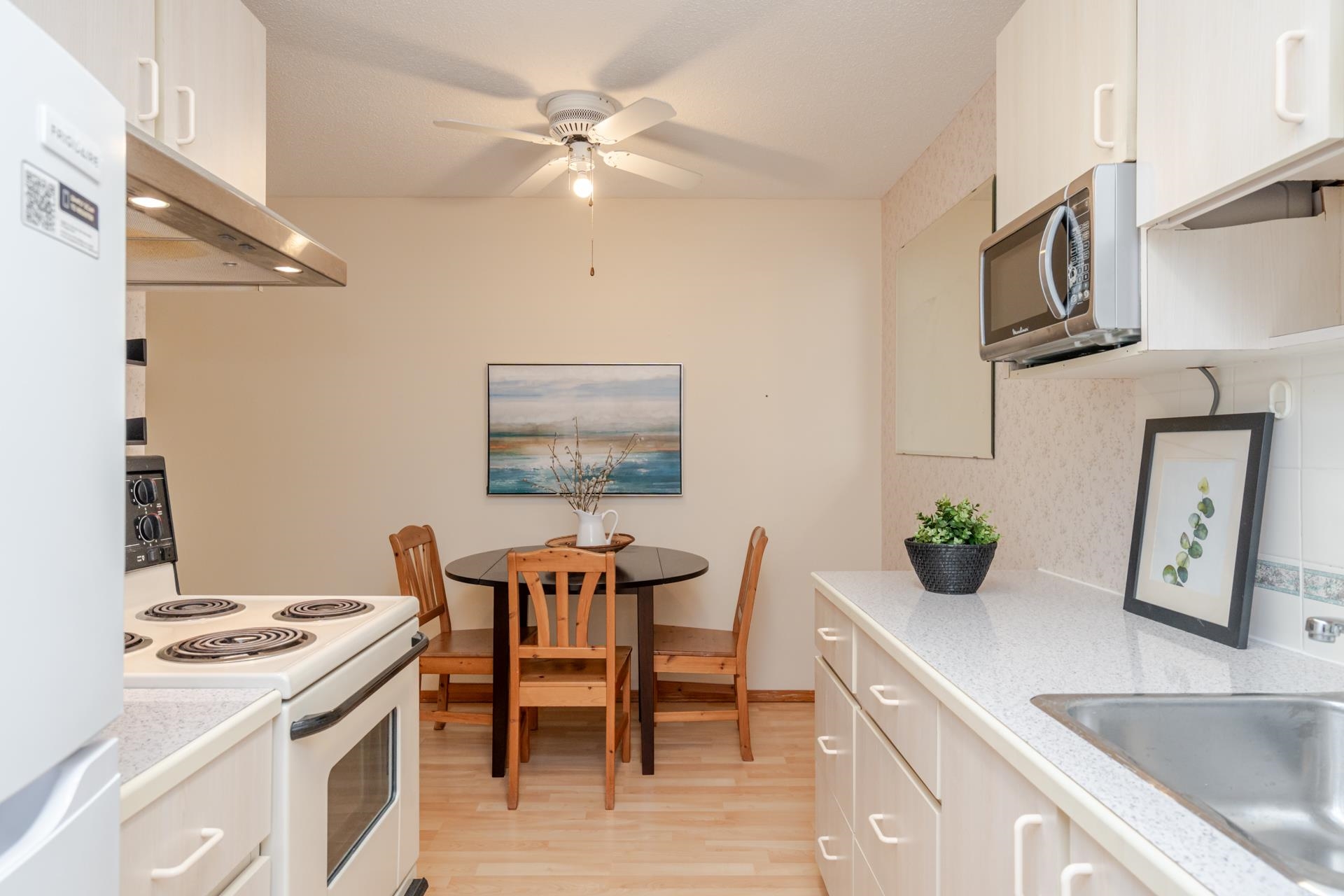Affordable, convenient living in the heart of White Rock. Comfortable 1 bedroom condo in respected and updated co-op building North Bluff Village. Condo is on the quiet side of building, with a peaceful south-facing balcony overlooking trees. Have lots of stuff? Enjoy rare large in-unit storage area / den plus locker downstairs. Underground parking space. Clean, updated shared laundry room. Building has multi-purpose amenity room with pool table, table tennis, shuffleboard, gym equipment and games. Keep you...