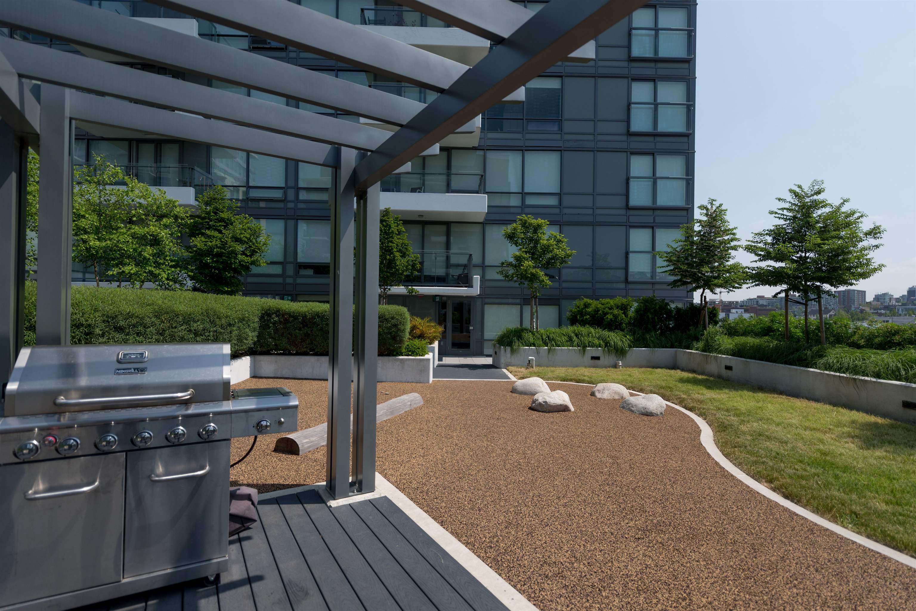 Imagine sipping your morning coffee, or evening glass of wine with friends and family on your communal rooftop view garden deck! Unique 1 bdroom w/ insuite laundry in super prime Olympic Village location. Bright sunny South facing living room, leading to beautifully well laid out gourmet kitchen with high-gloss cabinets, quartz counters, s/s appliances has been kept in excellent condition, and it exudes the open concept with no wasted space! Custom California Closets add easy storage options. Well run compl...