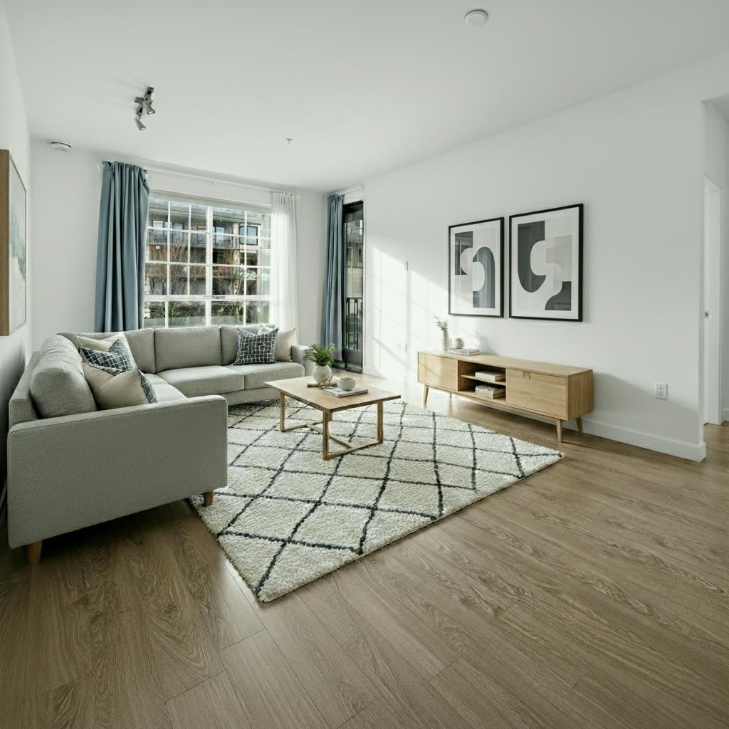 Welcome to this bright & modern 2-bed, 2-bath home in the heart of Coquitlam West in "The Georgia". This spacious, quiet inside unit offers 905 sq ft of efficient layout without any wasted space, features 9’ ceilings, bedrooms on opposite side, an open-concept layout, and a sleek kitchen with quartz countertops, integrated appliances, and ample storage. Spacious living & dining areas extend to a private balcony, perfect for relaxing or entertaining. The primary bedroom includes generous closet space and a ...
