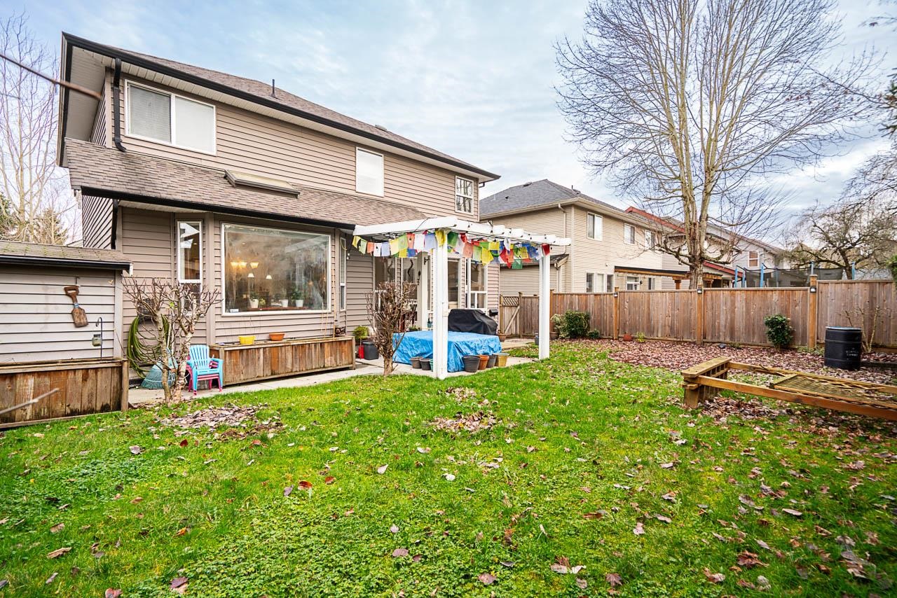 Beautiful Great Room plan home on a quiet crescent in prime Willoughby. Open main flr with flex room/office/bedroom off entry. Bright picture windows overlook south-facing private b/y with covered patio. Upstairs offers 3 bdrms total, including a primary bdrm with spa-inspired ensuite. Fresh paint, new carpet, A/C. Dbl garage with Tesla EV charger. Easy access to Hwy 1 & Carvolth Transit Hub/Park & Ride. School catchments: Lynn Fripps Elem, Yorkson Creek Middle, R.E. Mountain Sec (IB program).