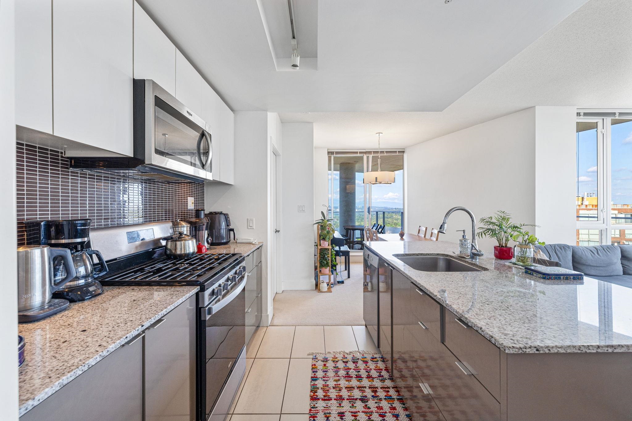 Discover this rarely available South East facing Corner suite in Centerpoint offering 2 bedrooms & 2 full bathrooms. This 880 sq. ft. unit boasts breathtaking views of the Mountains, Deer Lake & the city. This functional layout features an open kitchen with granite countertops, big windows , an excellent separation between the two bedrooms, a distinct dining & living room area perfect for entertaining & in-suite laundry. Centerpoint's amenities include a gym, a huge rooftop garden & a recreation room. Th...