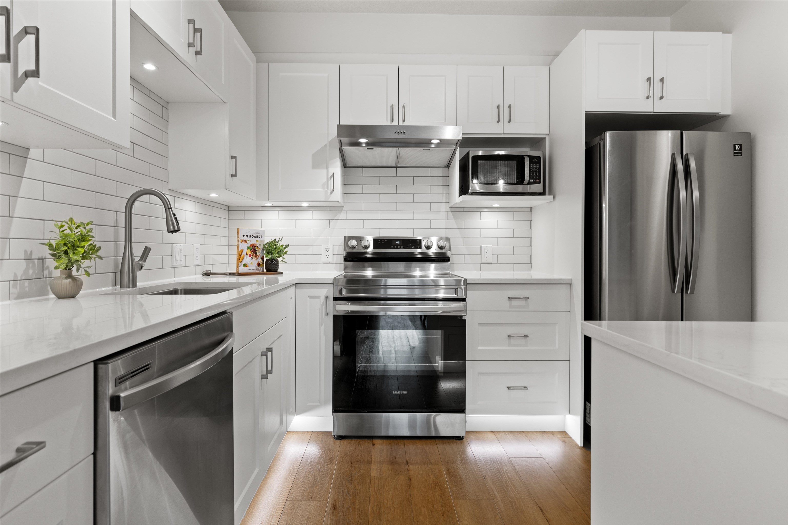 Rare SOUTH FACING completely RENOVATED condo in highly desired McMyn Mews! The kitchen redone in 2021 boasts modern white cabinetry, under-cabinet lighting, a large island & updated appliances. The expansive, 950 sqft layout features 9-foot ceilings, new flooring (2021) & a natural gas fireplace, while south-facing windows flood the home with light. Large bedrooms are on opposite sides for maximum privacy; the primary suite offers a walk-in closet & 4-piece ensuite. The den is perfect for a home office, and...