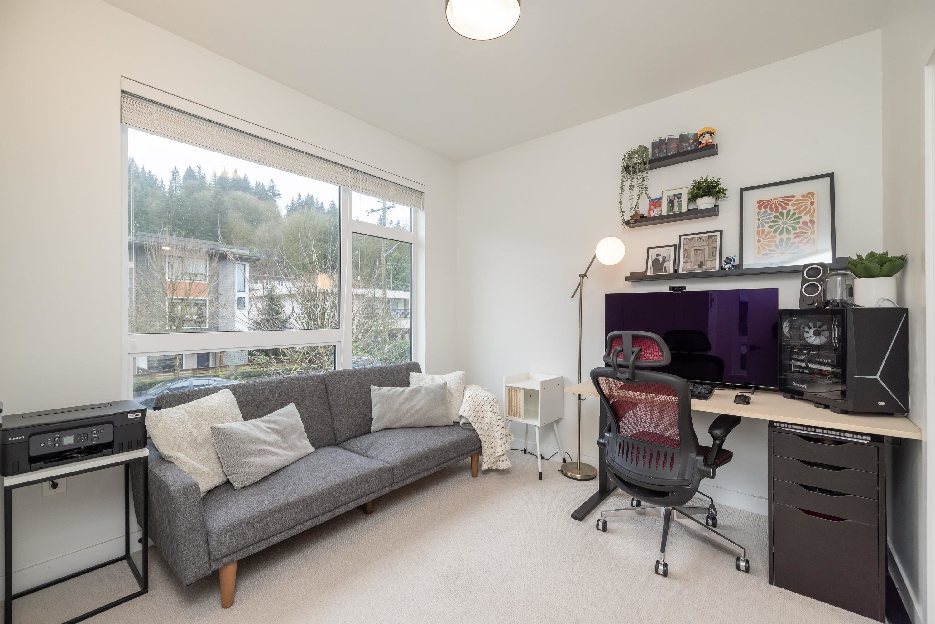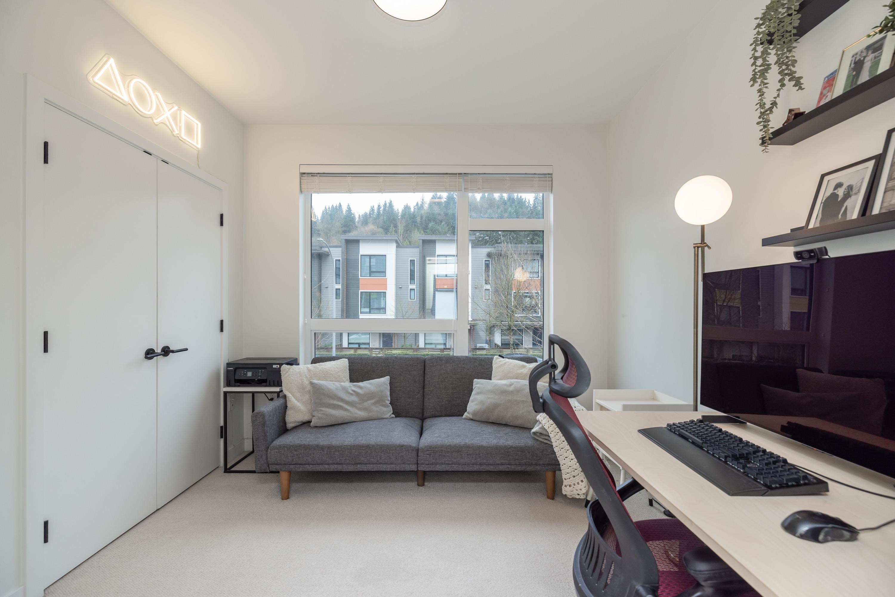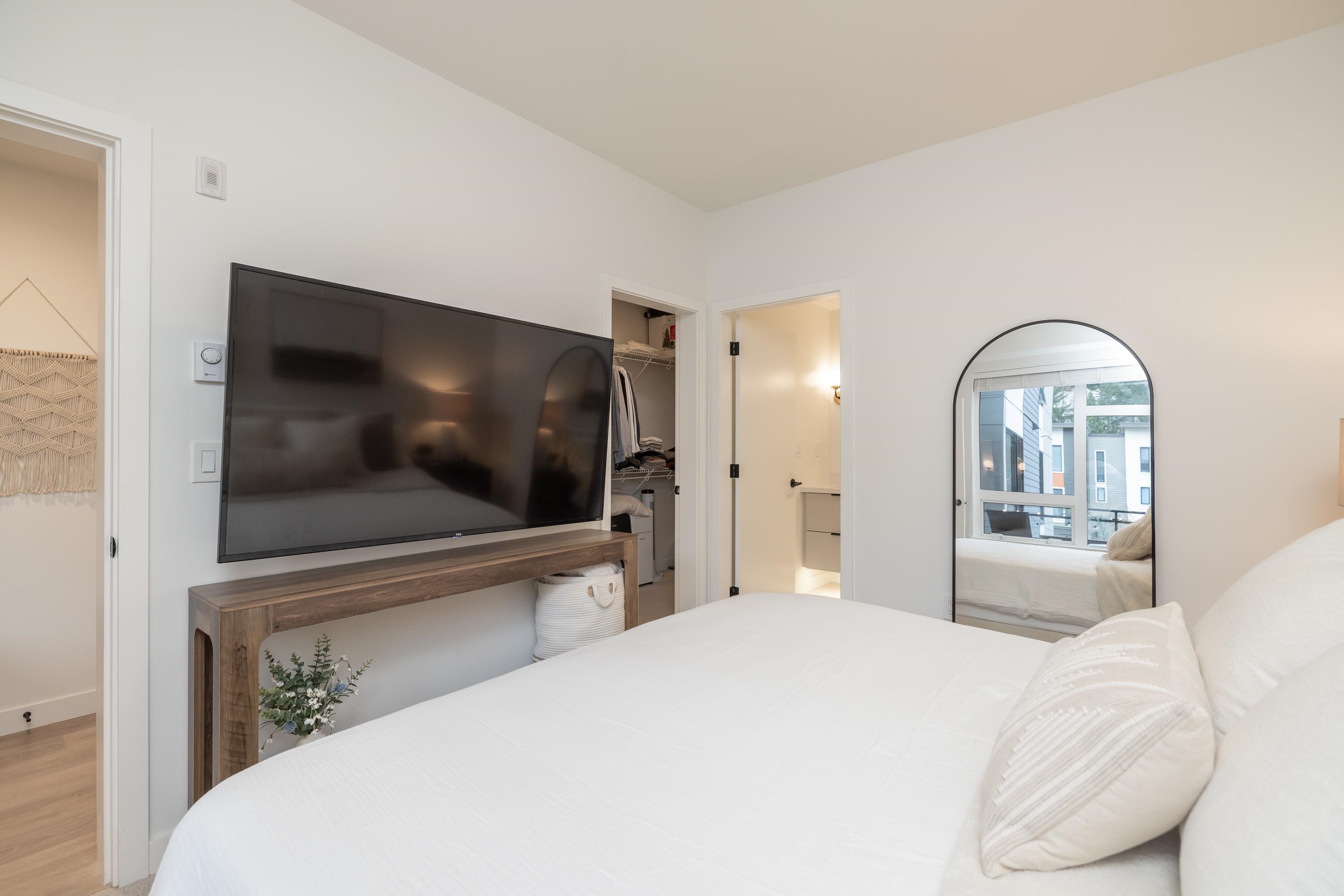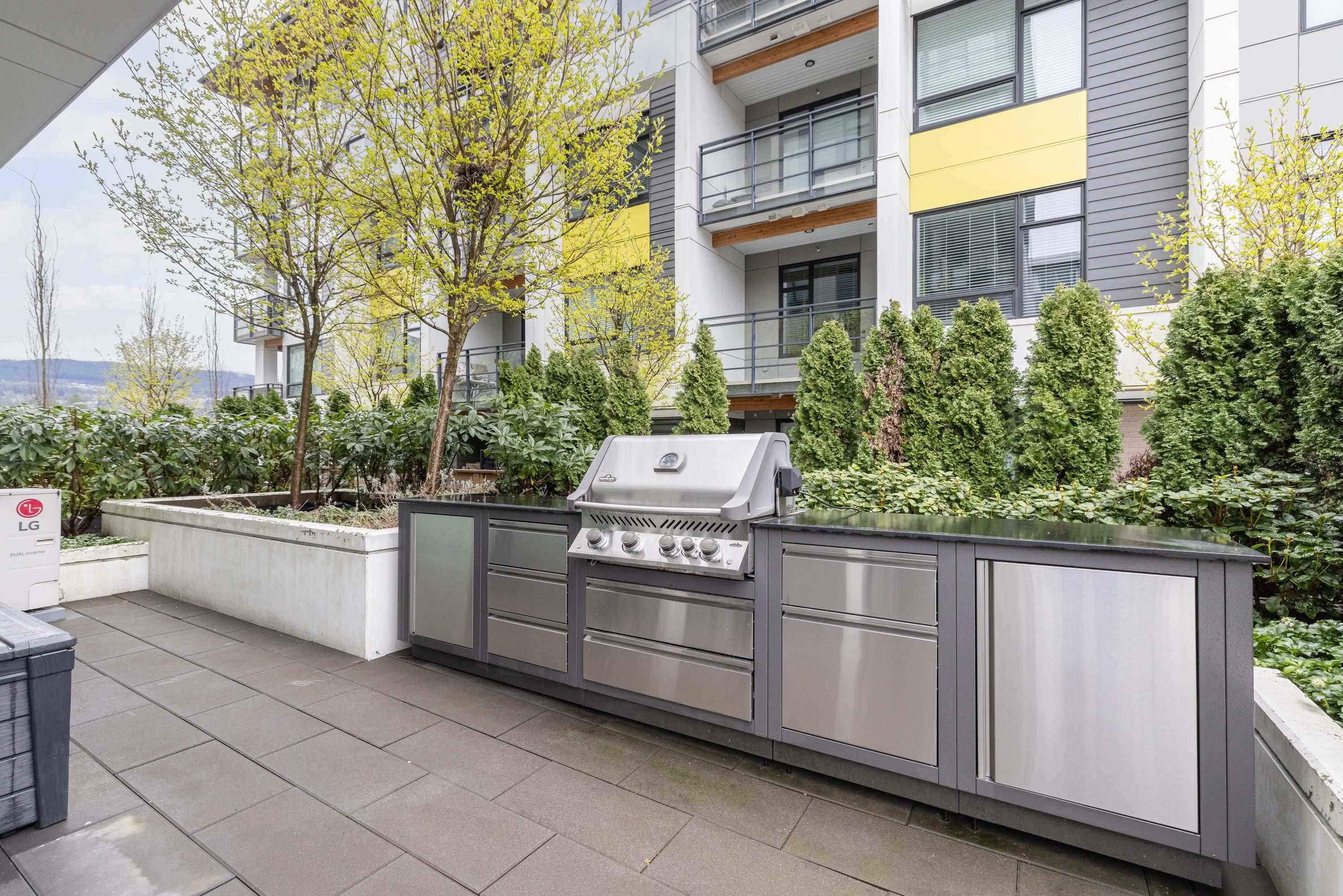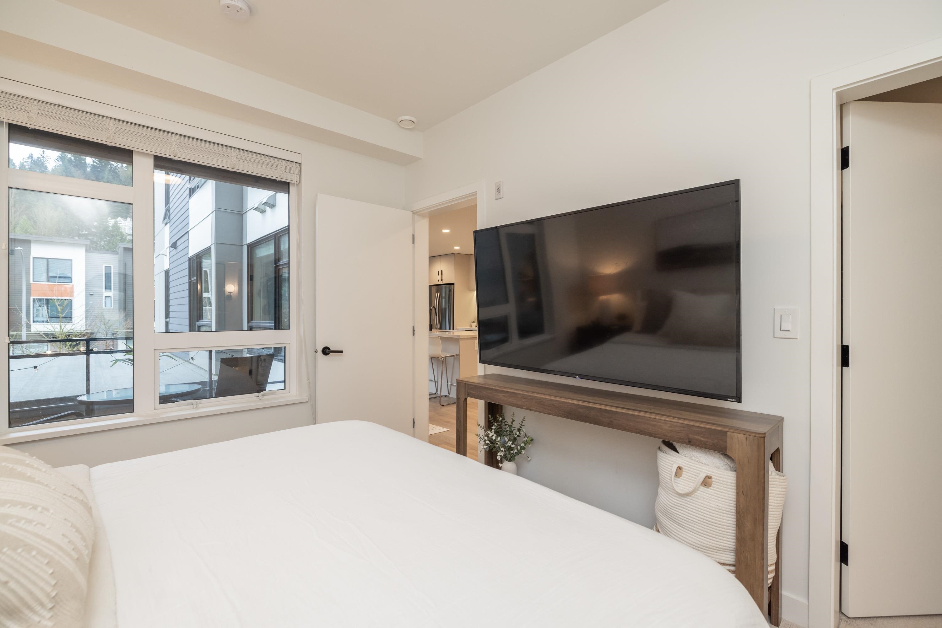 Fabulous living in Port Moody, with shops, restaurants, trails, parks, and more all outside your door! Welcome to this 936 sq ft 2 bdrm 2 bthrm END UNIT (no neighbours below) in the George, steps to the vibrant community yet located on a quiet street making it the perfect location. Kitchen has stylish cabinetry, quartz, island/prep space with seating for 3, and S/S appliances including gas & built in microwave. Bedrooms are located on opposite sides for privacy, and primary has a large walk in closet and a ...
