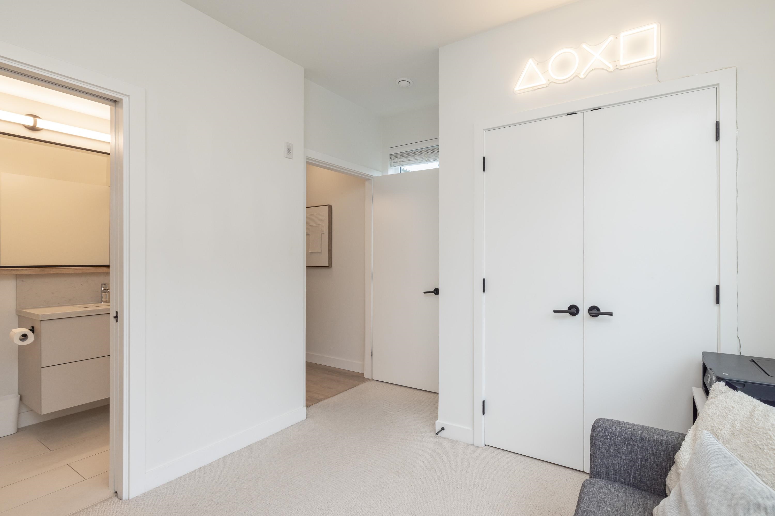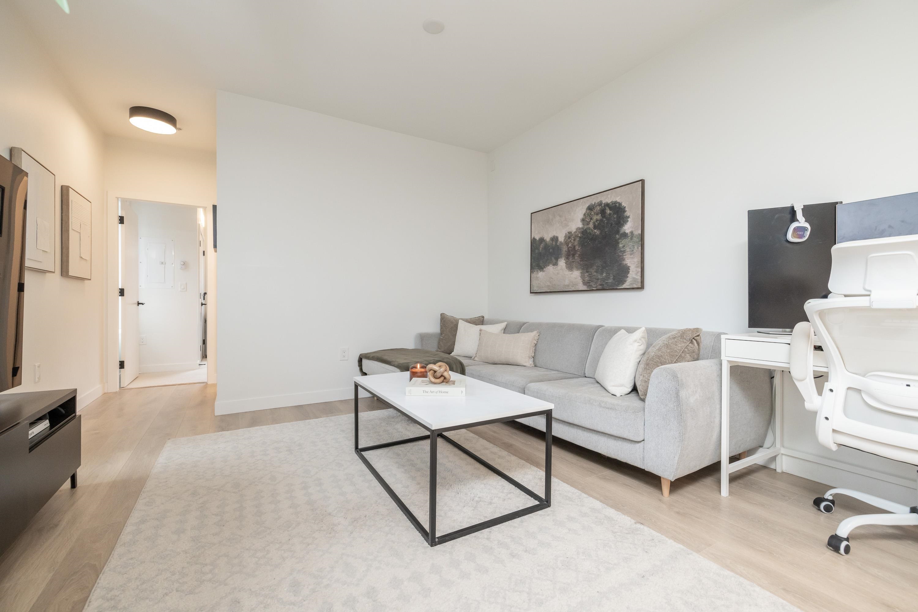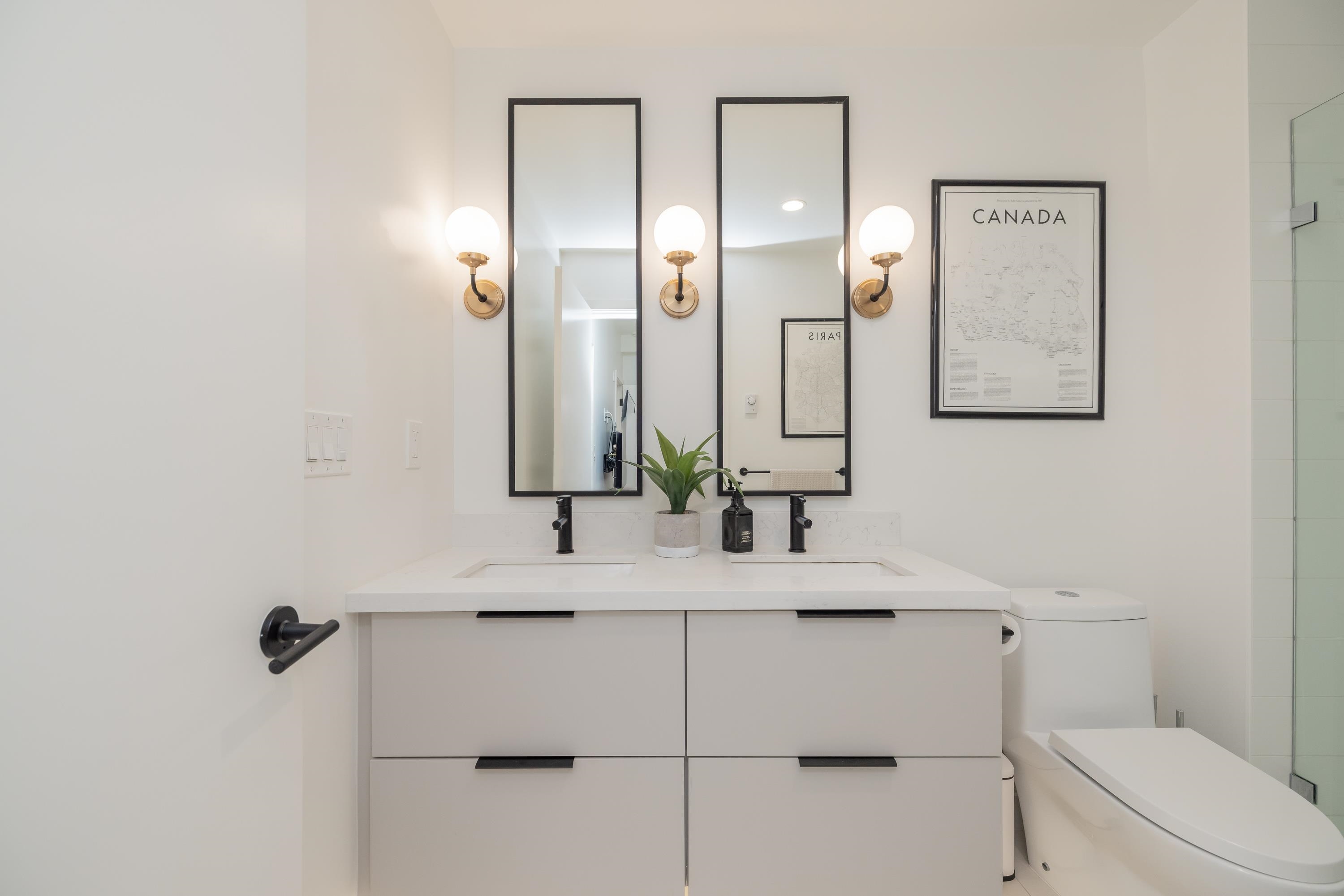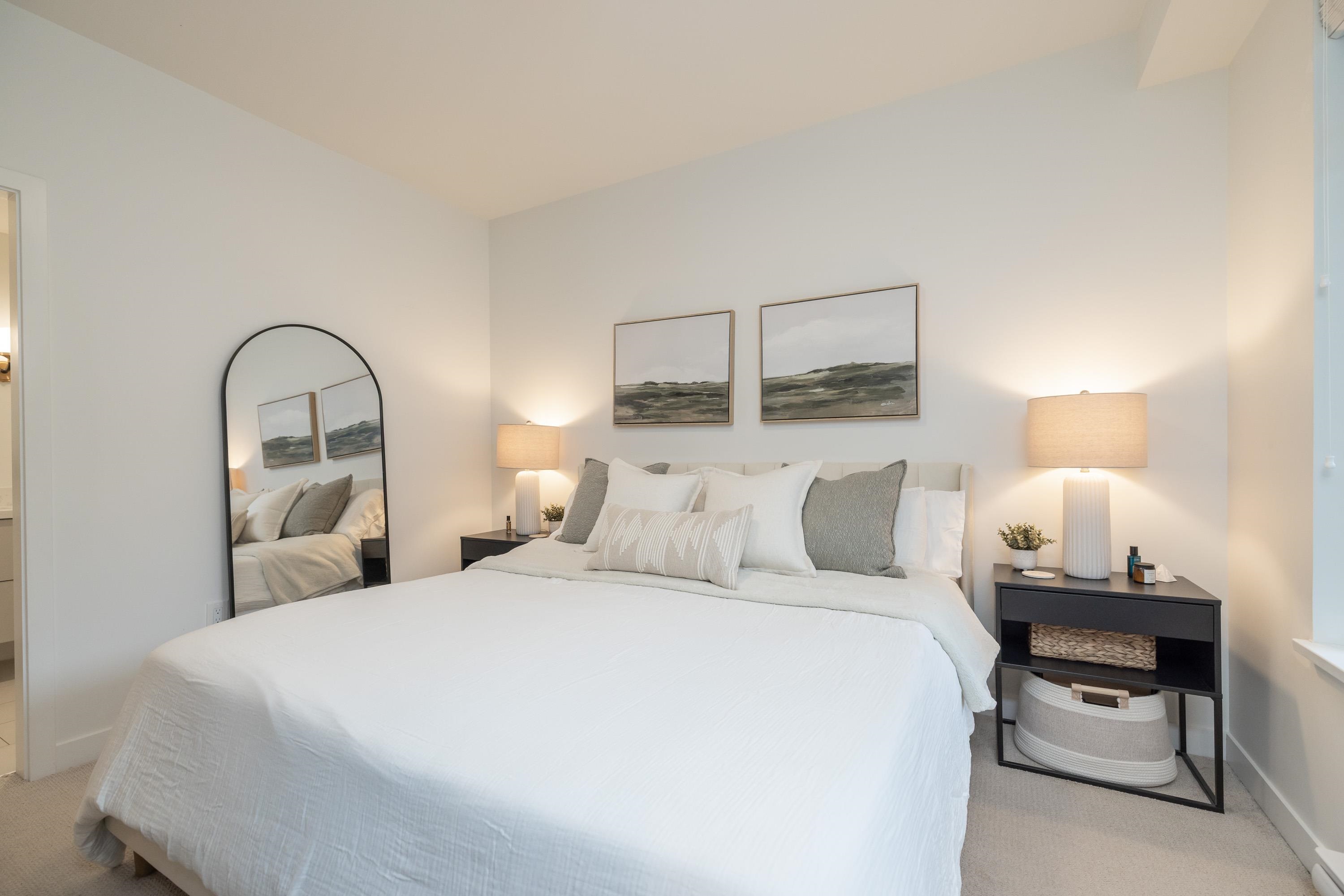 Fabulous living in Port Moody, with shops, restaurants, trails, parks, and more all outside your door! Welcome to this 936 sq ft 2 bdrm 2 bthrm END UNIT (no neighbours below) in the George, steps to the vibrant community yet located on a quiet street making it the perfect location. Kitchen has stylish cabinetry, quartz, island/prep space with seating for 3, and S/S appliances including gas & built in microwave. Bedrooms are located on opposite sides for privacy, and primary has a large walk in closet and a ...