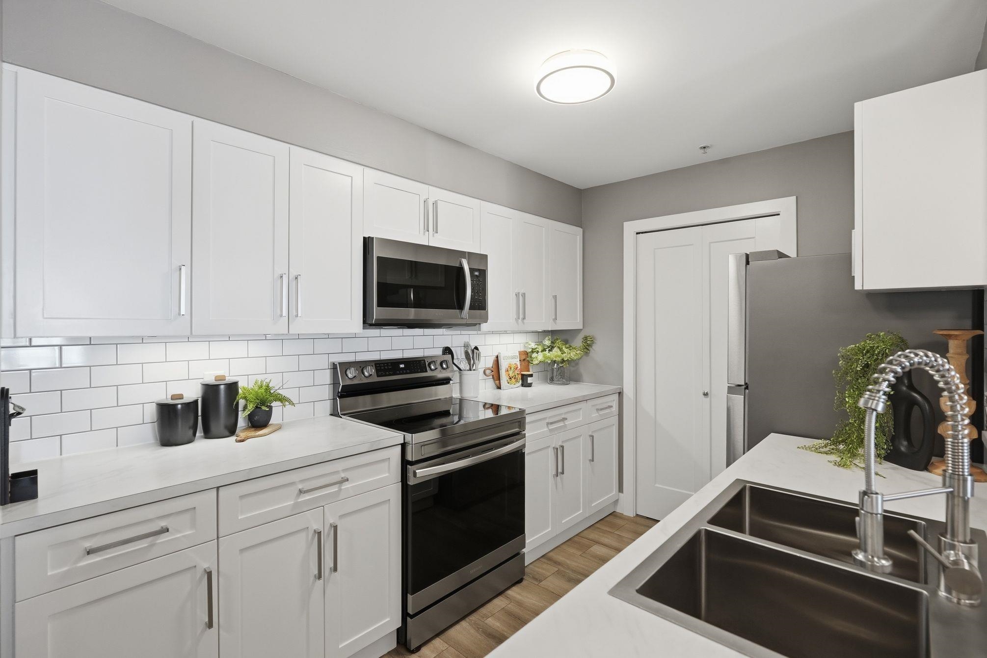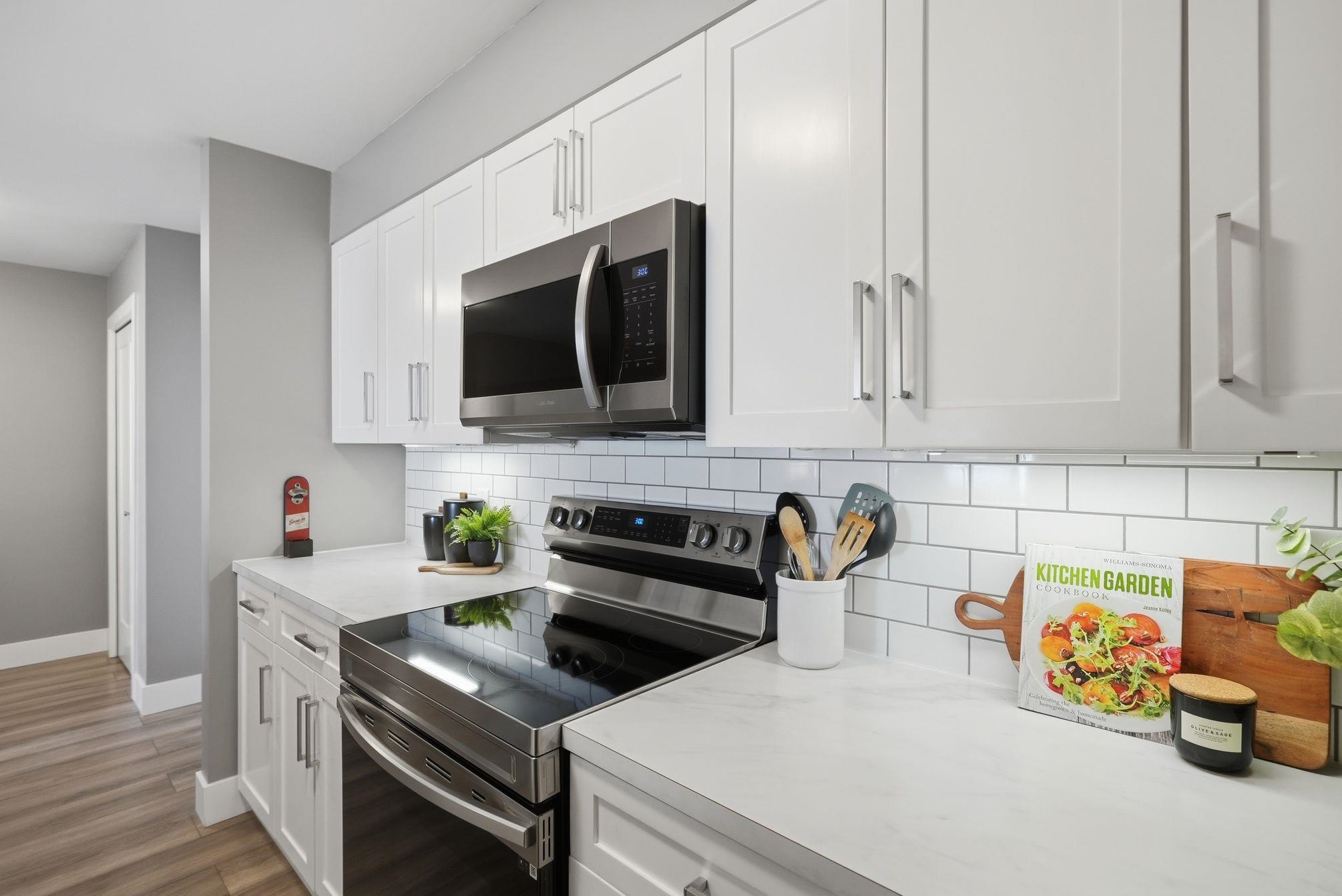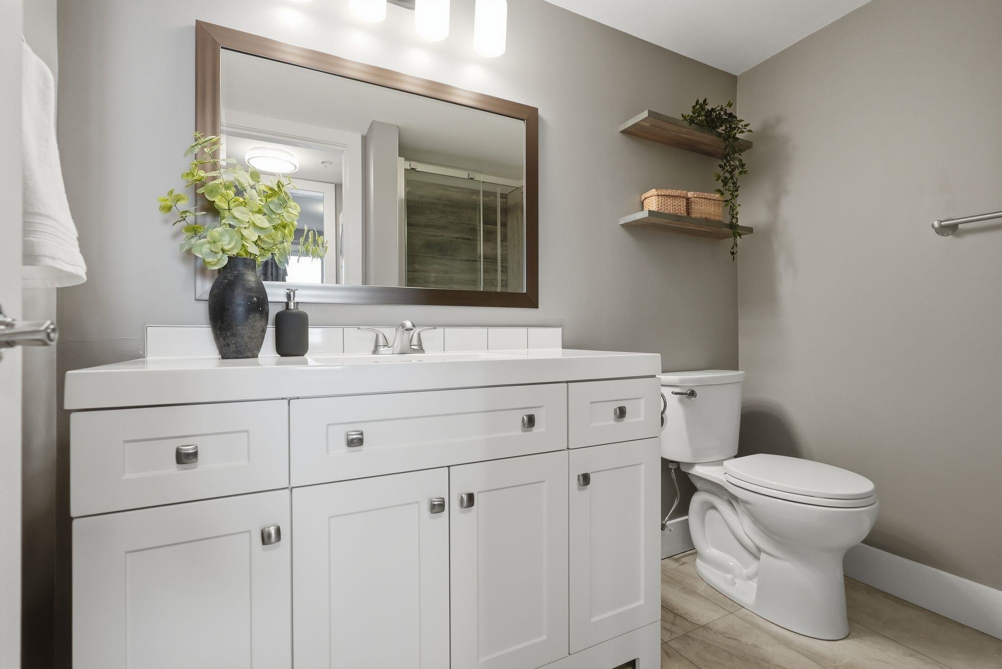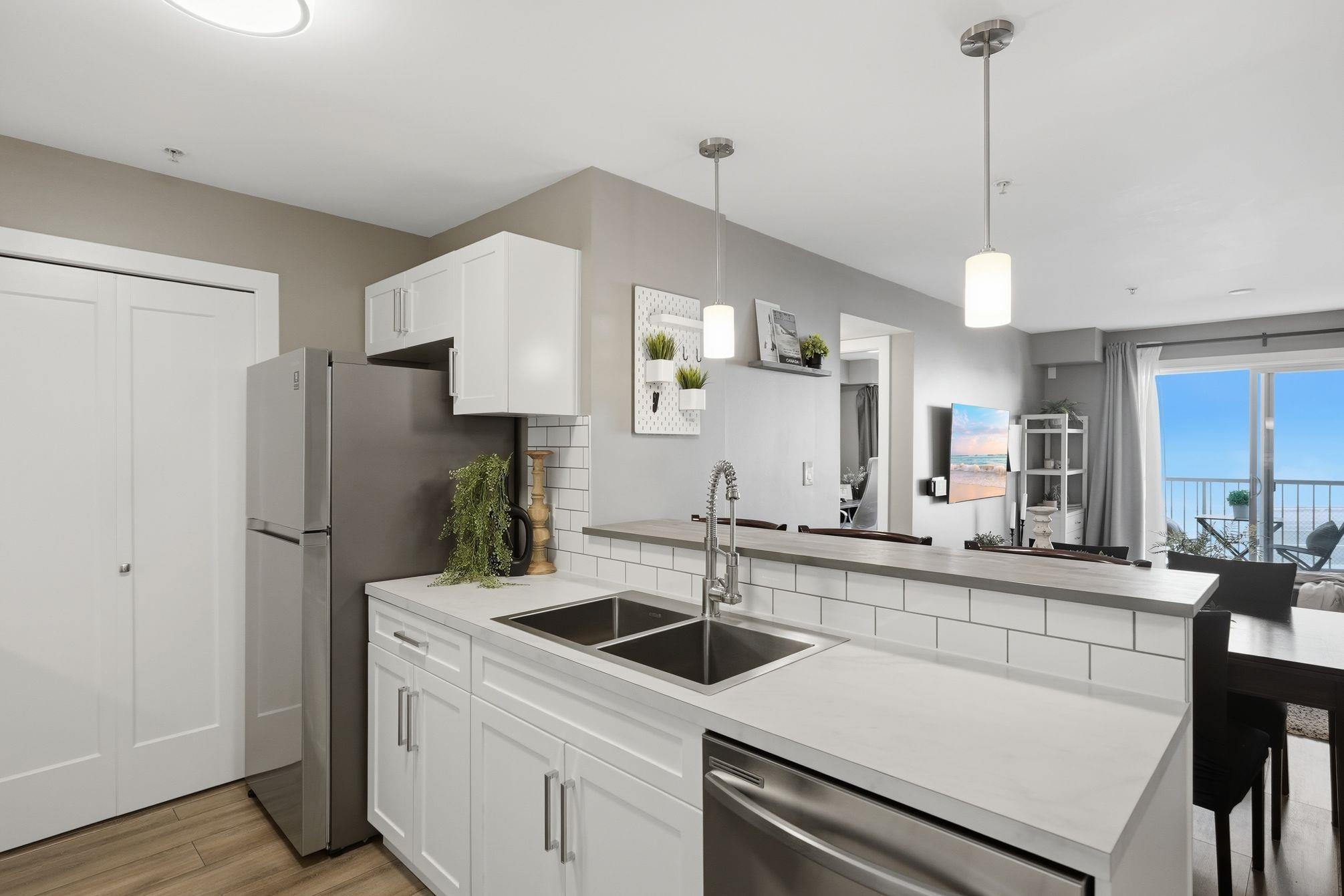 Beautifully updated 2 bed/2 bath corner home in Central Abbotsford. Stunning white kitchen cabinets and newer stainless steel appliances. Bright and spacious, this home features newer laminate flooring, wide plank baseboards, updated interior doors, door casings and upgraded lighting throughout. Main bathroom has new flooring, shower surround, vanity and lighting. Ensuite also features new vanity, lighting and tub surround. Separation of bedrooms and bathrooms makes this home ideal for everyone. Enjoy t...