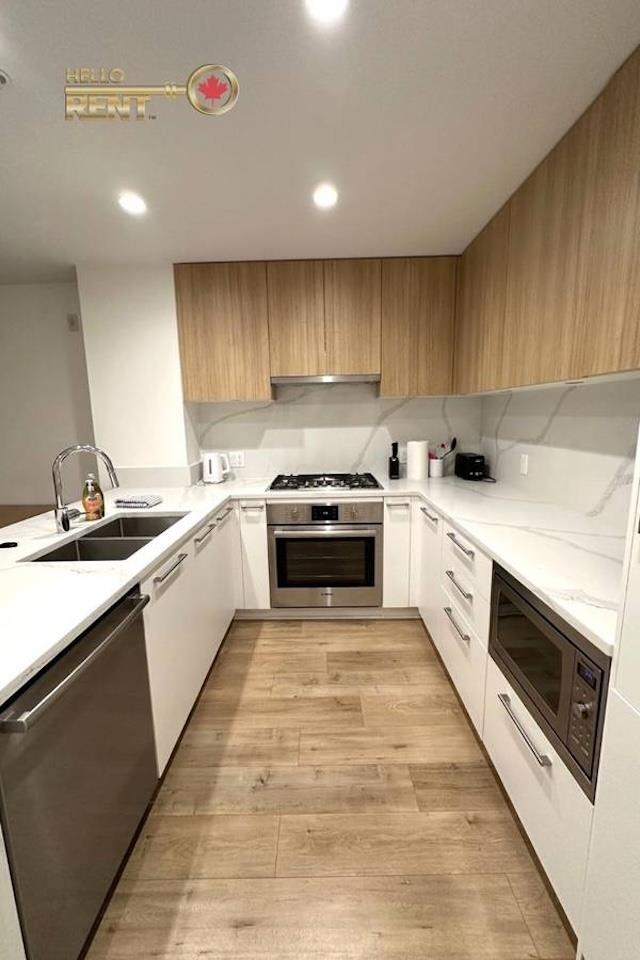 Avail Apr 1/26 Min 1 Year Term Pet Friendly 1 Secure Parking & 1 Storage Locker Incl Rooftop Patio Professionally Managed by Hello Rent Beautifully designed furnished townhouse offers bright, expansive living and stunning 475 sq/ft rooftop patio w/full sun exposure year-round. Open concept kitchen is elegant and functional, with oversized island, built-in Bosch appliances, gas cooktop, wall oven, quartz countertops w/waterfall edges, under-cabinet lighting, and ample storage. Primary bedroom has queen bed, ...