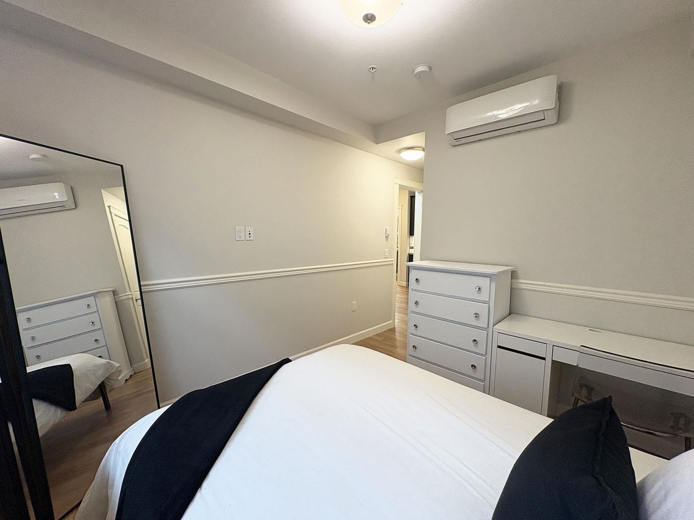 Bright south-facing 3-bedroom corner home at Yorkson Creek! This spacious unit offers a wide-open living area with 9-ft ceilings and a gourmet kitchen featuring high-end stainless steel appliances and a gas range — perfect for entertaining. Stay comfortable year-round with a heat pump, A/C in every bedroom and the living room, plus heated bathroom floors. Quality finishes include solid wood doors and cabinetry with plenty of storage. Enjoy the enclosed solarium year-round with a natural gas hookup for your ...