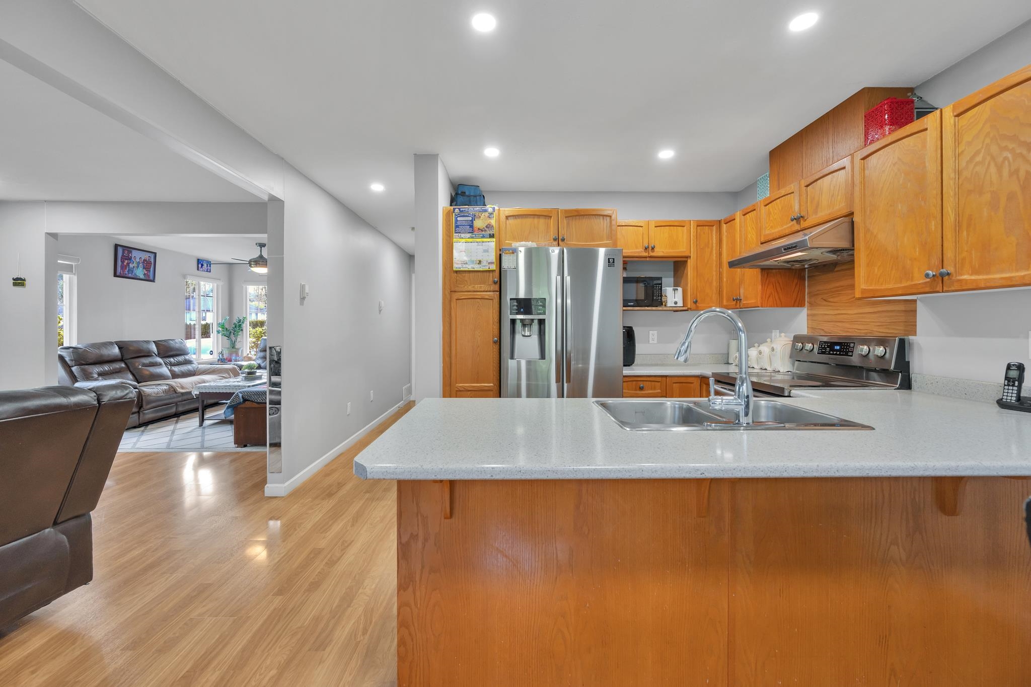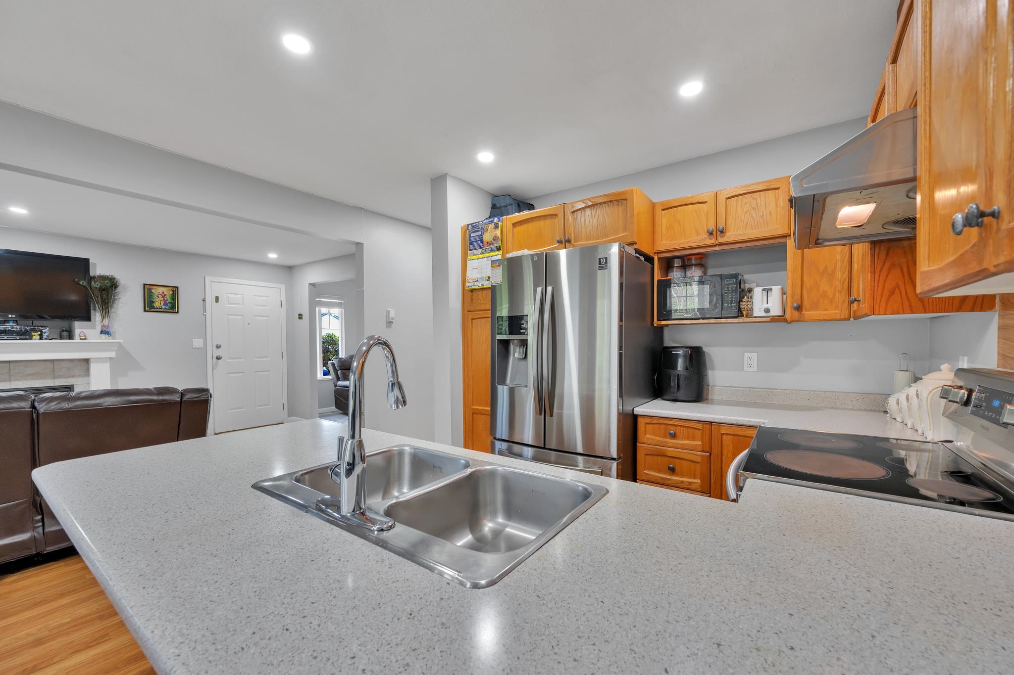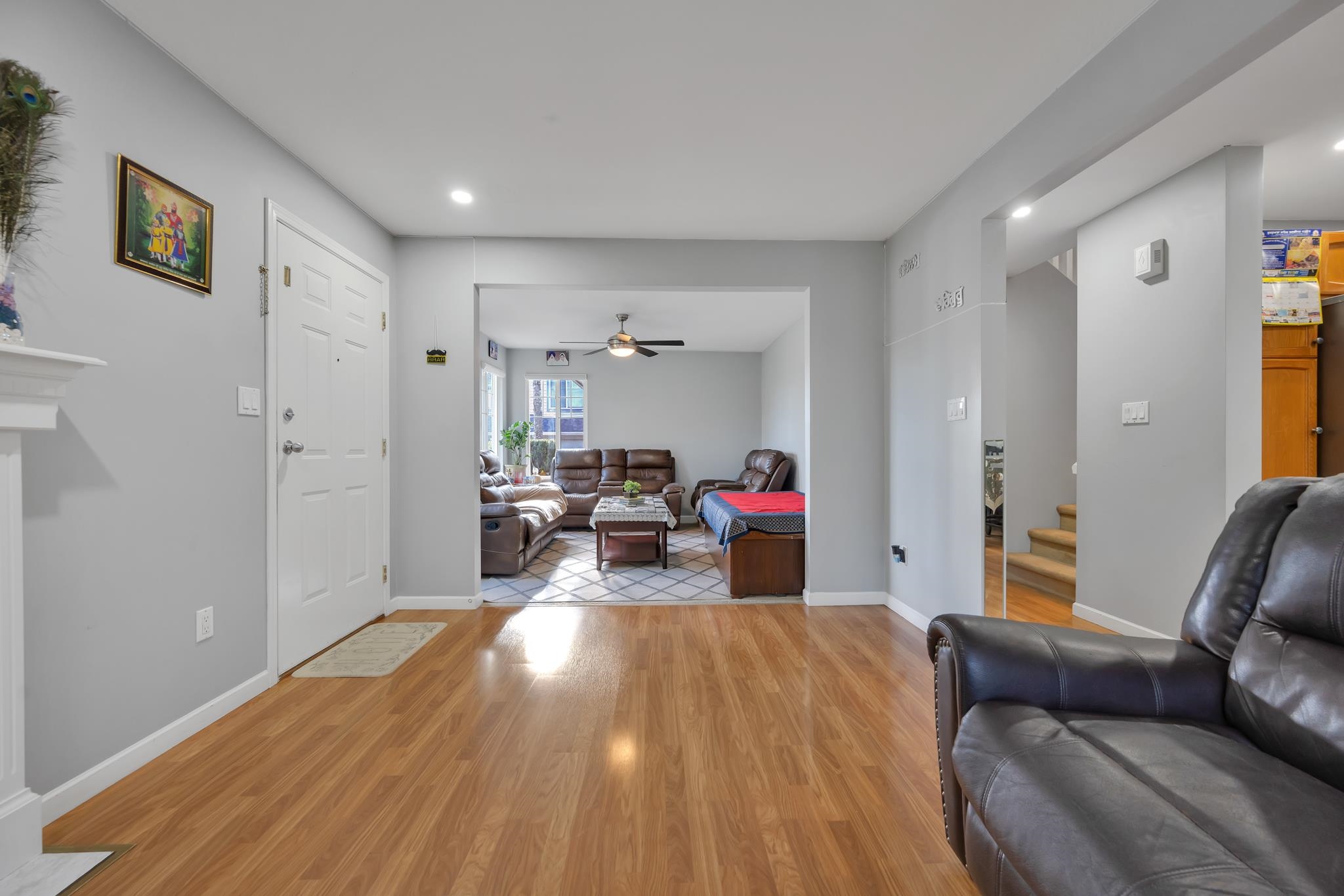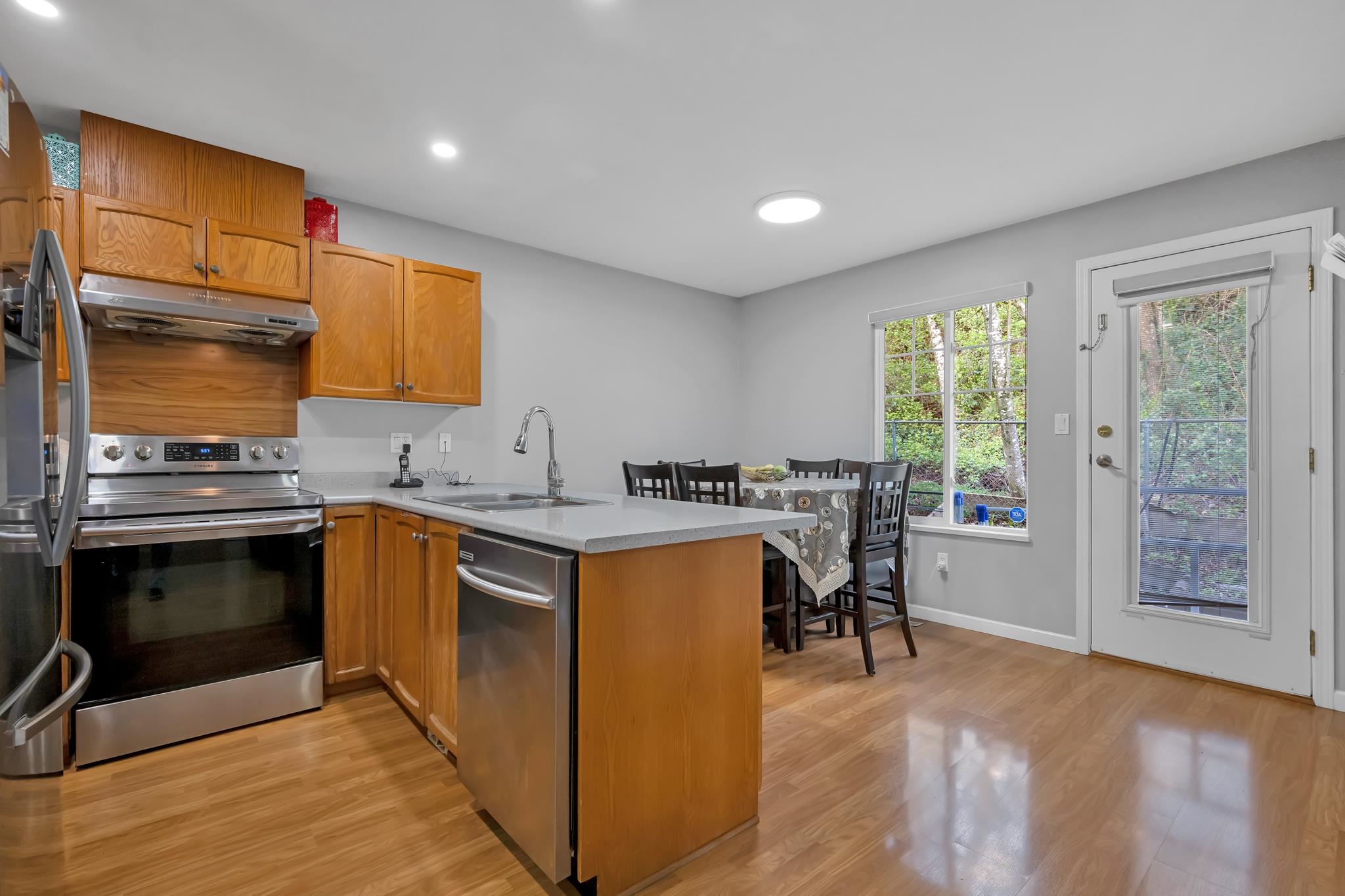 Rare CORNOR-UNIT opportunity! This bright and spacious townhome offers 3 bedrooms and 3 bathrooms with a functional open layout, large windows, and plenty of natural light. Enjoy a private backyard backing onto green space, along with a double garage and visitor parking. Located in a prime area close to Gurdwara, Highstreet Mall, Cineplex, schools, parks, and quick freeway access. EASY TO SHOW......