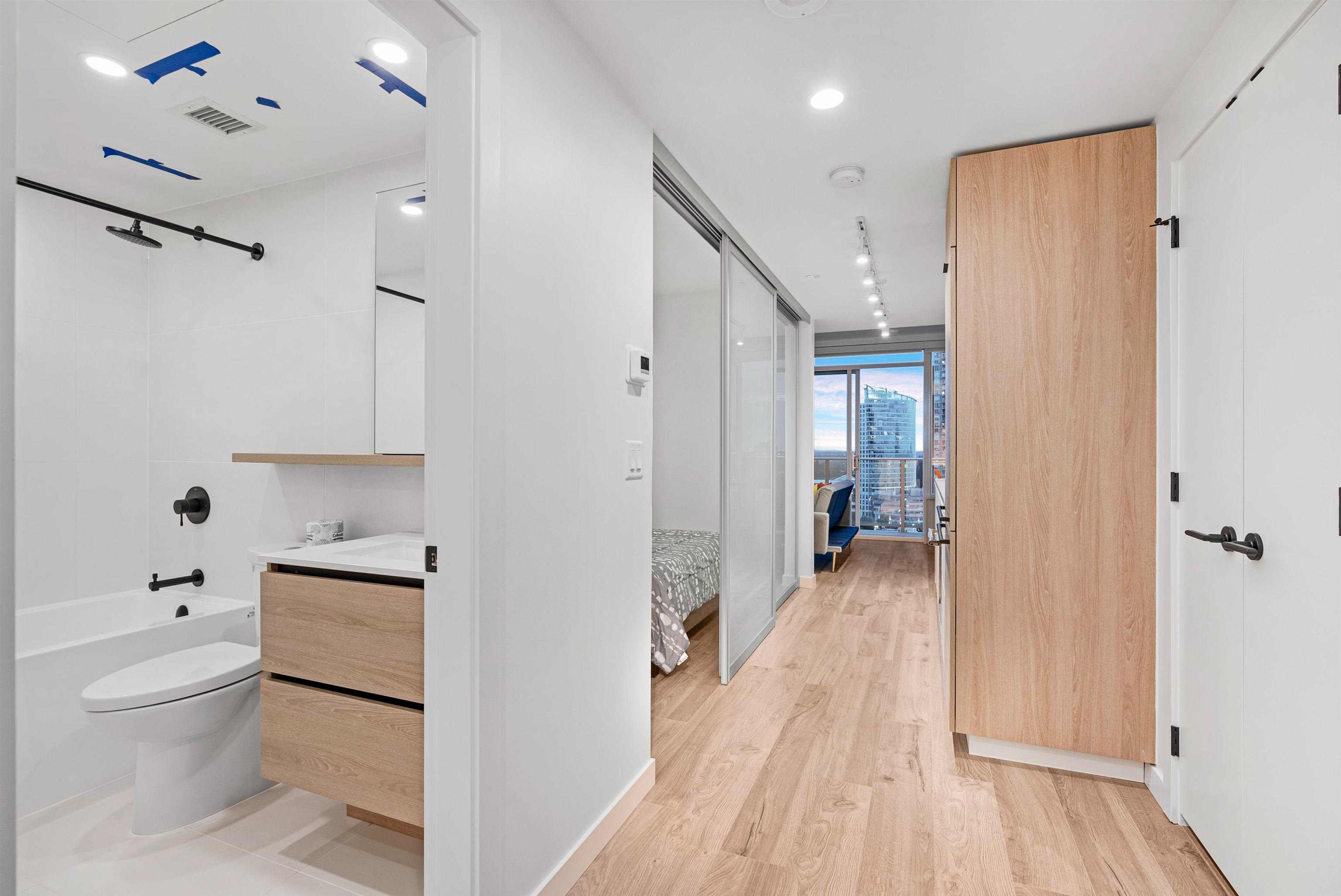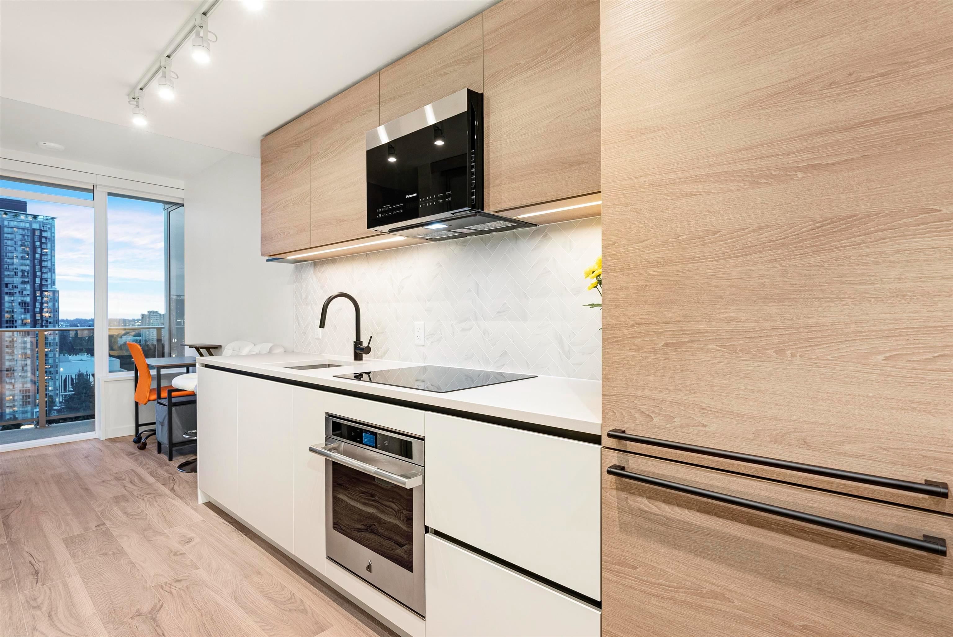This bright south-facing unit showcases spectacular panoramic views and sun-filled living all day long. Designed for comfort and lifestyle, the home offers central heating & A/C and 24-hour concierge service. Indulge in resort-style amenities including a rooftop pool, theatre room, billiards and table tennis. Unbeatable location just steps to SkyTrain, Library, shopping mall, restaurants and banks, with T&T, Walmart and Best Buy nearby. The unit comes furnished as is, and 1 parking stall included! Call for ...