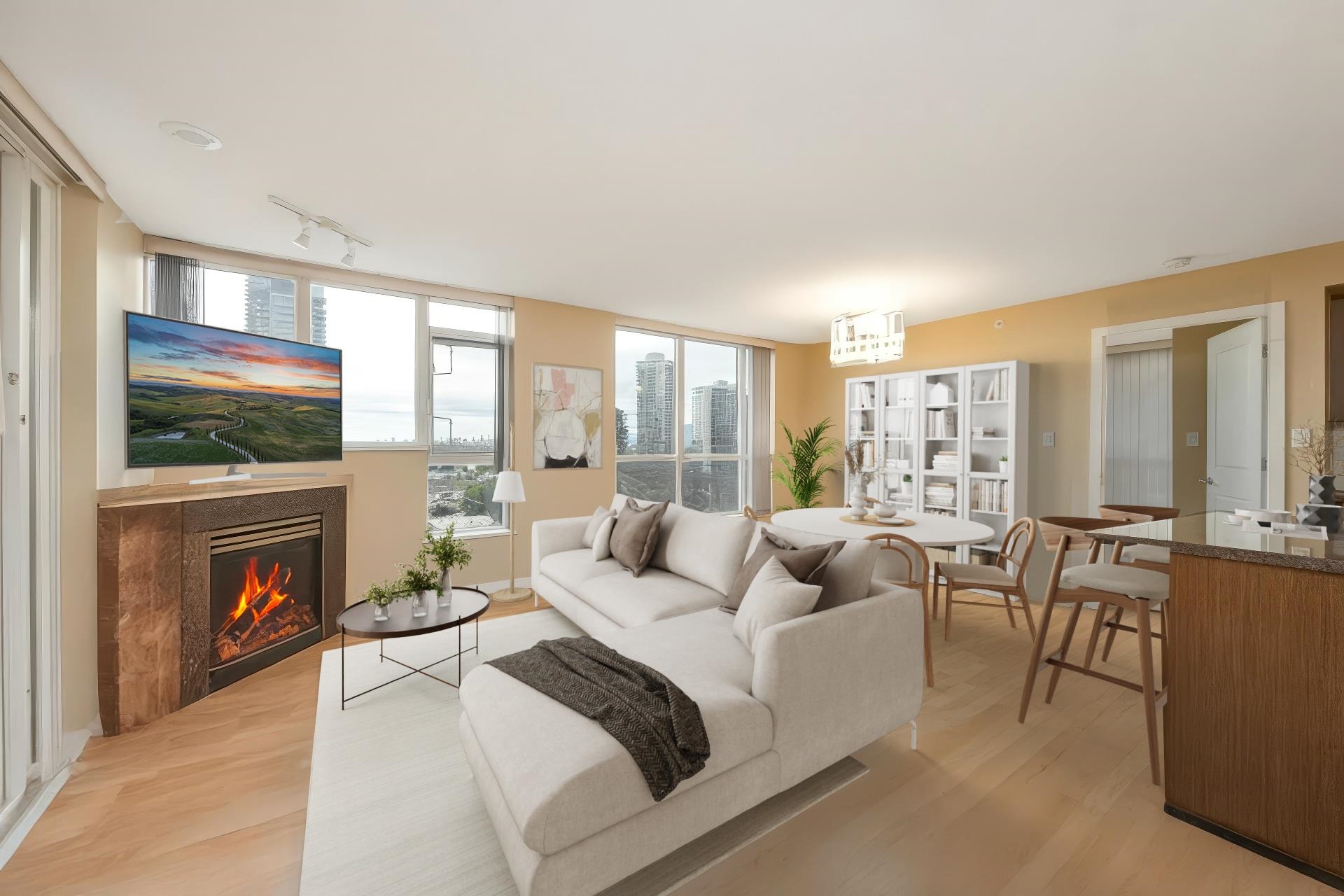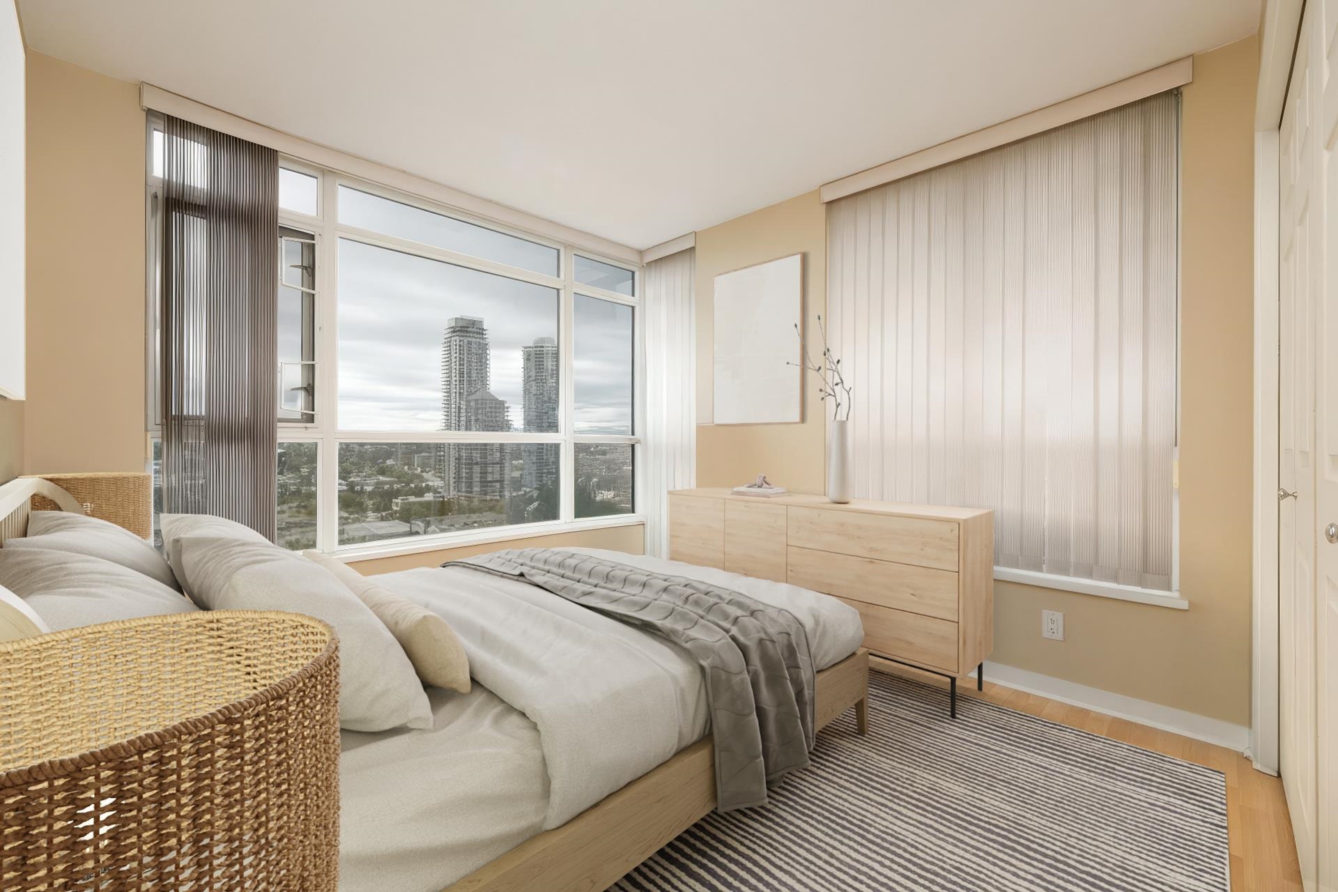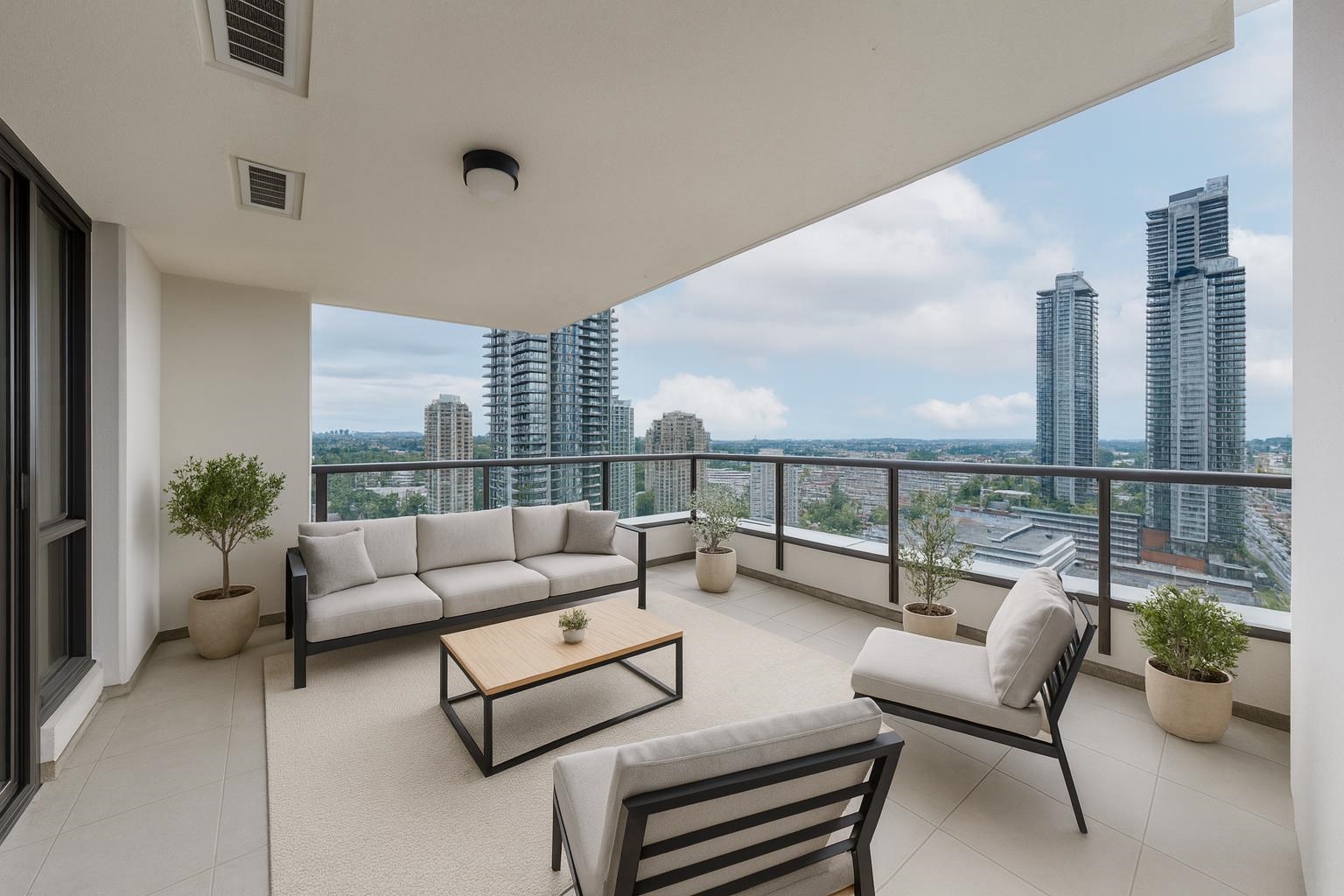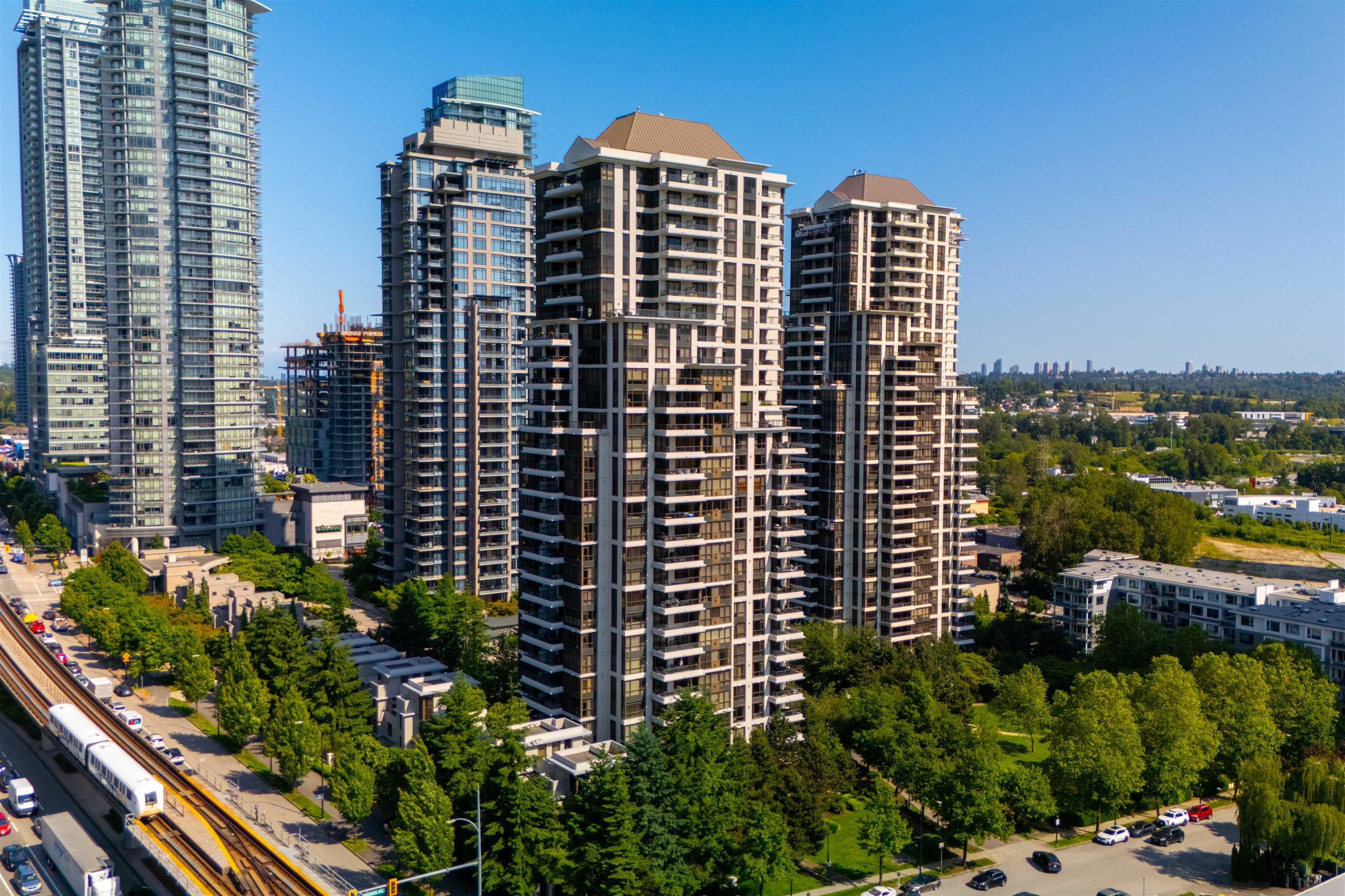 Stunning, unobstructed views from this spacious 2 bed, 2 bath corner unit at Fresco by BOSA in Brentwood. This beautifully maintained home features an open-concept layout, oversized covered balcony (15'1 x 14'9), granite countertops, and a massive walk-in closet in the primary bedroom. Enjoy natural light and panoramic vistas from every room. Comes with 2 side-by-side parking stalls. Exceptional building amenities include a fully equipped gym, sauna, steam room, and whirlpool. Just steps to Brentwood SkyTra...