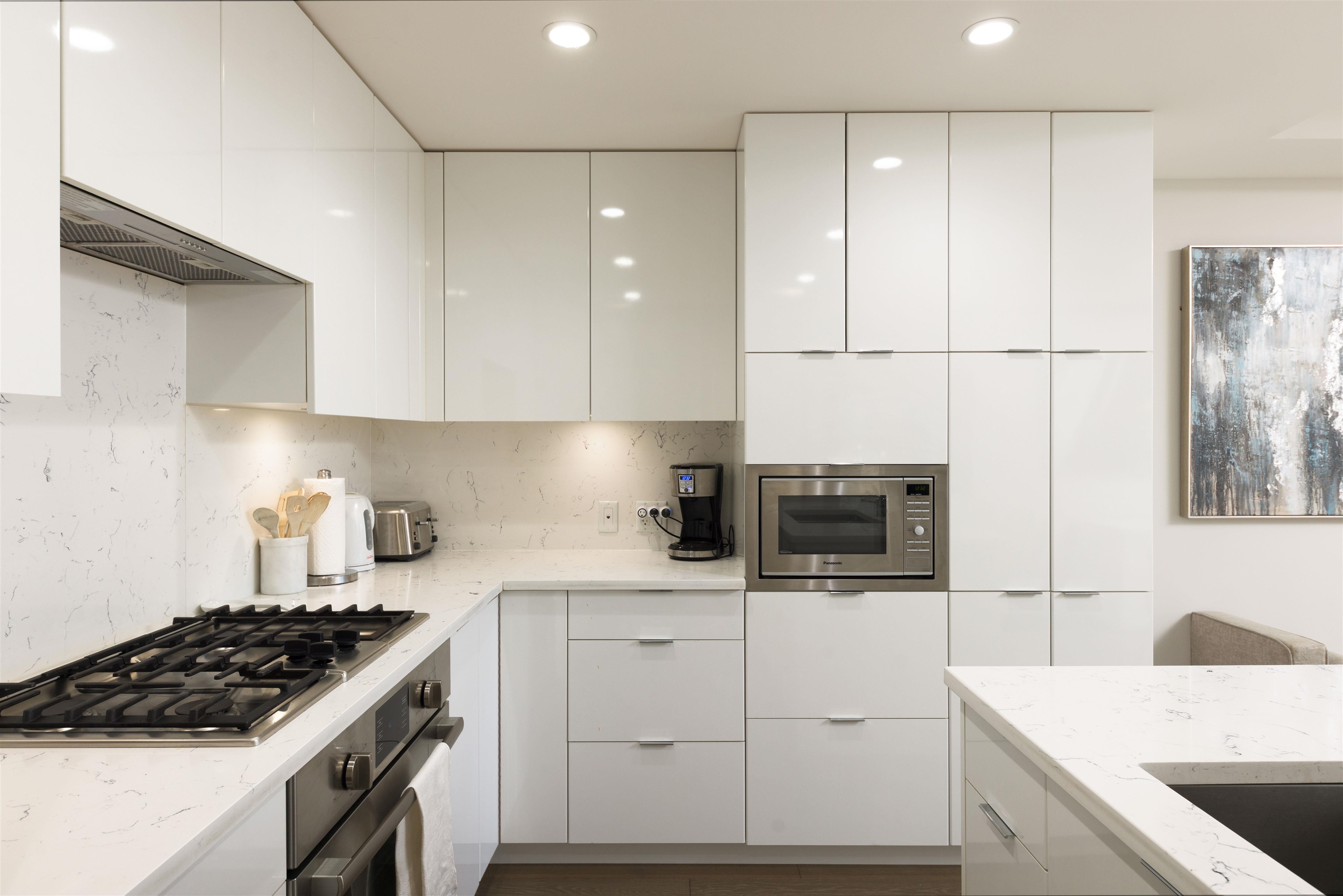 Quietly positioned on the peaceful side of the building, this 2-bed/2-bath home is designed for real life. A highly functional floor plan places bedrooms on opposite sides for privacy, with 2 dedicated areas ideal for home offices. Open-concept living & dining flow seamlessly into a generous kitchen featuring integrated appliances, quartz counters & backsplash, & ample storage. An expansive 480sqft terrace extends the living space outdoors—perfect for entertaining, relaxing, or everyday enjoyment. The prima...