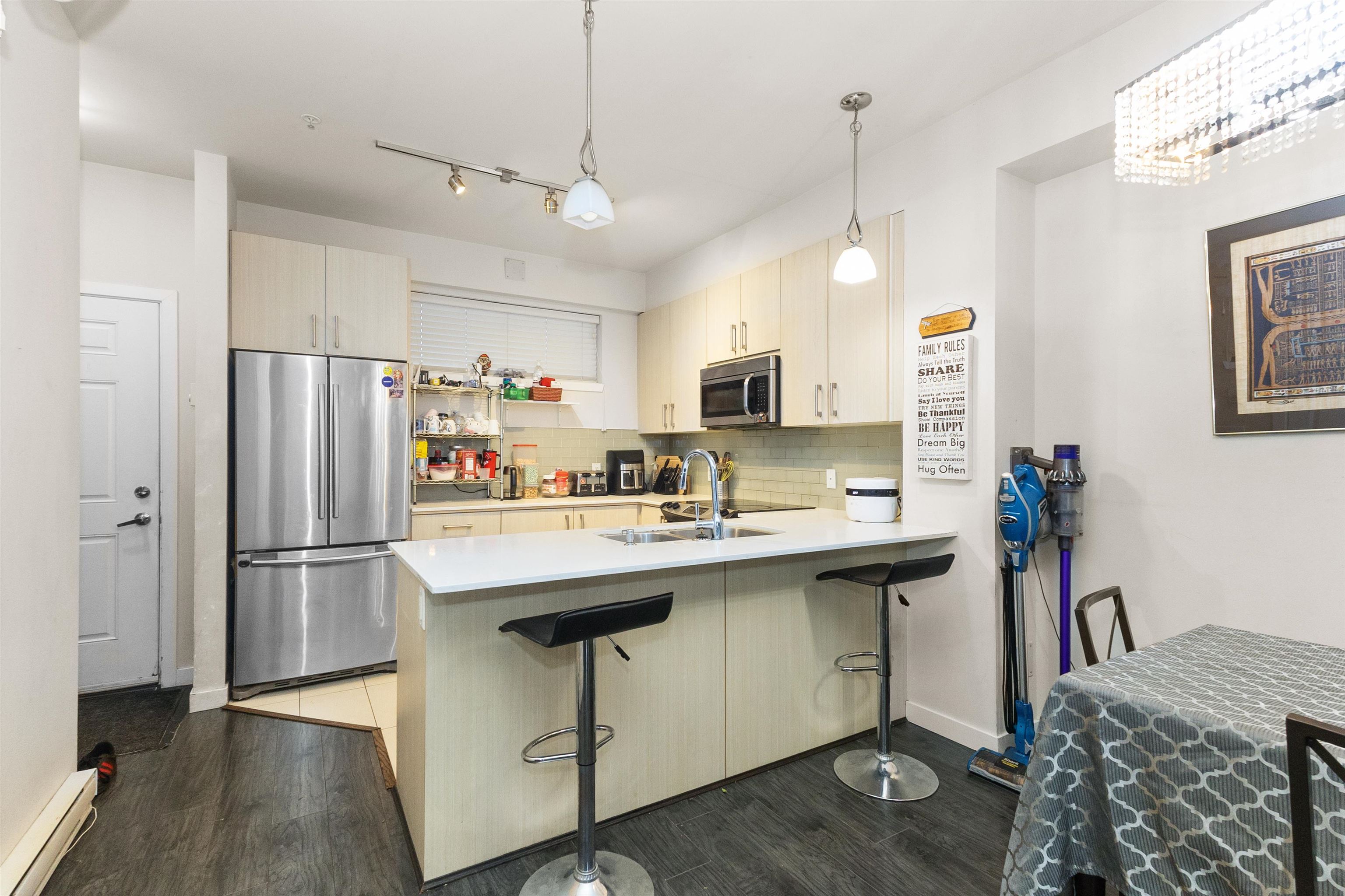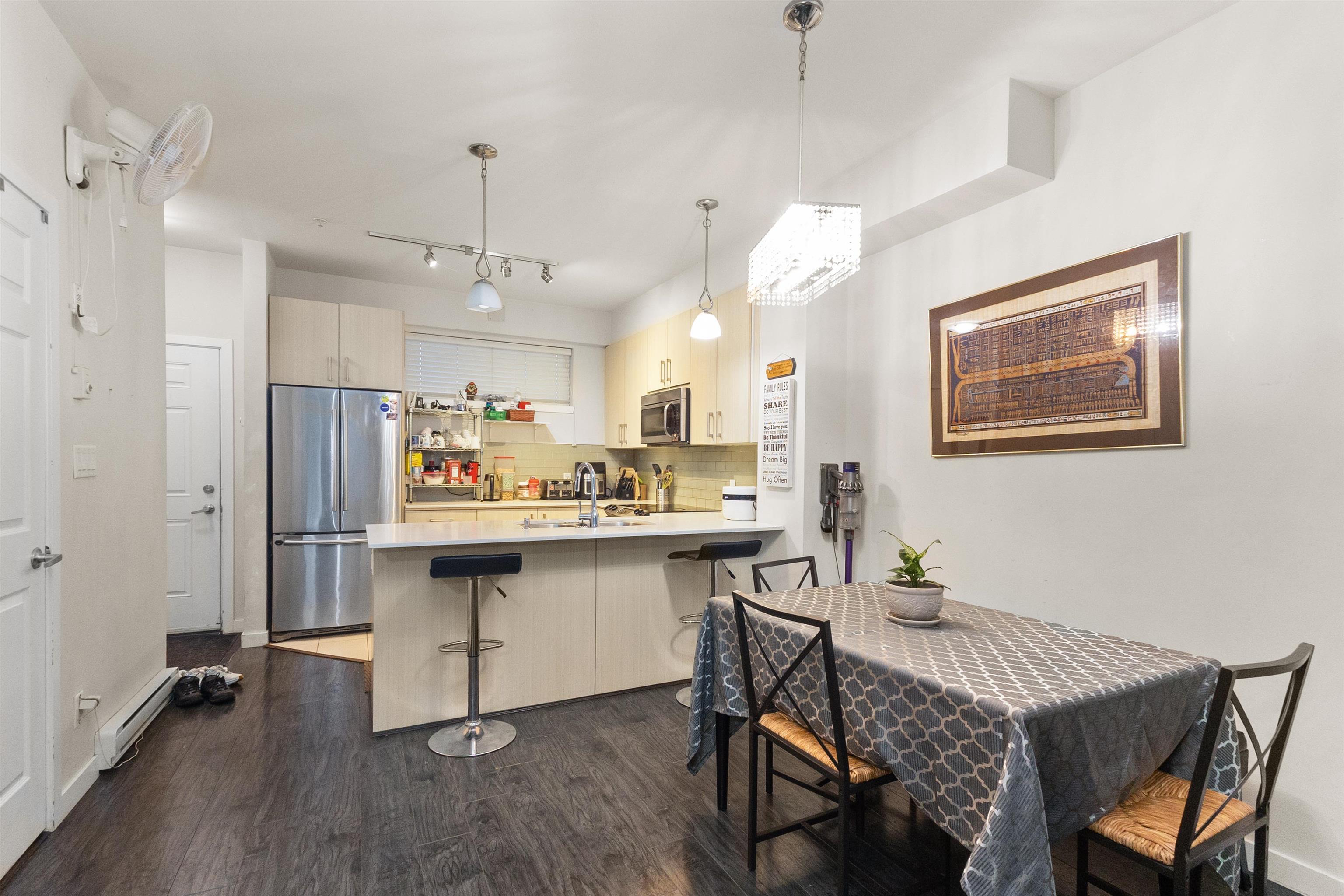 Welcome to Cedar Park Plaza! This 3-bedroom, 3-bath townhouse features high ceilings, modern finishes, and a gourmet kitchen with quartz counters, stainless steel appliances, and garburator. Enjoy spacious living and dining areas with laminate floors and access to a large east-facing patio. Upstairs, the master suite has a walk-in closet and 3-piece ensuite, plus 2 more bedrooms—one with a balcony. Walk to shops, restaurants, only 6 mins away from elementary school, quick access to Highway 1 and not on th...