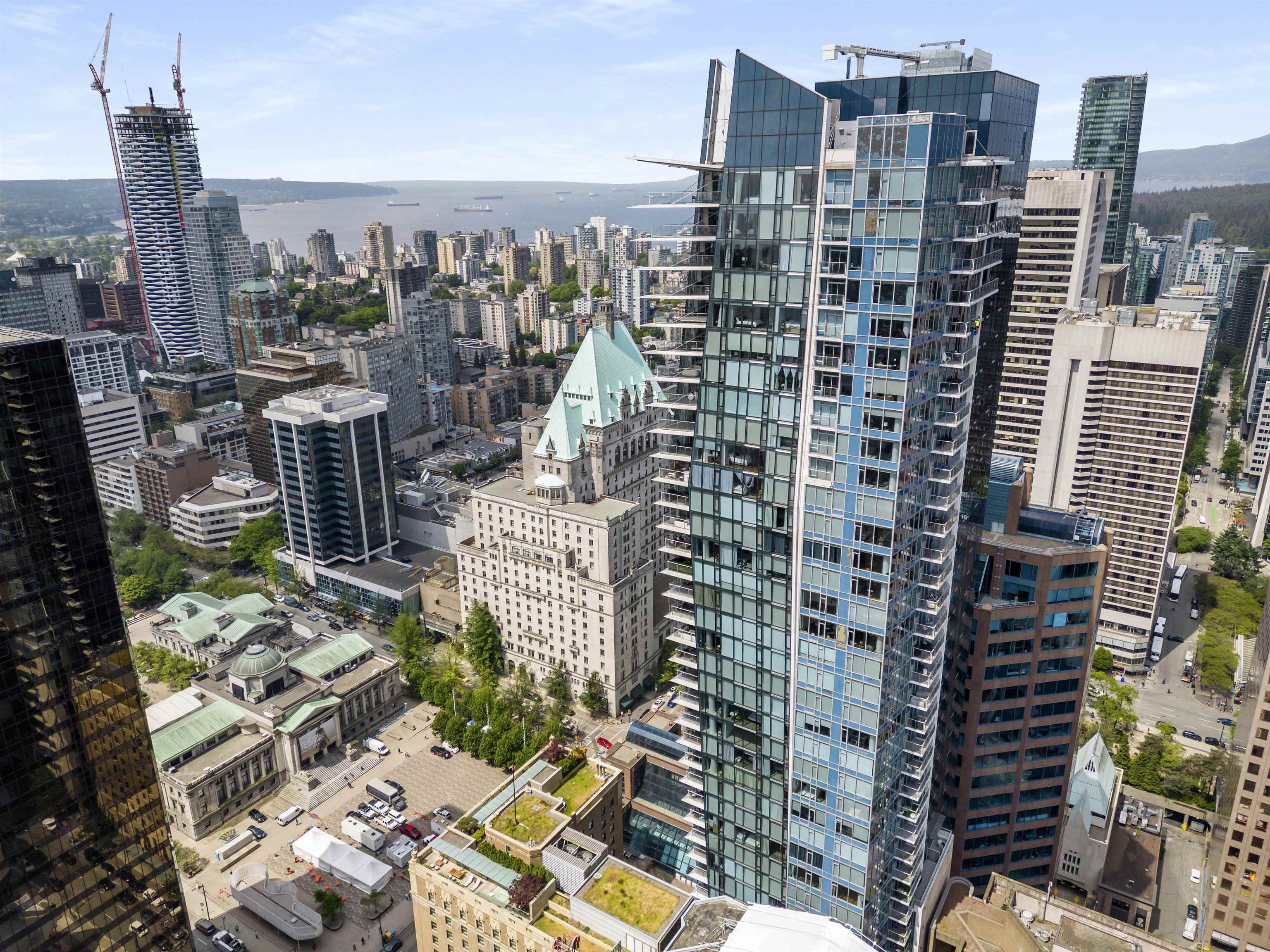 Discover the Prestigious Private Residences at Hotel Georgia, an exquisite downtown oasis. This southwest corner unit with views of Downtown boasts 3 beds, 2.5 baths, and an office space. The gourmet kitchen features Miele appliances, a built-in coffee maker, and custom oak cabinetry. Newly installed hardwood floors in the living space and new carpets in the bedrooms. Retreat to the master bedroom with a walk-in closet and spa-like ensuite. Enjoy A/C and heating via an efficient heatpump system, 2 side by s...