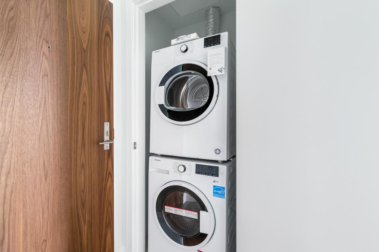 Telford on the walk! Best Junior one bedroom unit for first home owner or save as Investment gem. With the most functional layout You can put a queen bed and sofa within the cute unit easily. High quality developer with pay attention to every detail, you enjoy your stainless steel Miele gas stove, oven, air conditioning, large kitchen island, built in closet with LED lighting and great city view with sunlight in the morning. 1 Parking stall,1 super big locker and 1 standard locker. Amenities: concierge, fit...