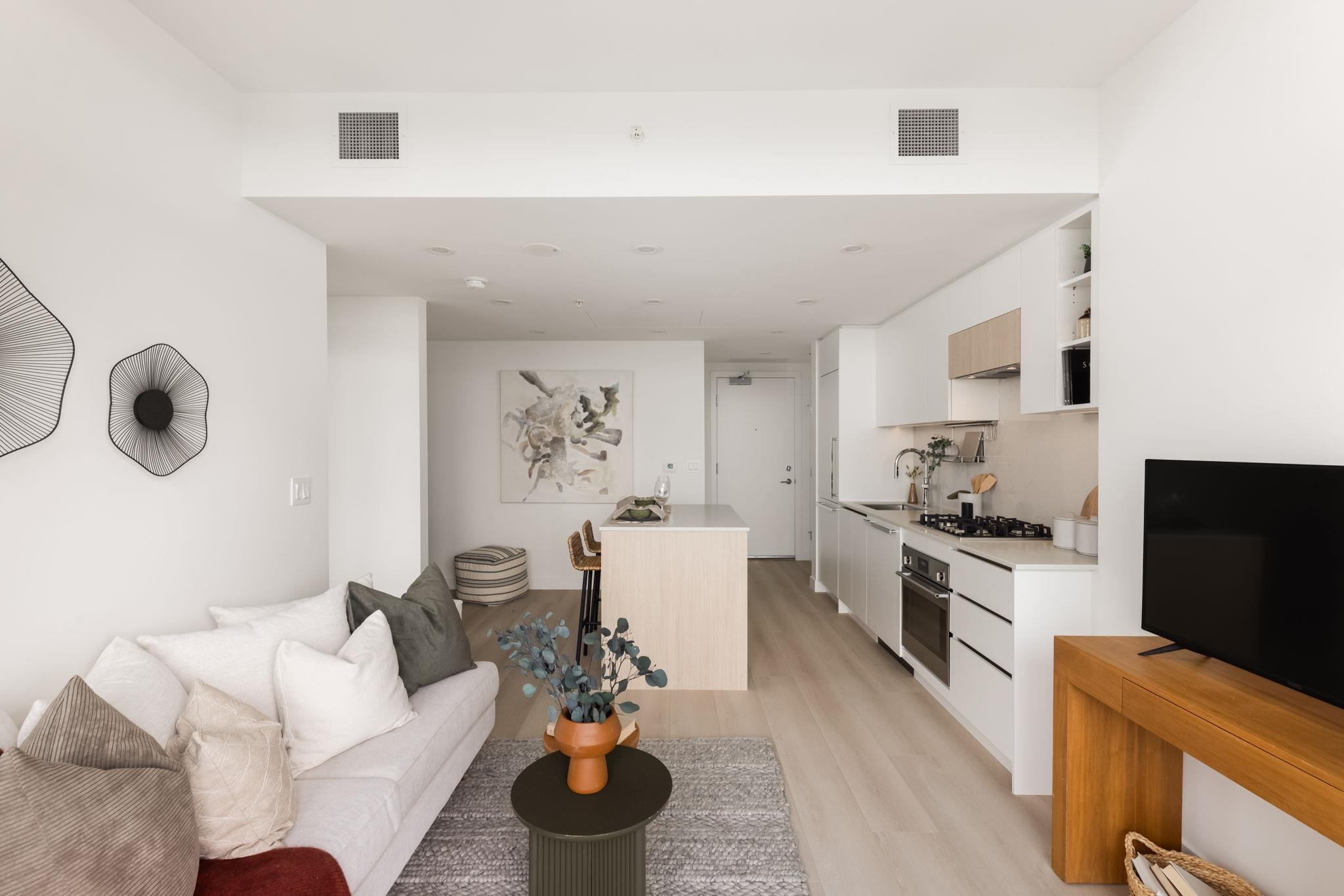 This brand new, move-in ready 1 bedroom and den is a rare find. Featuring 9 ft floor-to-ceilings with expansive windows invite natural light throughout from this West facing home. A kitchen that is designed by award winning Ste.Marie for entertaining. Located beside Holland Park and across from King George SkyTrain Station this location offers convenience at your doorstep. To ensure comfort year round, this home features air conditioning. Residents enjoy 4 levels of innovative amenities—over 40,500 sq. ft. ...
