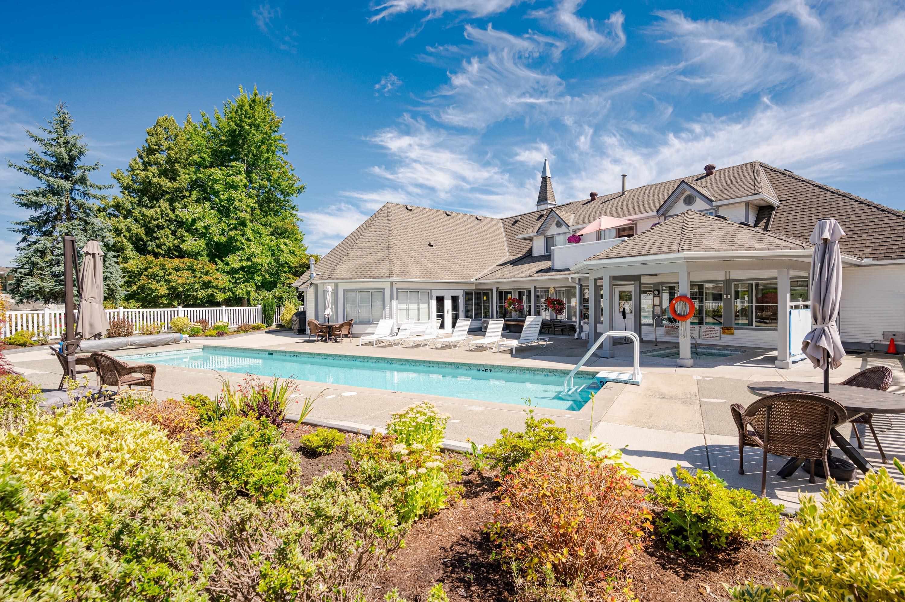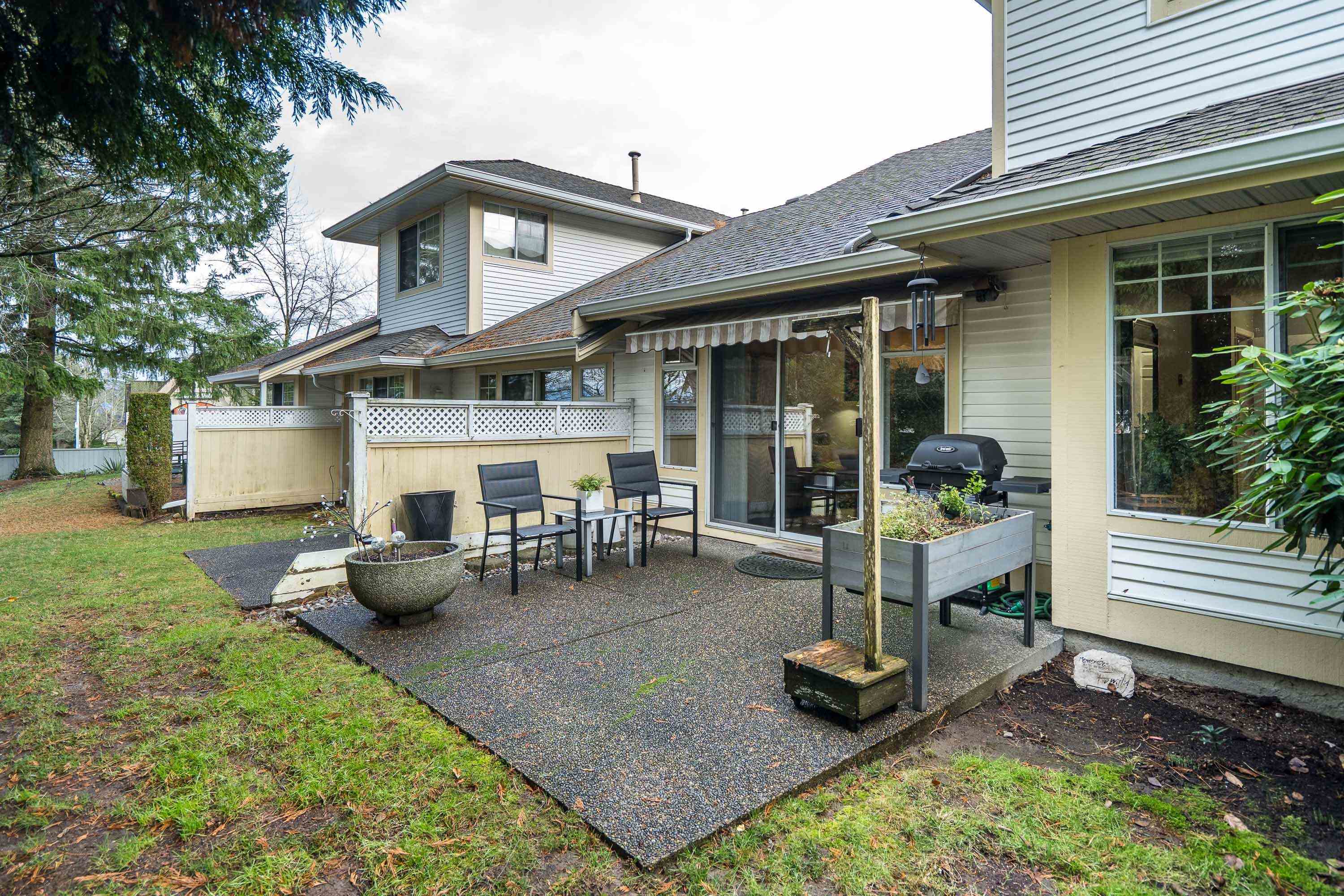 PREMIER 55+ "Chartwell Green" in heart of Walnut Grove! Main Floor PRIMARY bedroom has large walk in closet & ensuite with fully renovated shower! 1447Sqft 3 bdrm, 2 bath w/soaring vaulted ceiling in the living rm/dining rm & gas fireplace. Enjoy the bright East facing kitchen with cozy eating area. Upstairs TWO more generous bedrooms for guests or office & full bath! Private backyard w/awning for entertaining. Recent upgrades include blinds, vinyl flooring, gas fireplace, paint, toilets & taps. Single Gara...