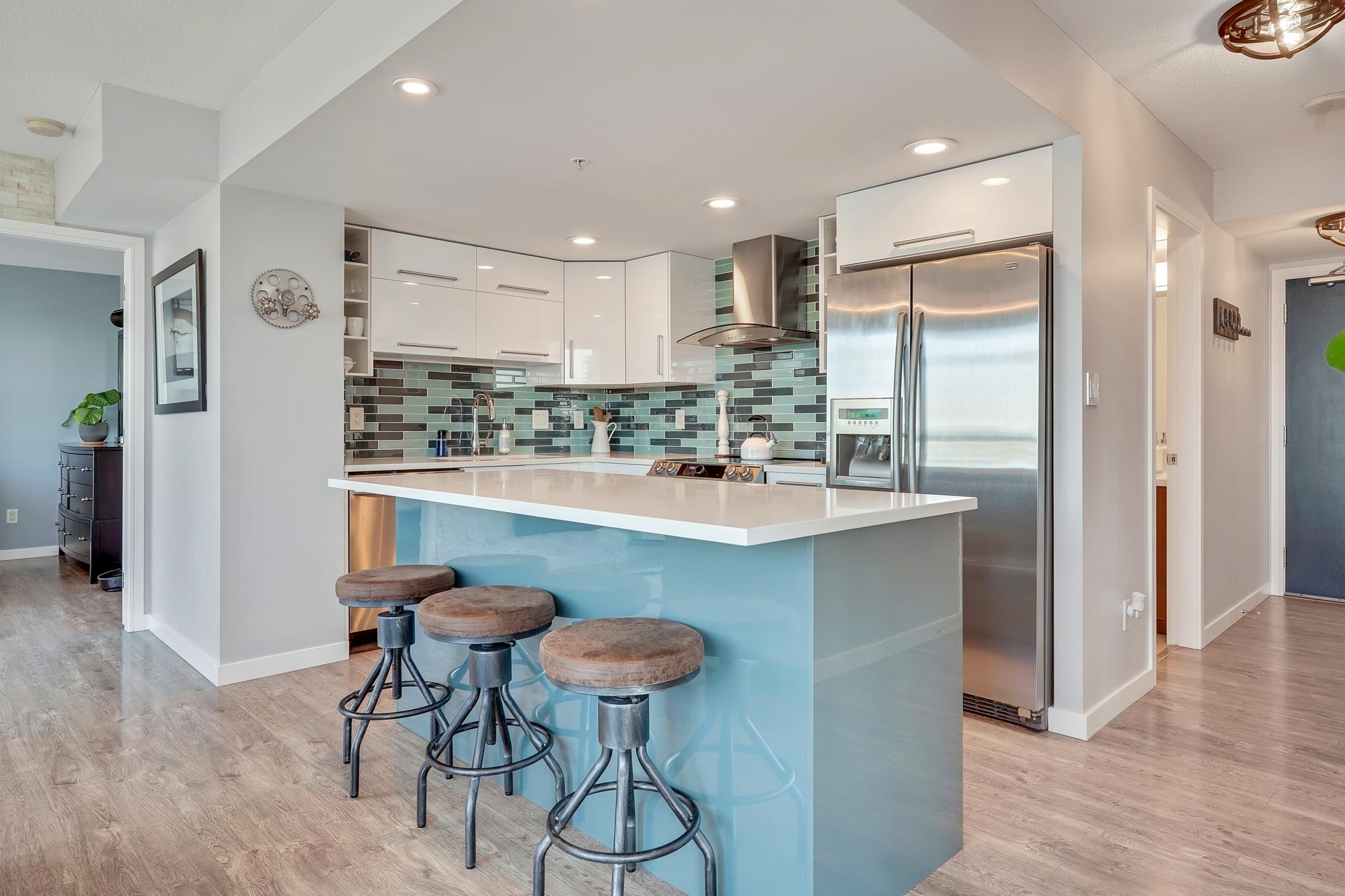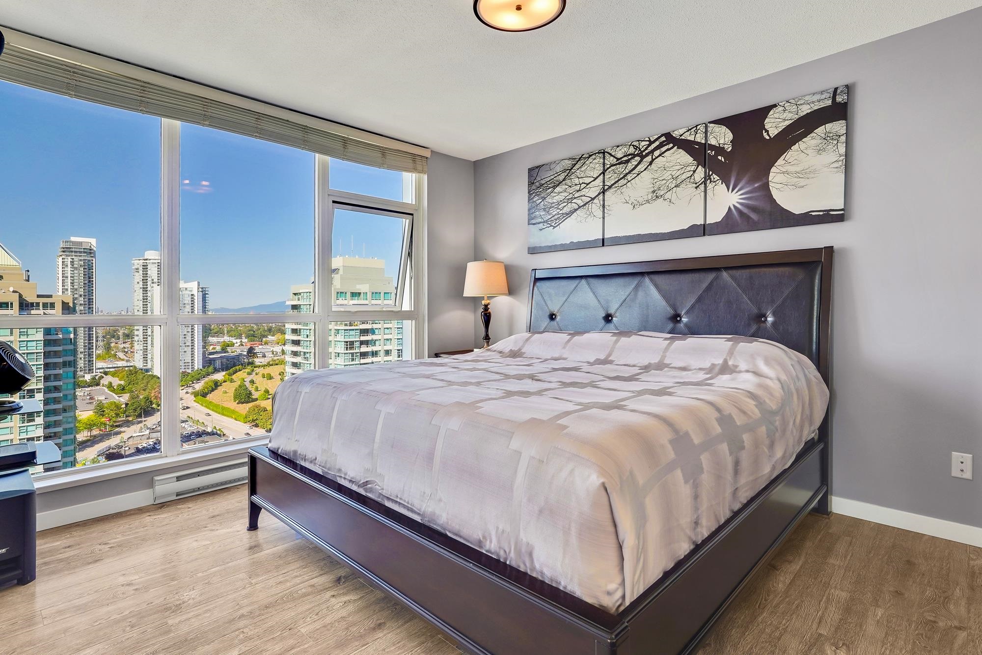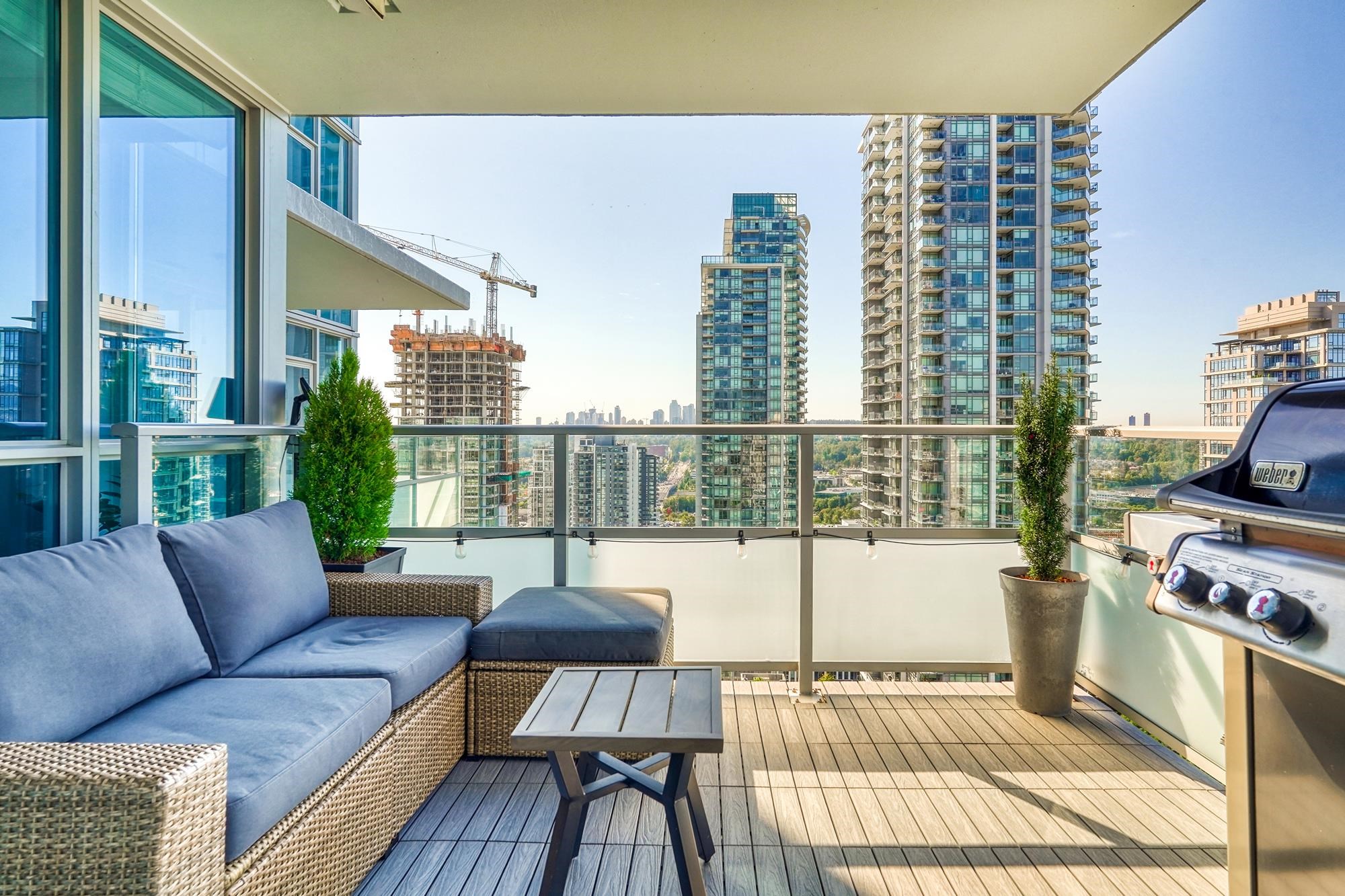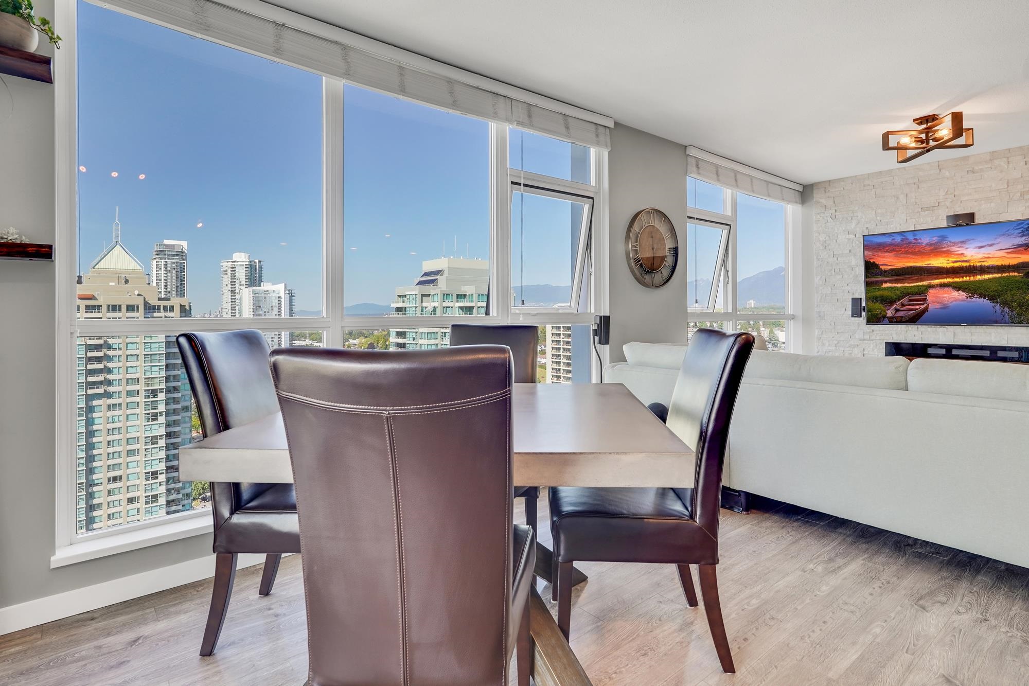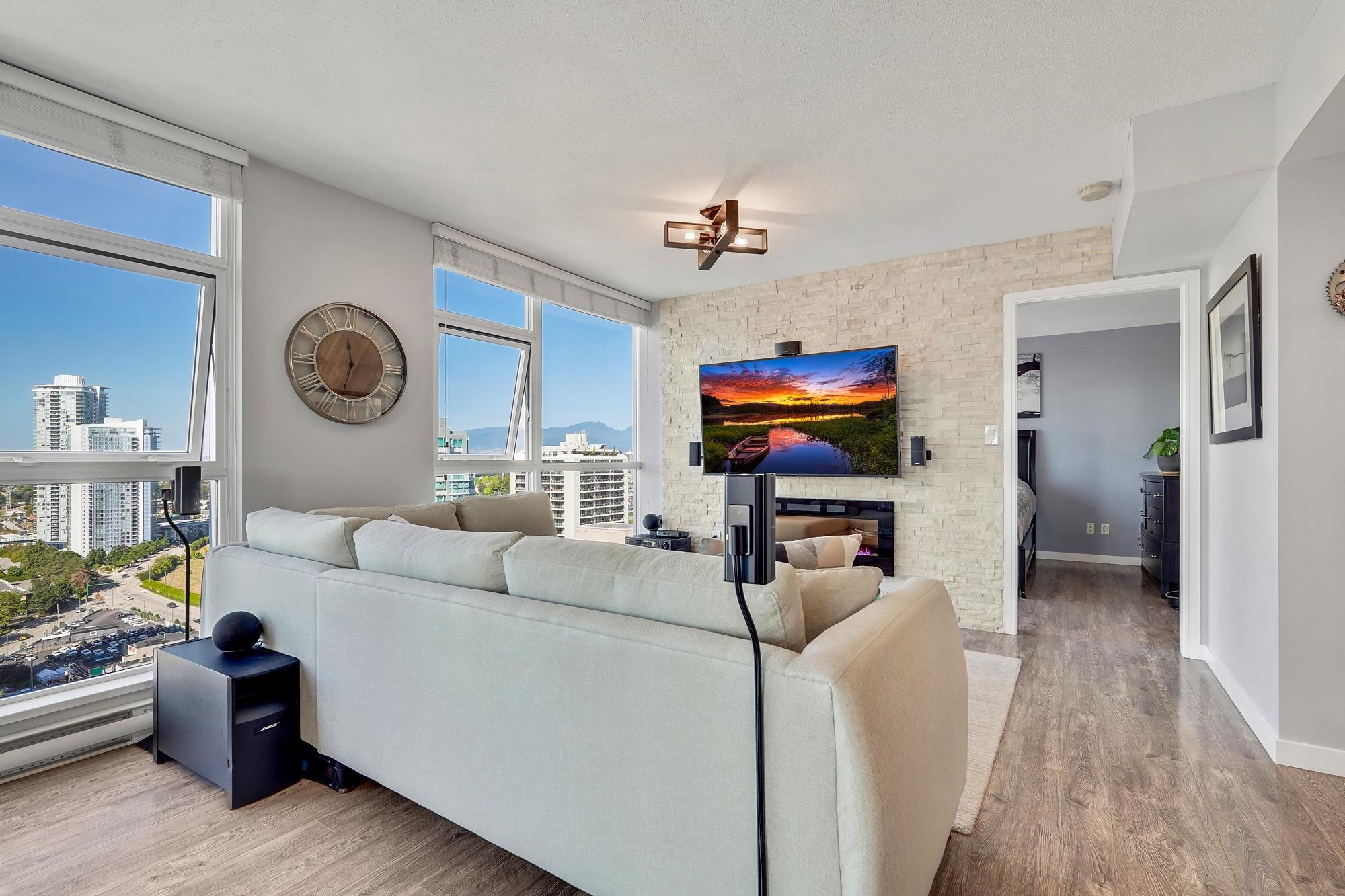 Unbeatable Views. Unbeatable Location. Welcome to this beautifully redesigned open-concept 2-bedroom, 2-bathroom Brentwood condo featuring 974 SQFT of bright, functional living space. This stunning 24th-floor southwest-facing corner unit offers panoramic mountain views and spectacular sunsets. This home features modern upgrades, including a new induction stove, high end washer/dryer and upgraded private patio with composite decking. Enjoy peace of mind with a recent building envelope upgrade plus top amenit...
